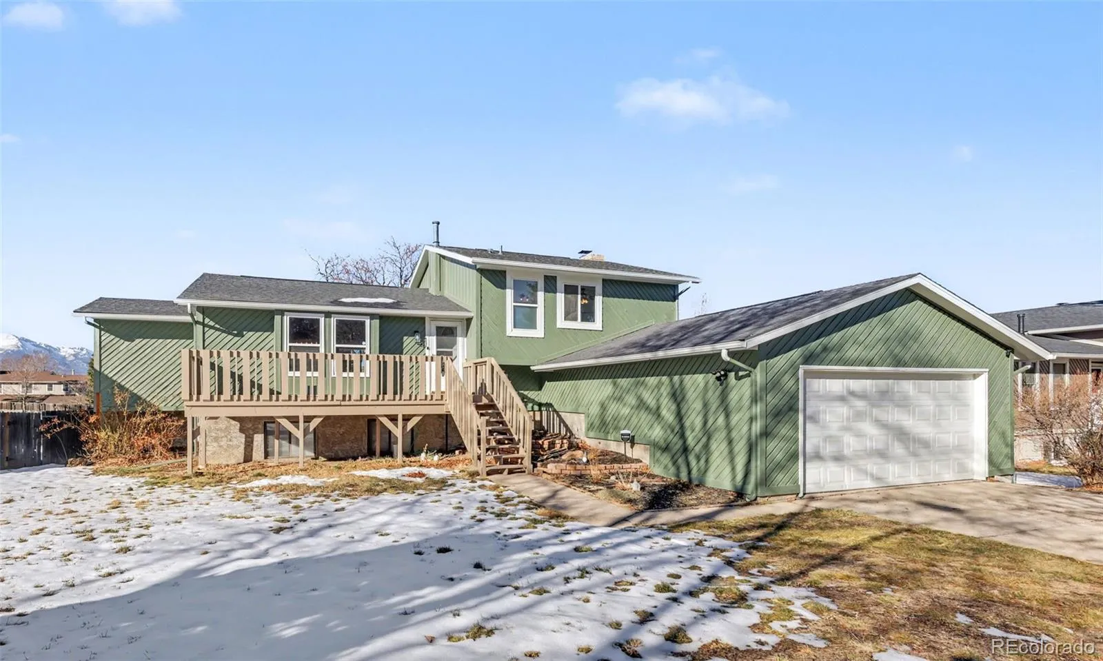 Spacious and well-located, this northeast Colorado Springs home offers 3 bedrooms, 3 bathrooms, and nearly 2,600 square feet of comfortable living space all with Pikes Peak views! The main level features an open floor plan with a generous living area and a remodeled kitchen highlighted by a large center island with seating—perfect for gathering and entertaining. The adjoining dining space opens directly to the back deck, creating an easy indoor-outdoor flow for everyday living or hosting guests. Upstairs, the primary suite includes a private full bathroom, while two additional bedrooms and another full bath provide flexibility for family, guests, or a home office. The lower level boasts a large family room with a cozy fireplace, along with a laundry area and an additional bathroom. An unfinished basement offers abundant storage and endless possibilities for future expansion, hobbies, or a recreation space. The large backyard provides a great space for outdoor play! Ideally situated within walking distance to the elementary school and nearby park, this home also enjoys close proximity to shopping, dining, and quick access to I-25, making it both convenient and inviting.