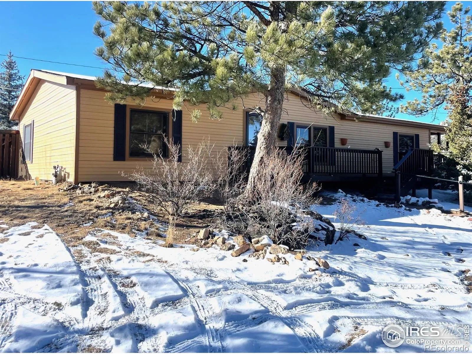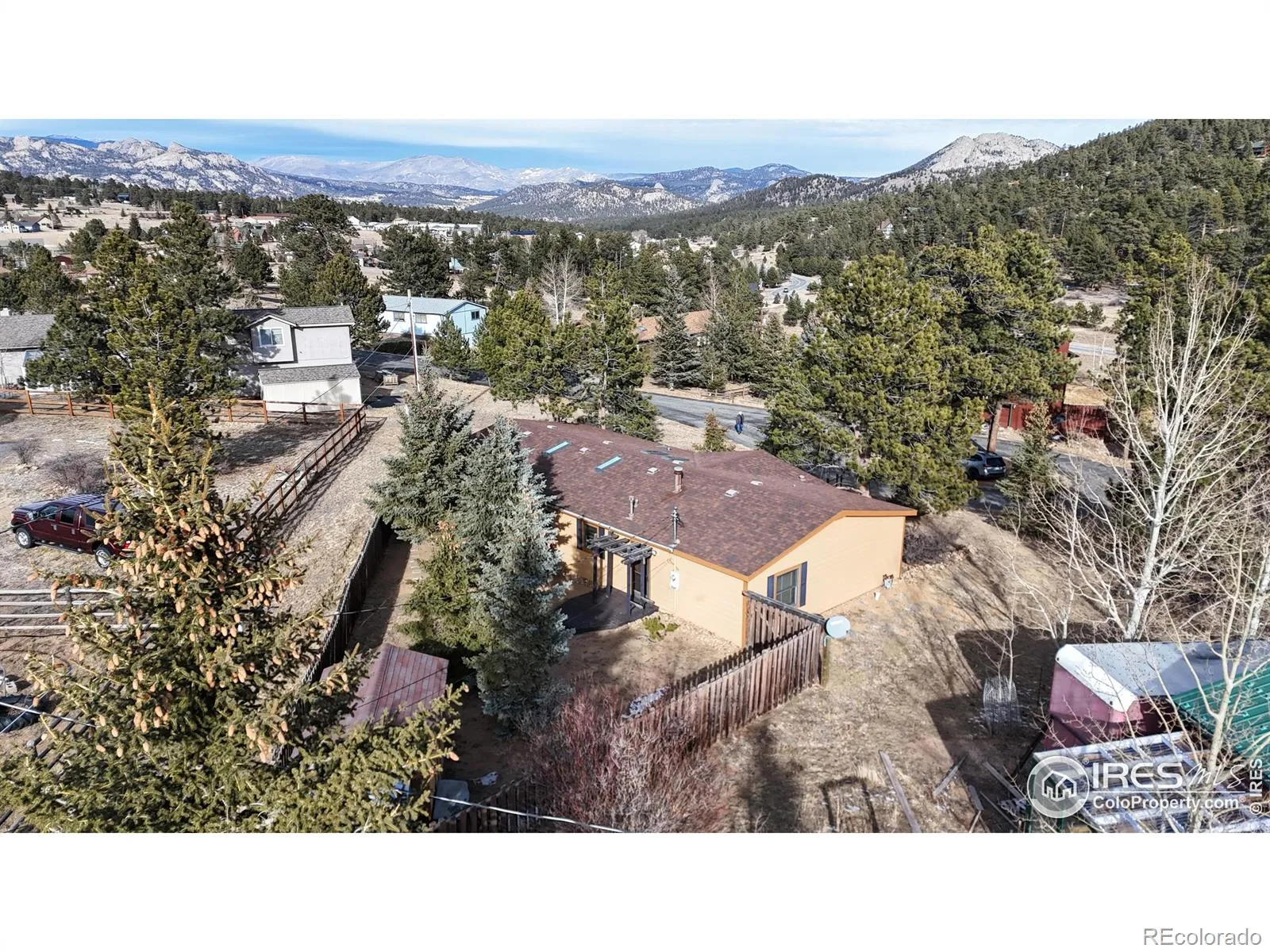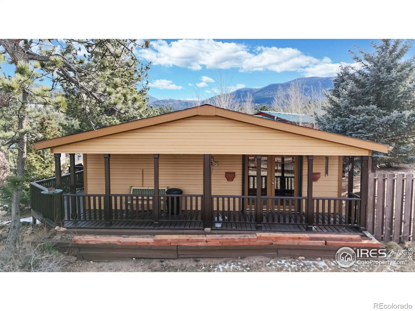 A great opportunity to own a home in Estes Park! A very well cared for manufactured home on a foundation. fenced back yard with storage shed. Wrap around deck. Skylights and vaulted ceilings. 3 bedroom 2 bath with hardwood floors. Upgraded doors and kitchen cabinets. New disposal. Storage building included. Would make a great full time residence or a second home for weekend getaways. HOA is Voluntary.