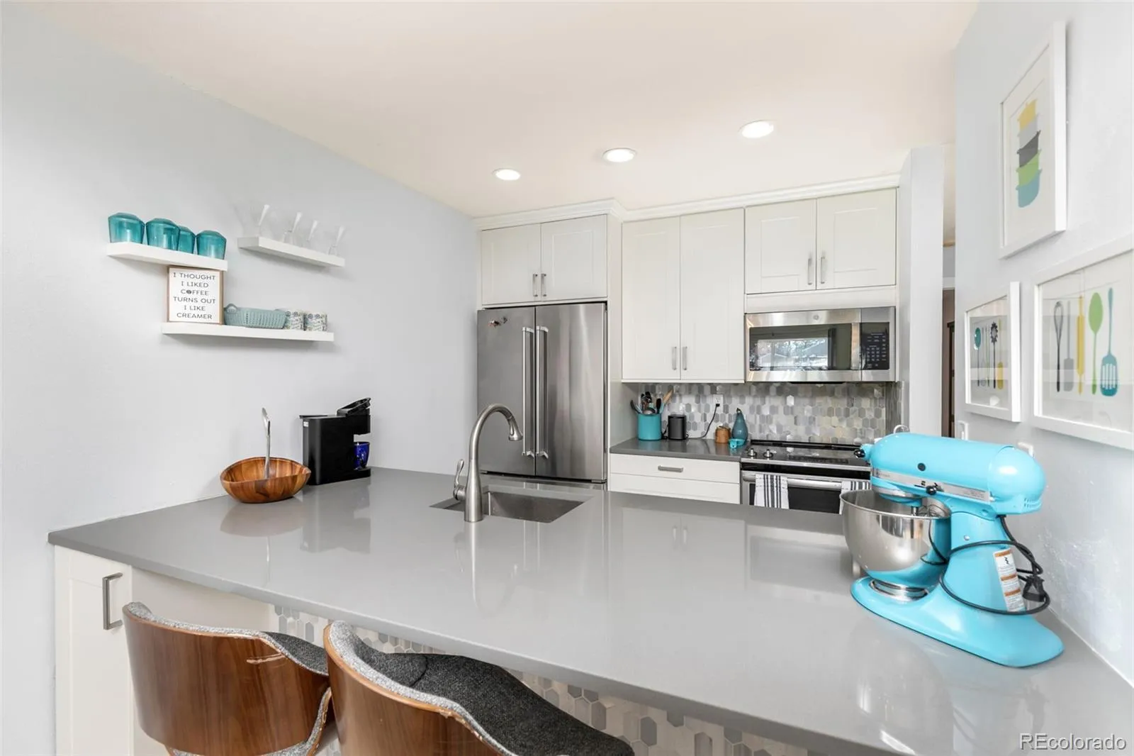 Welcome to this beautifully updated 2-bedroom, 2-bathroom condo nestled in the heart of Denver. Spanning 1,672 square feet, this home offers a spacious and comfortable living environment. The open floor plan seamlessly connects the living, dining, and kitchen areas, creating an inviting space perfect for both relaxation and entertaining. Enjoy fabulous upgrades throughout and not limited to: stainless steel appliances, attached 1 car garage, two private patios, engineered white oak hardwood floors, custom stairwell, built in entertainment center in the basement, custom tile fireplace, quartz countertops, and fully updated bathrooms!