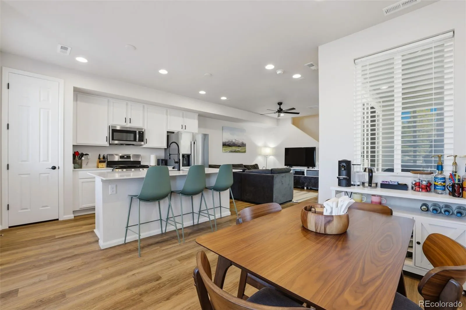Beautifully upgraded townhome in North Colorado Springs! The main level features a bright, open layout between the Living Room, Dining area, and Kitchen, with a covered porch boasting large glass sliding doors. The Kitchen has quartz countertops, upgraded cabinetry, and is wired for pendant lights. The adjoining living room is wired for surround sound. A powder room finishes off the main level. Upstairs is a stackable laundry, conveniently located near the generously sized bedrooms. You’ll love the Primary Bedroom, with a spacious walk-in closet and private en-suite bathroom! Ceiling Fans, Norman Blinds, and a tankless water heater finish off the house! The house is pre-wired for a security system.