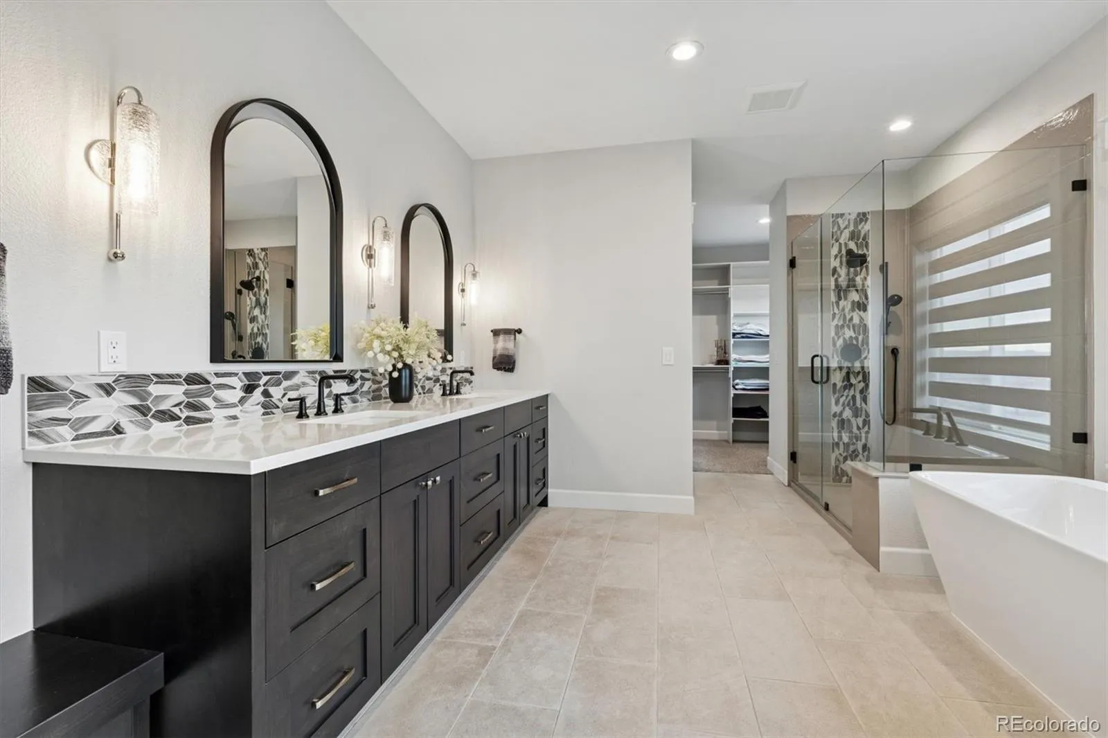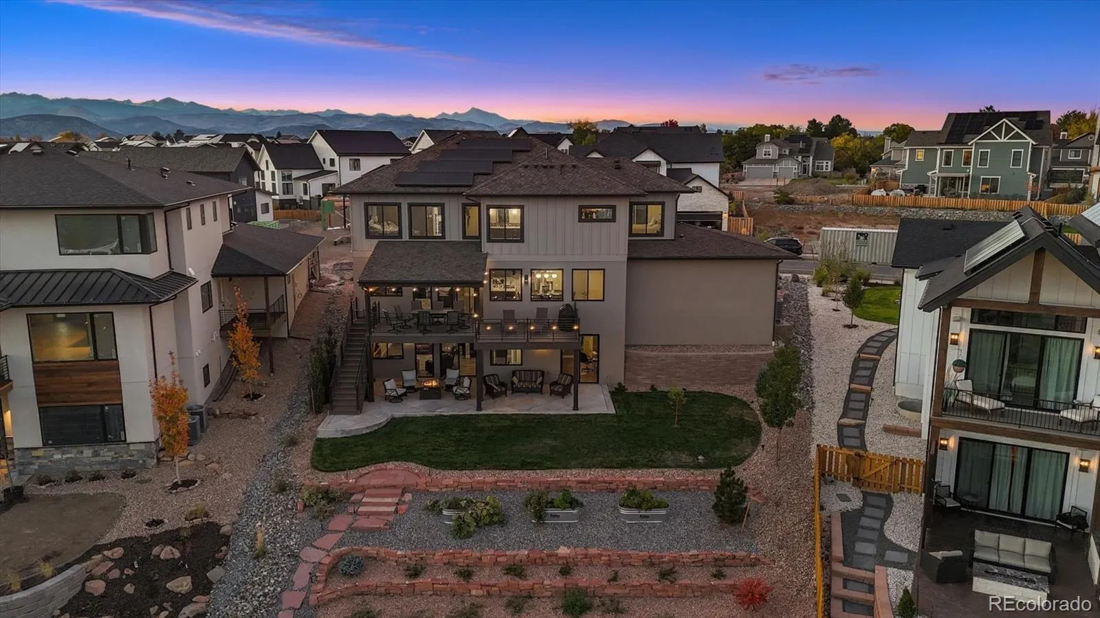 This spectacular 2-story beauty located atop a quiet drive in Centennial 6 at Harper Lake-one of Louisville’s most desired neighborhoods. This impressive Marshall Fire rebuild was completed in 2023 & boasts TOWN & MOUNTAIN views! Professionally finished large fully fenced yard w/ flagstone walkways & garden beds backing to miles of trails & open space! Step into this stunning foyer entrance w/ floor to ceiling windows, stunning staircase & lighting you won’t want to miss! Bright, open concept floorplan w/ extensive wood-like floors. Luxury kitchen w/ two-tone cabinets, quartz, eat-up island, Bosch induction cooktop, stainless appliances & a massive pantry. Practical dual entry mudroom w/ bag drop. 1/2 bath. Sunny dining room w/ built-in eye-catching hutch & serving buffet. Sliding door access to giant covered deck & iron rail detail…a remarkable place to take in the city lights! Inviting family room w/ electric fireplace, high-end shades & open concept! Quaint main level study w/ built in shelves & 10-light glass door. Cased windows. 3 bedrooms upstairs. Spacious primary suite-views & stunning 5-piece bath w/ dual vanities, beautiful quartz, soaking tub, grout-free Onyx shower & massive walk-in closet. 2 roomy spare/kids bedrooms walk-in closets & 1 ceiling fan. Hall bath w/ dual vanity, linen closet & shower/tub. Upper-level laundry room, ample cabinets & storage. Outstanding finished basement! Perfectly executed wet bar w/ bev. fridge, family room, kids bonus room & guest bed or home gym + shower bath! Stone surround electric fireplace, gear room & storage. Rheem Heat pump 80 gallon HWH w/ instant hot, 2 zone Carrier heat pump, IECC NET ZERO certified home with 10KW fully owned solar system included. $10/m to Xcel. Wow. Impressive walkout basement to huge yard & beautiful outdoor living. 3 car oversized + 2 EV chargers. Explore all that Historic Downtown Louisville offers. Quality & detail unmatched! Check out seller’s feature sheet in supplements for more!