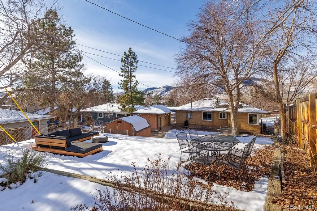 *OPEN HOUSE SUNDAY 02/01 FROM 11-1* Enjoy the best of Golden living in your new home! This move-in-ready ranch sits on a large lot backing directly to South Table Mountain, offering open space out your back door, west-facing mountain views out front, and a friendly neighborhood setting — all just minutes from downtown Golden, Clear Creek, and miles of trails. Designed for easy main-floor living, the home offers great flow and natural light, with a finished basement providing flexible bonus living space for a family room, office, gym, or storage. Additional highlights include a detached one-car garage with wide rear entry for easy access to bikes and gear, a large storage shed, and ample driveway and street parking. The garage offers future ADU potential, with architectural plans for a pop-top and ADU available. Outdoor space includes an expansive front yard, a large backyard opening directly to South Table Mountain, beautiful sunset views, apple trees, and an irrigated garden area. Located on a quiet street near trailheads, parks, and downtown Golden, this home combines an exceptional location, scenic views, and long-term opportunity. Recent updates include new windows (2024), furnace and A/C (2022), blinds (2021), refinished main-level wood floors (2020), and interior paint (2020).
