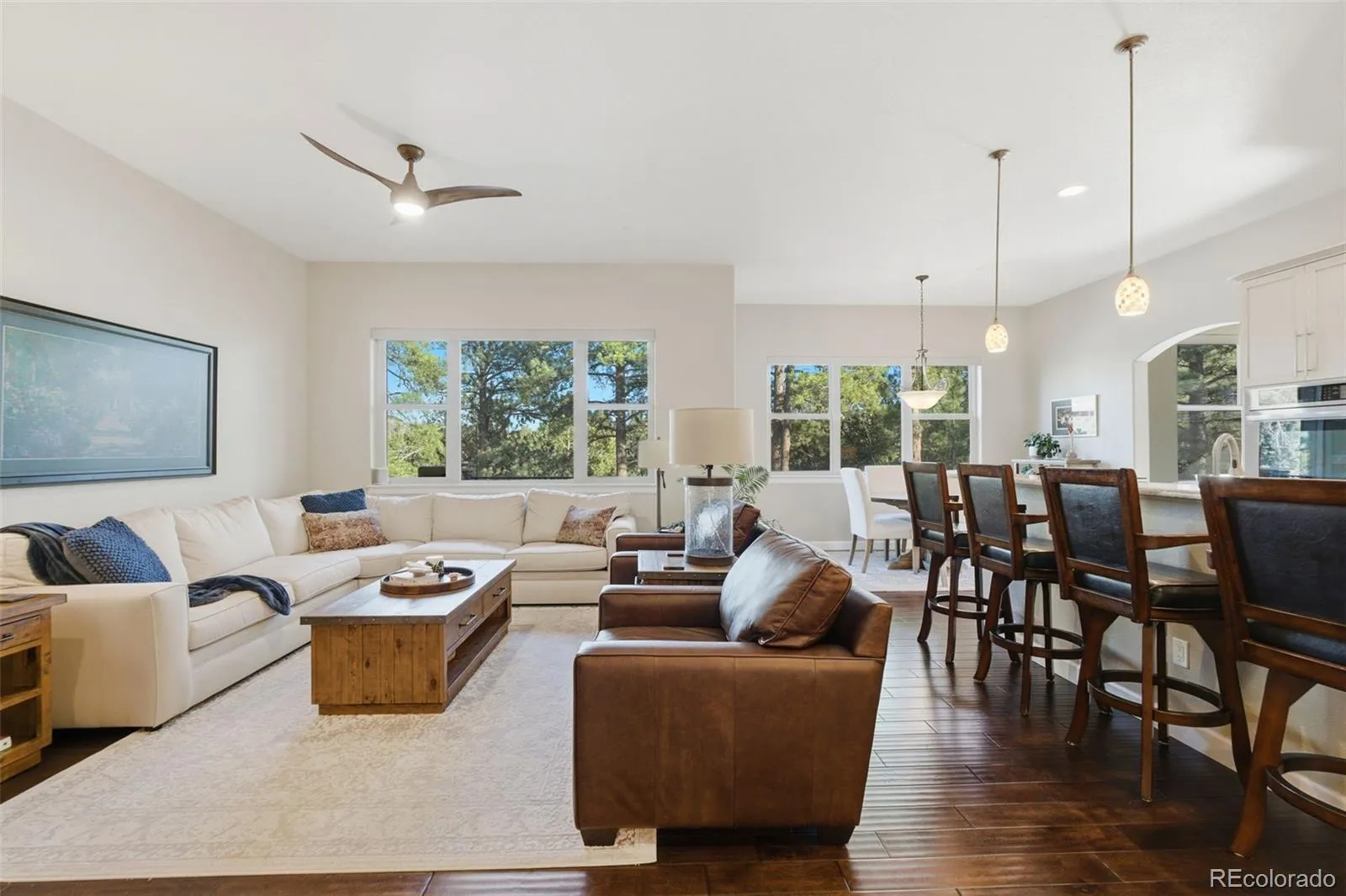 Welcome to luxury living in the heart of Colorado’s Hidden Forest community! Nestled amidst the majestic Ponderosa Pines, this stunning ranch-style home is the pinnacle of Colorado living. As you step through the grand entrance, a wide curved staircase pulls you into a world of elegance and comfort. The beautifully engineered hardwood floors guide you seamlessly into an expansive, open-concept chef’s kitchen adorned with granite countertops, perfect for culinary creations and entertaining alike. Your guests will be delighted by the inviting living area, just waiting to host unforgettable gatherings. Retreat to the main floor primary suite, a haven of tranquility boasting an en-suite bath conveniently connected to the laundry room for added convenience. Adjacent, discover a versatile office/den and a second bedroom with its own ensuite, ensuring comfort and privacy for all. Descend to the walk-out basement, where you’ll find another bedroom, bathroom, and a sprawling living area, ideal for relaxation and recreation. With 1,200 square feet of unfinished space, the possibilities for customization are endless. Outside, immerse yourself in nature’s splendor, surrounded by soaring Ponderosa Pines and abundant wildlife, creating an atmosphere of serenity and luxury. For golf enthusiasts, the renowned Bear Dance Golf Course offers championship-caliber play with breathtaking mountain vistas. And with Castle Rock shopping just a 12-minute drive away, convenience meets luxury in perfect harmony. But it’s not just the home that’s exceptional—it’s the community. The Hidden Forest neighborhood is renowned for its warmth and camaraderie, with social events punctuating the calendar year-round. Don’t miss your chance to make this exquisite home yours. Come, envision the possibilities, and embark on a journey to luxury living in Colorado’s Hidden Forest. Your dream home awaits.