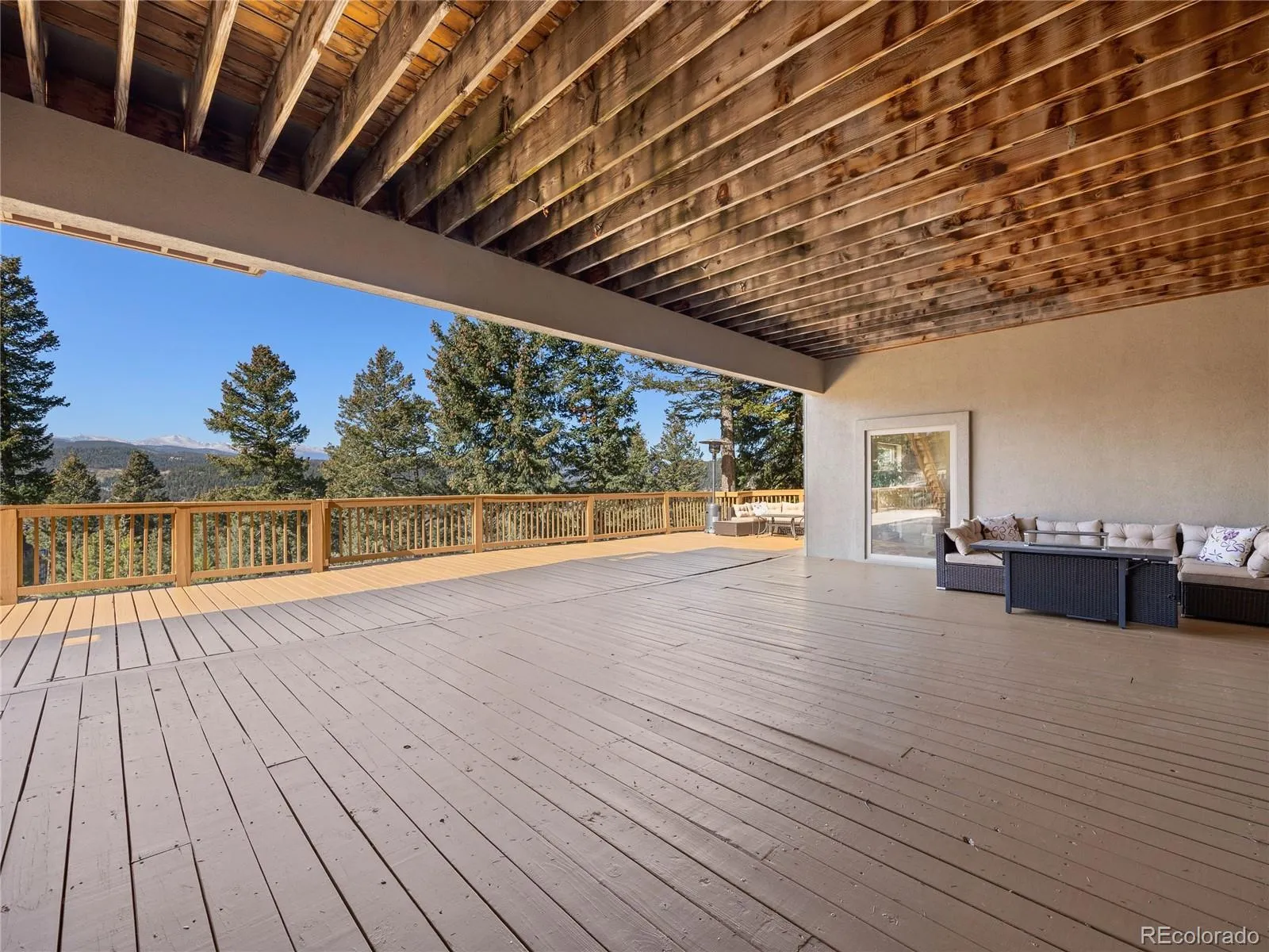 Have you considered this gem in the south side of Evergreen? Let’s check off some boxes! Is your budget between $1mil-$2mil and you want a good deal? This home offers EXCEPTIONAL VALUE at $293 per total square foot—nearly 20% below the Jeffco north side average of $366, representing roughly $396,000 in value compared with typical area pricing. Need space? This home is one of just a HANDFUL with more than 5,000sf under $2mil in all of Evergreen! Want easy living? This home provides you with the Evergreen rarity of true MAIN-LEVEL living. Everything you need on grade level, not to mention a flat paved driveway with SUNNY southern exposure. Want a view of snowcapped mountains instead of neighbors or cars? On nearly 1-acre of land, this home delivers whether you’re inside or on your 1,900sf of decking. Want independent living? This home is not within an HOA, offering freedom that is increasingly hard to find. Couple all these with being built after 2000, and this is the only Evergreen home available under $2.3 million! Now for the fun stuff. The reimagined kitchen is a statement of craftsmanship and elegance, curated for both elevated entertaining and intimate gatherings, and flows seamlessly into a stunning great room accented by gleaming hardwood floors and abundant natural light. Downstairs, the home transforms into an entertainer’s dream. A spacious family room with wet bar, beverage refrigerator, and dishwasher sets the stage for effortless hosting. An enclosed theater room—complete with all audiovisual components—delivers a true cinematic experience. The fully updated, enclosed in-ground hot tub offers a private spa-like escape, complemented by a full bath with steam shower. A bonus room provides ideal flexibility for a home office, gym, or creative studio. Got Wine? There’s a cool closet ready to show off 1000 bottles! Heated three-car garage includes an EV charging station. New roof and pre-qualified for homeowner’s insurance. Get superfast Starlink internet.