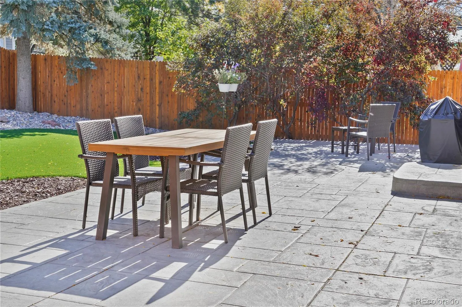 One of the loveliest homes you’ll find in Aurora at this price point, this beautifully upgraded residence is truly move-in ready and designed for both comfort and style. Set in a welcoming neighborhood just a quarter mile from Tailgate Elementary School and moments from Toll Gate Creek Trail, shopping, dining, and everyday conveniences, the home offers an ideal balance of privacy and accessibility. Inside, like-new solid oak hardwood floors flow throughout the main living areas, leading to a kitchen, fully upgraded in 2020, with stainless steel KitchenAid appliances, warm maple cabinetry, a large center island, quartz countertops, and a striking ceramic tile backsplash. The primary bedroom provides true main-floor living with a beautifully finished bathroom featuring custom tile work and a spacious walk-in shower. The backyard is a true highlight, showcasing a large stamped concrete patio, low-maintenance synthetic turf, and thoughtfully xeriscaped planting islands ready for your personal touch—perfect for entertaining or relaxing. The unfinished basement offers a blank canvas for future expansion, with existing water and gas connections already in place, ideal for additional living or recreation space. You will also appreciate the large, heated and insulated two-car garage with the washer and dryer, and additional refrigerator conveniently located inside with ample storage. This is a rare opportunity to own a meticulously cared-for home offering space, style, value, and room to grow—don’t miss it. All appliances are included in the sale – Kitchenaid Range.Oven, Dishwasher, Refrigerator, Whirlpool Microwave, Electrolux Washer and Dryer and Refrigerator in garage.