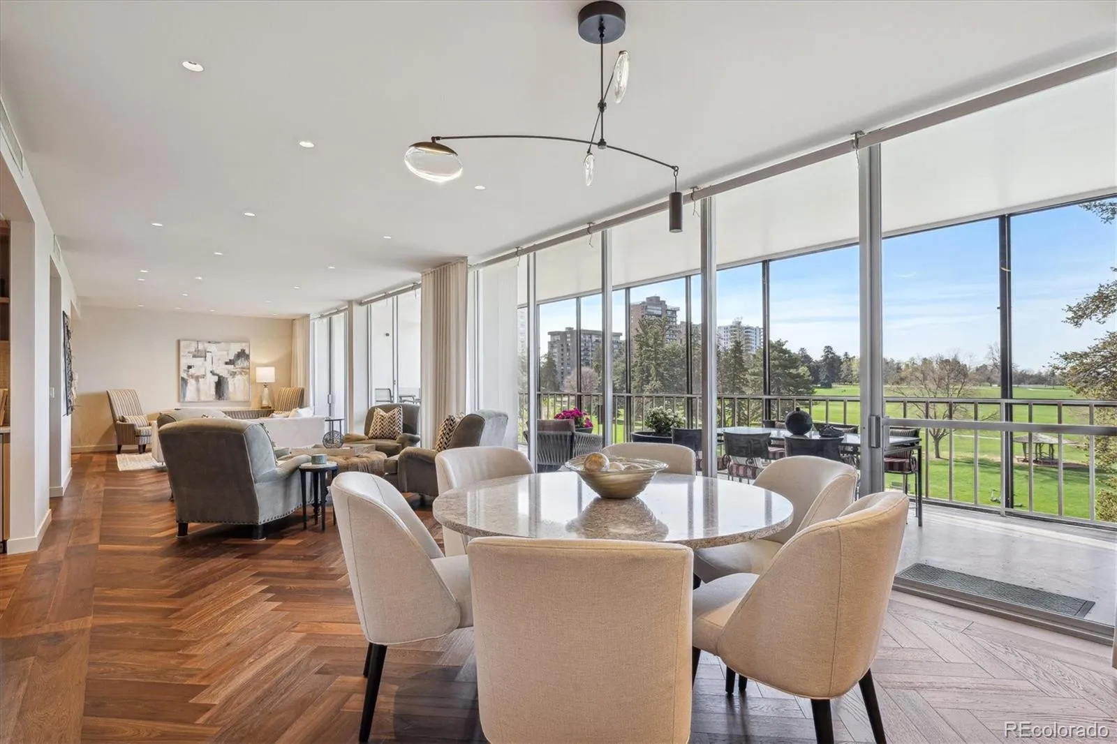 Chic urban design is evident in this fully remodeled residence overlooking Cheesman Park, in Denver’s iconic One Cheesman Place, designed by renowned architect Charles Sink. This luxury building, completed in 1969 is celebrated for it’s innovative design and enduring elegance. Charles Sink’s design philosophy is evident in the building’s clean lines and expansive floor-to-ceiling glass windows and large balconies offering unsurpassed views of Cheesman Park. The expansive living/dining area offers unlimited possibilities for entertaining and daily living with plenty of room for multiple seating areas. The newer kitchen is open to the living and dining area and includes a built-in refrigerator, double ovens, a rare gas cooktop and beverage refrigerator. The luxurious primary suite includes a comfortable bedroom plus a “spa” style 5-piece bath with separate tub and shower and dual vanity plus make-up counter and custom closet built-ins. A second bedroom works equally well as a den with a built-in murphy bed. Carefully curated, high end finishes include beautiful herringbone wood floors, quartz counters, designer selected fixtures and top-of-the-line appliances and custom built-ins. The full width terrace allows for seamless indoor/outdoor entertaining and offers a three-season living area to enjoy the views of historic Cheesman Park with it’s 1.6 mile walking path loop. This residence includes one underground garage parking space and one storage space and additional parking for residents and guests is available at the entry level. One Cheesman Place offers an array of amenities including a seasonal swimming pool, fitness center, sauna, top floor club room, guest suites for resident’s guest’s use, staffed lobby and building security. Residents are committed to keeping this landmark building in top condition. Whole Foods and King Soopers are nearby along with many neighborhood restaurants and shops and Cherry Creek North and downtown Denver are minutes away!