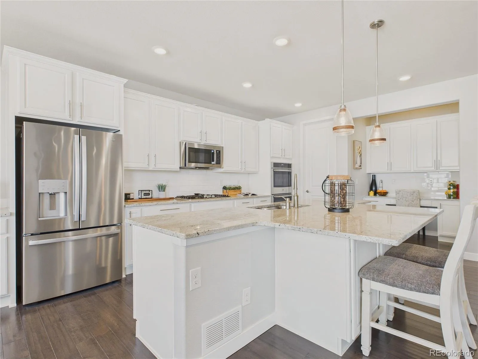 Welcome home to comfort, convenience, and true Colorado living. Located in the highly desirable Dove Village community and just minutes from C-470 and the DTC, this property offers unbeatable access to top amenities, award-winning Douglas County schools, and scenic parks and trails. Step inside to an inviting main floor featuring a bright living room with a gas fireplace that flows seamlessly into the open kitchen. The kitchen is designed for both everyday living and entertaining and is a chef’s dream! Features recently installed creamy white cabinets, granite countertops, double ovens, a gas range, stainless steel appliances, a spacious pantry, and a built-in desk and bar area. A dedicated dining area, mudroom, main-level bedroom, and full bathroom add exceptional convenience and flexibility. Beautiful LVP flooring throughout the main level. Upstairs, retreat to the spacious primary suite complete with a five-piece bathroom. The second level also includes three additional bedrooms, a full bathroom, and a generous loft—which easily be converted to an additional bedroom or use it as a playroom or office. Impeccably maintained and gently lived in, this home is turn-key and will be the delight of the most sophisticated buyer! Enjoy Colorado’s beauty in the manicured backyard, featuring a covered back porch, extended concrete patio, and lush grass area – the perfect place to unwind and relax. The 2 year old roof is a bonus as you won’t have insurance hassles here! Dove Village residents benefit from a fantastic HOA that covers trash, recycling, playgrounds, and trails. With a prime location and thoughtful features throughout, this home truly checks every box!! Welcome Home!!