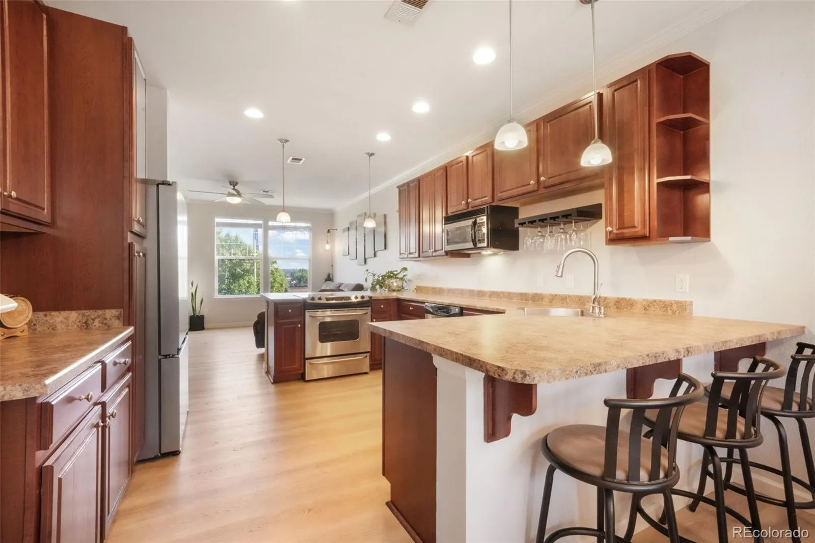 The light-filled main level welcomes you with vaulted ceilings and a warm gas fireplace anchoring the inviting family room. The open kitchen, with stainless steel appliances and a brand new refrigerator, flows seamlessly into a dedicated dining nook and out to your private balcony, with its own grill, an ideal spot to enjoy morning coffee, unwind in the evening, or entertain guests.