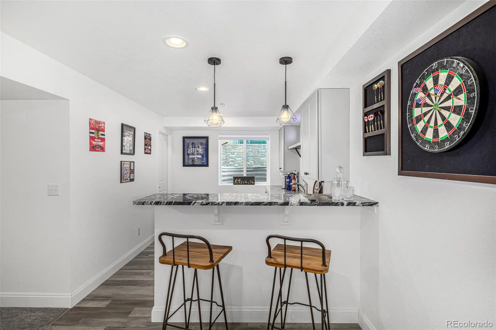 Step up to a gorgeous stone-accented facade, lush professional landscaping front and back, and a welcoming front porch. The 3-car tandem garage keeps your vehicles protected year-round. Inside, soaring ceilings greet you in the spacious living area with wood-look flooring, a neutral palette, cozy fireplace, and upgraded windows that flood the space with natural light—way above builder spec! Host unforgettable gatherings in the formal dining room, then wow guests in the gourmet kitchen featuring new cabinetry with crown molding, granite counters, stainless steel appliances, and a center island with a breakfast bar. Head upstairs to a versatile loft with plush carpeting—ideal for movie nights, homework zones, or just kicking back with a good book. The primary suite is your private retreat, boasting double doors, a walk-in closet, a dual-sink bath, and a garden tub. The showstopper? The gigantic, fully finished garden-level basement—fabulous with a tastefully designed wet bar (complete with wine cooler and bar fridge), an oversized bedroom, and a gorgeous full bathroom. It’s perfect for movie marathons, game nights, and your favorite guests. Step outside to your pet-friendly oasis: a custom-fenced backyard with a deck, swingset, and turf. There is also a Sunsetter awning on the private deck off the living room. (Bonus: the Highline Canal Trail is just moments away for those invigorating New Year’s walks!)