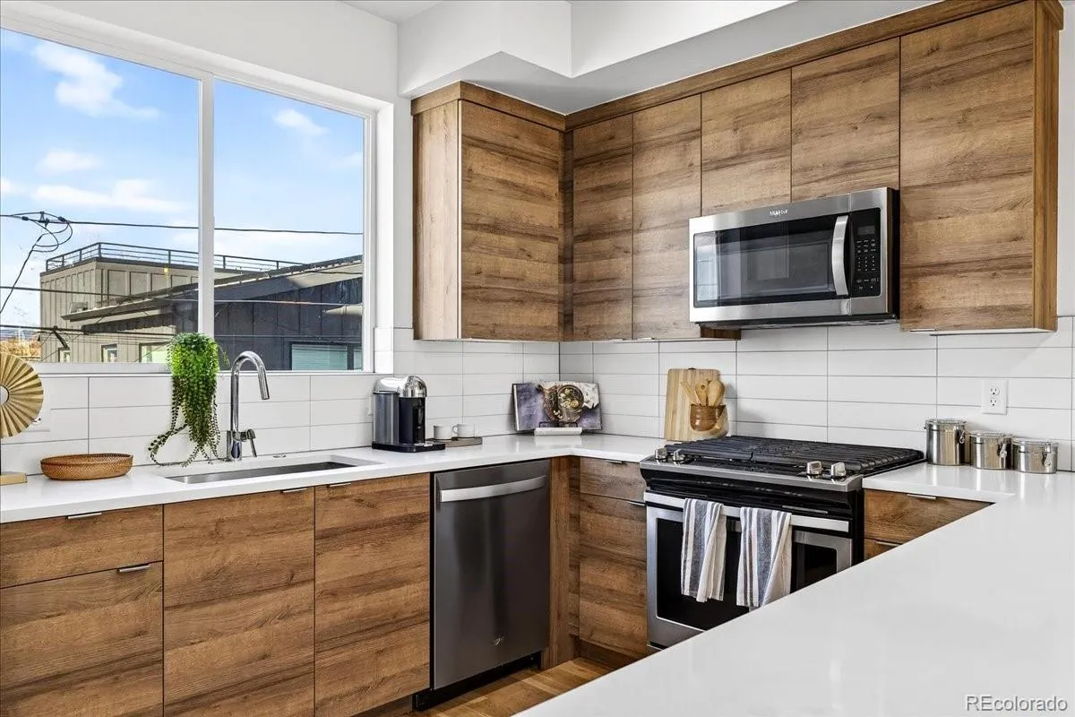 Welcome to this modern Sloan’s Lake townhouse, built in 2018 and thoughtfully designed across three stylish levels. East-facing and filled with natural light, this 2-bedroom, 3-bath home offers an ideal blend of contemporary finishes and unbeatable location.