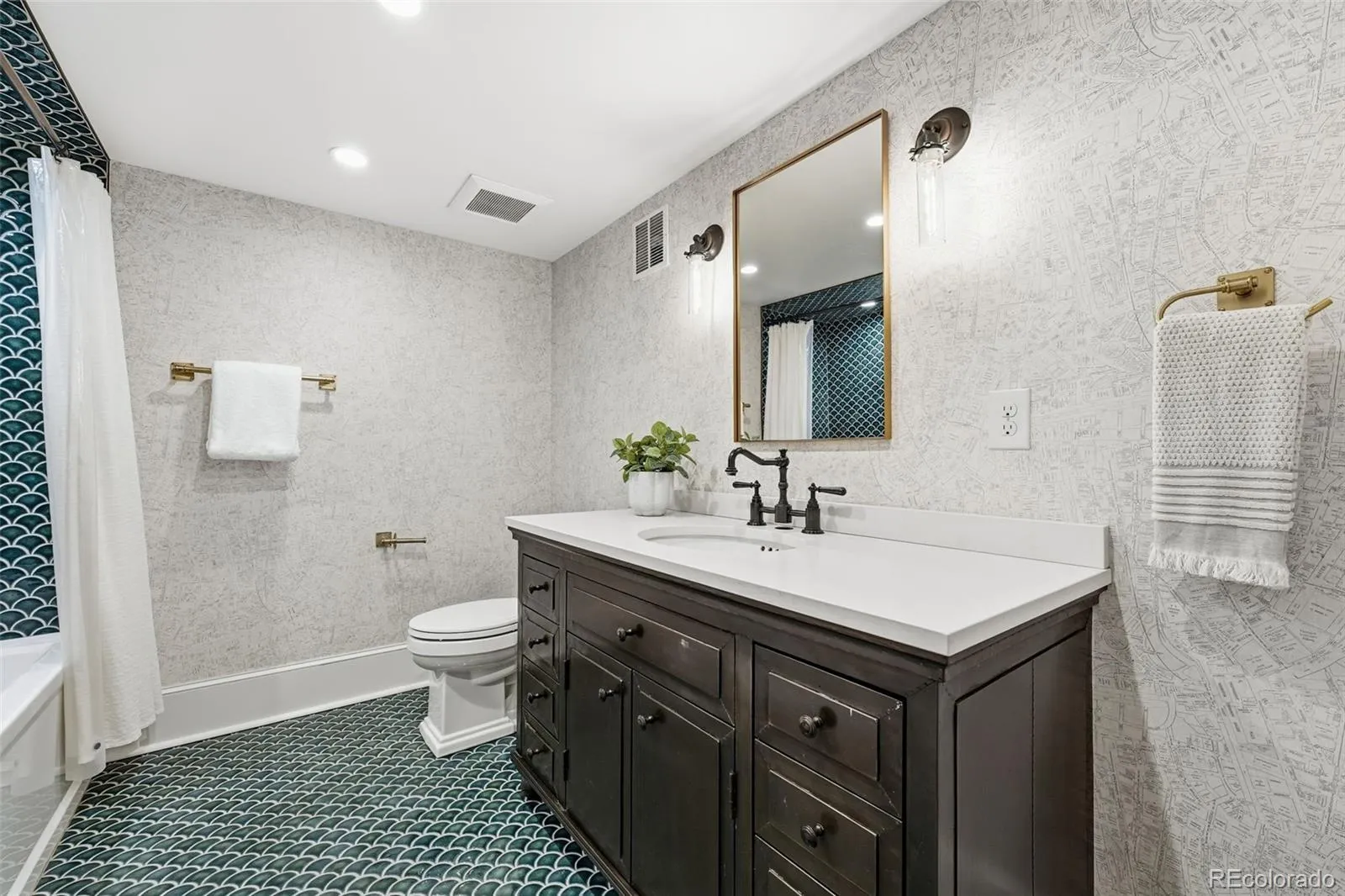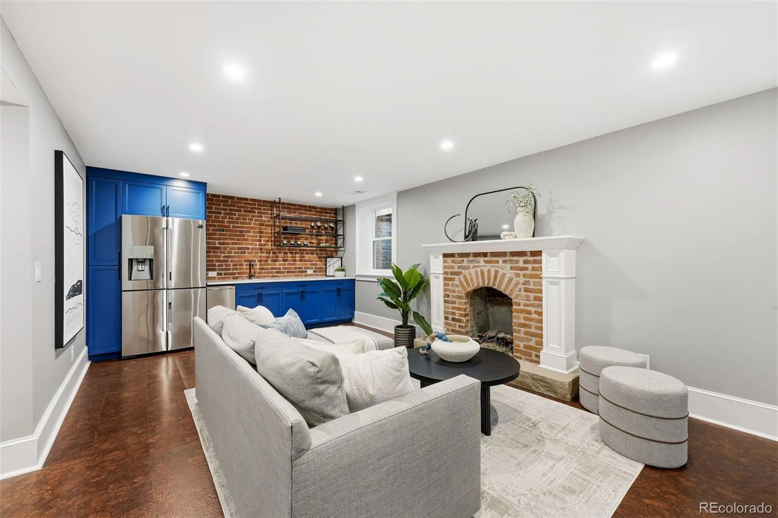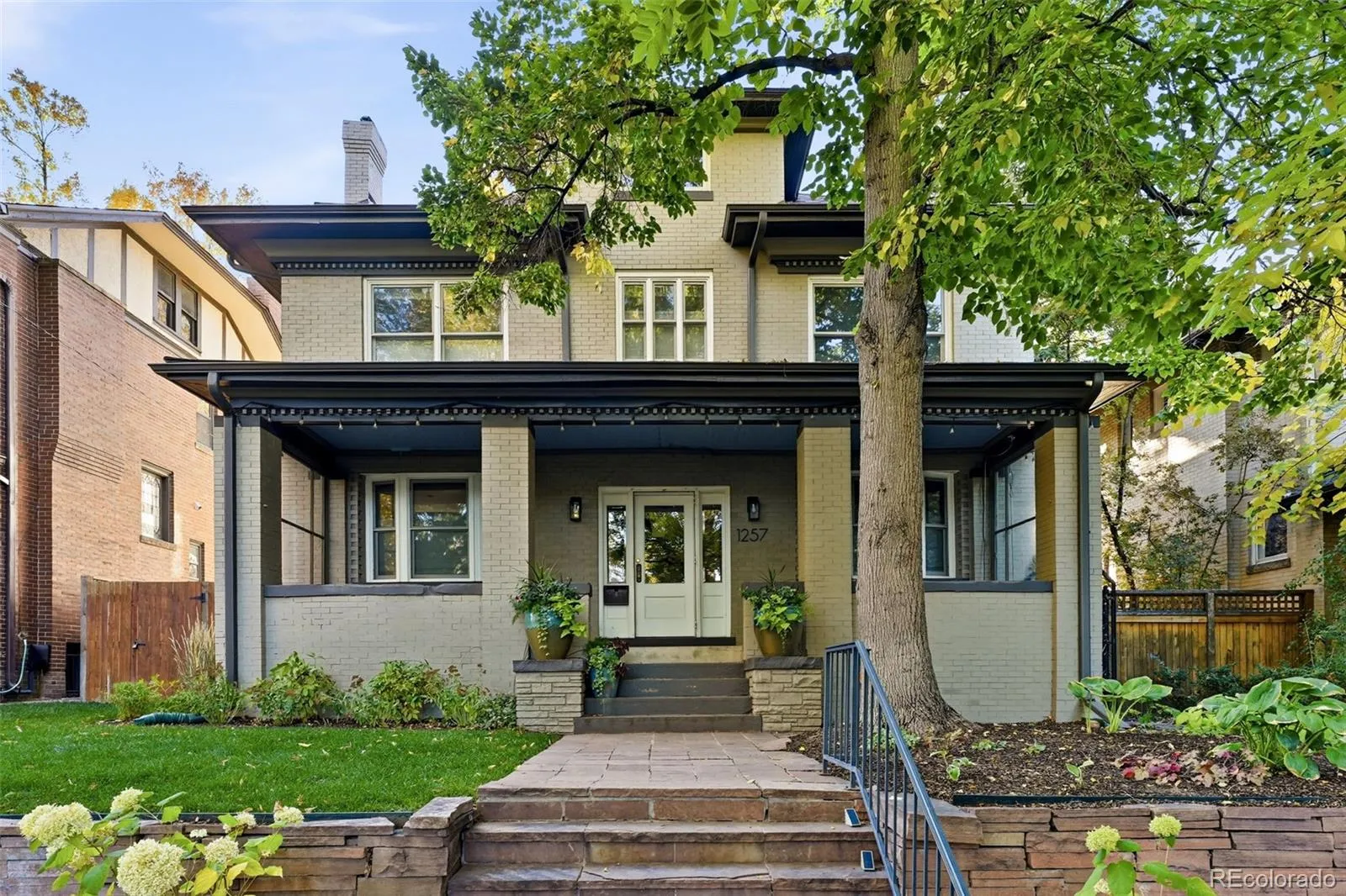 Luxury living in Congress Park is redefined at 1257 Fillmore Street. This stunning 3-story Denver Square has been meticulously renovated for modern living while preserving timeless character. Offering more than 3,700 above-grade square feet and over 5,000 total square feet, the home delivers exceptional scale, design, and functionality across every level. The thoughtfully designed floor plan includes 5 bedrooms, a 3rd-floor loft or bonus space, a dedicated workout room, and 4 beautifully remodeled bathrooms showcasing custom finishes throughout. A classic foyer opens to sun-filled living spaces highlighted by refined trim work, elegant wall coverings, and seamless flow between the formal spaces to the chef’s kitchen. At the heart of the home is a show-stopping chef’s kitchen featuring an 8-burner Wolf range, Sub-Zero refrigeration, quartz island, custom mosaic backsplash, and a nano-door wall that opens completely to the flagstone patio—creating effortless indoor-outdoor living ideal for entertaining. The adjacent formal dining room is equally impressive w/custom lighting, wall coverings & ready to host. The second level hosts 4 bedrooms, including a expansive primary suite with hardwood floors, spa-inspired bath with oversized shower, and dual custom closets. 3 additional bedrooms share a designer bathroom with copper sink, penny tile floors, and custom tile work. The 3rd floor offers a versatile retreat—perfect as an office, loft, studio, or private escape among the treetops. The fully finished basement includes a family room w/exposed brick is ready for movies and game night with wet bar, guest suite w/egress, stylish bath w/heated floors, custom tile and wall coverings, laundry room, and additional room for home gym or bonus room. Outside, enjoy a private, fenced yard and patio with coveted southwest exposure, plus a two-car garage and additional storage.