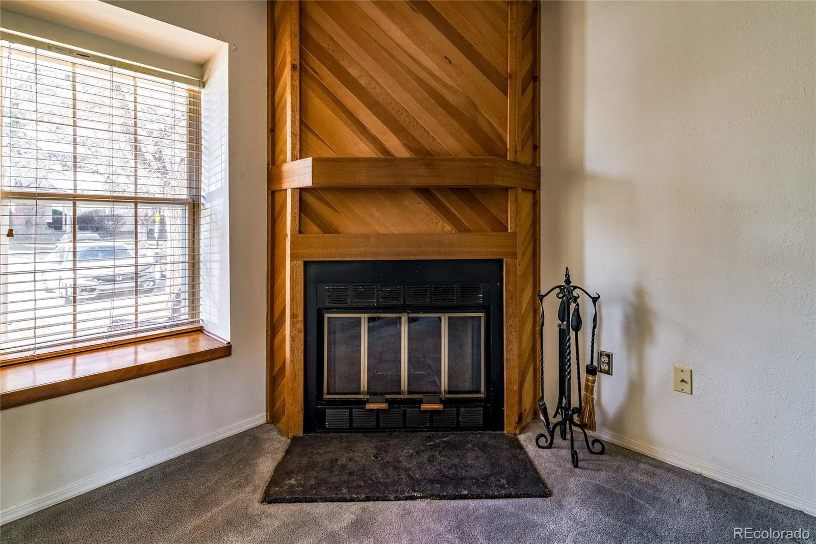 The spacious great room is filled with natural light from a large window and features a cozy wood burning fireplace, creating the perfect space to relax or entertain. The floorplan transitions seamlessly into the kitchen, complete with a breakfast bar, butcher block style laminate countertops, pantry, and a conveniently tucked away stacked washer and dryer. Just off the dining area, step outside to your own fenced patio and small yard or garden area. This private outdoor space is ideal for morning coffee, afternoon barbecues, or simply enjoying fresh air.