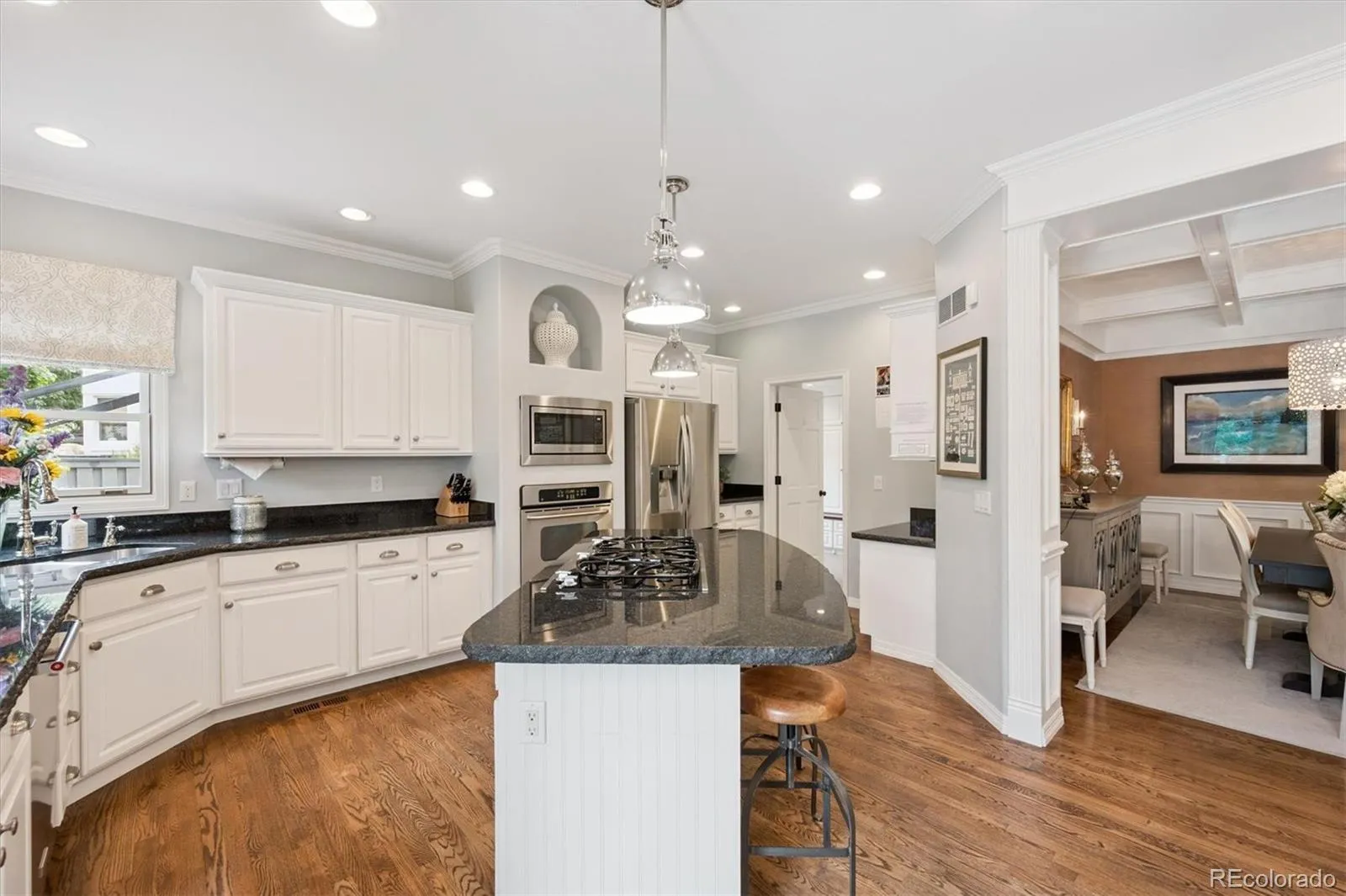 Welcome to this truly exceptional semi-custom home, ideally situated near the Highlands Ranch Mansion. Perfectly positioned at the end of a cul-de-sac and backing to permanent open space. A stunning custom addition has expanded the home by nearly 400 sq. ft., creating a versatile layout that includes handbuilt cabinetry and soundproof executive office, a relocated spa-inspired primary bathroom w/ marble tile, dual walk-in closets, a second laundry, and a bonus exercise room in the basement. Inside, an abundance of natural light fills the open floor plan highlighted by a two-story family room, 2 fireplaces, and timeless wainscoting millwork and new lighting throughout. The gourmet kitchen features classic white 42″ cabinetry and is complemented by a walk-in pantry and a dedicated mudroom with built-in lockers and a convenient main-floor laundry. Upstairs, retreat to the primary suite—a private sanctuary with a luxurious bathroom boasting an oversized shower, private deck, and exceptional storage. Two additional bedrooms share an updated Jack-and-Jill bath, while the fourth bedroom enjoys its own remodeled en-suite. The finished basement is designed for entertaining. With a custom-built entertainment area, kitchenette with an oversized quartz island, and expansive recreation space, it’s perfect for movie nights and game days. A private guest bedroom and ¾ bath, oversized exercise room w/ drinking fountain adds to the amenities this home offers. Step outside and discover your park-like backyard oasis. The massive deck, built-in gas fireplace, outdoor kitchen w/ BBQ, putting green, large storage shed, and south facing basketball court make this the ultimate space for gatherings large or small. Additional upgrades include electric car charger and stone tile roof! Enjoy close access to the Highlands Ranch/DougCo Rec Centers and trail system offering over 100 miles of hiking and biking paths just outside your door.