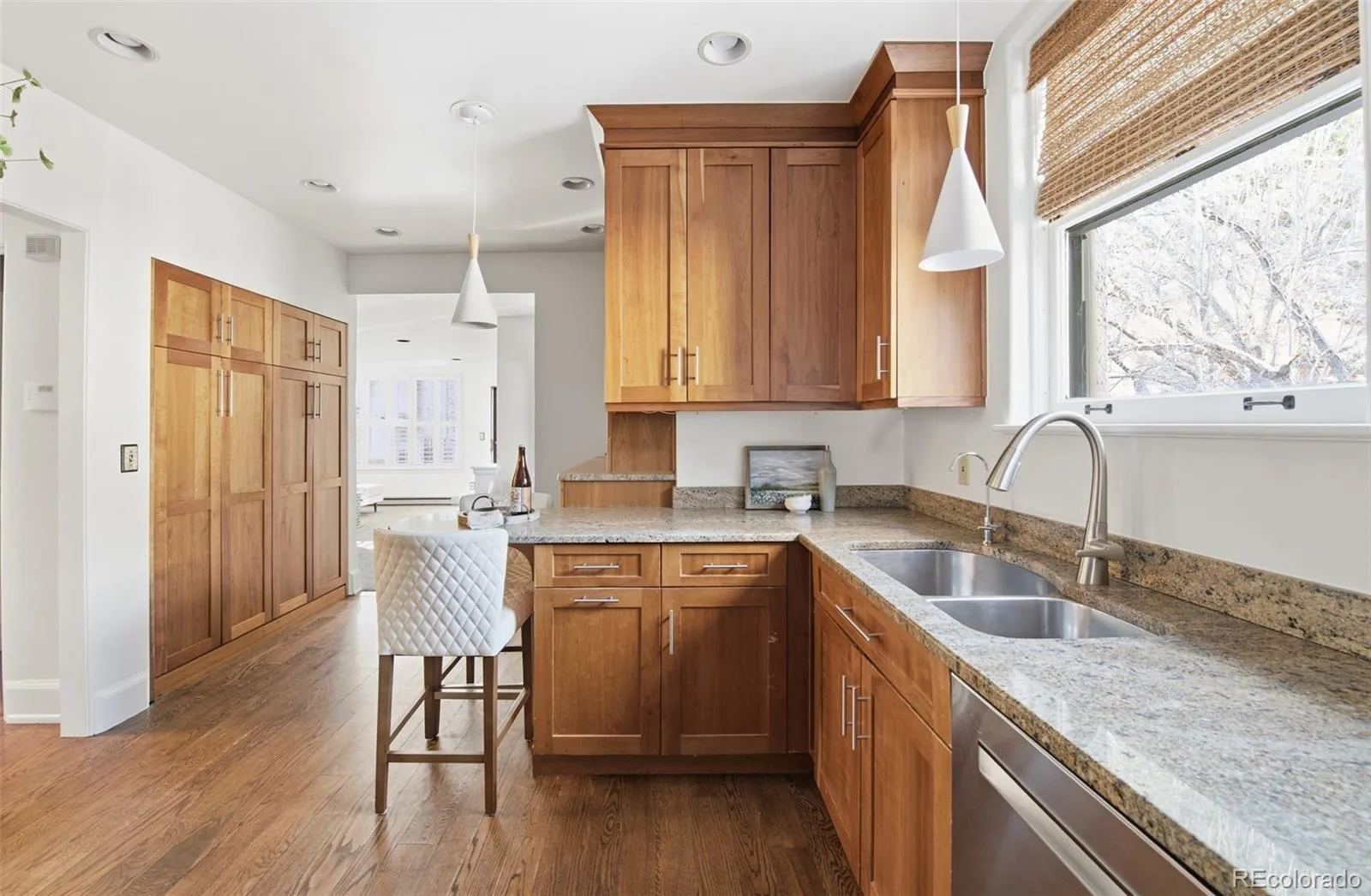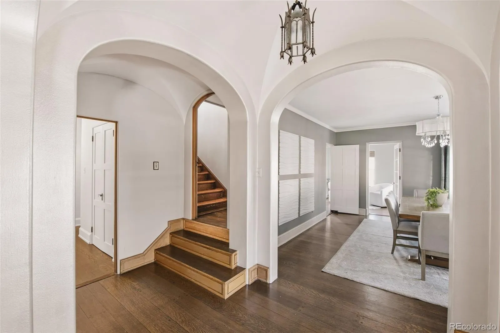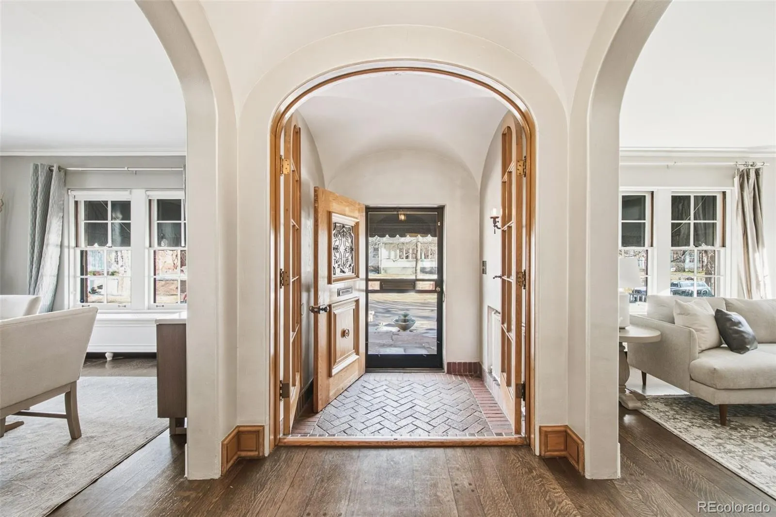 Hailed in 1927 by the Rocky Mountain News as one of Denver’s finest homes, this exceptional historic property is poised on a picturesque block in South Park Hill. This distinguished Spanish-style residence was built by one of Denver’s early leading contractors, Alex Simpson Jr., and blends historic character with timeless livability. Set prominently above the street and bathed in natural light, this home offers graceful architecture and well-proportioned rooms. Inside, original details shine, from the sunroom’s preserved floor tiles to elegant curved ceilings and two original fireplaces. Wood floors, fresh paint, and new carpet complement the home’s historic integrity while enhancing comfort. A main-floor bedroom adds flexibility, while the spacious kitchen is thoughtfully updated with luxury appliances. Upstairs, the primary suite features a marble-clad bath and a large walk-in closet. The lower level expands the living area with a large basement offering new carpet, a full bath, additional bedroom, and ample storage. Outdoors, a generous yard frames the home, with a beautifully landscaped front garden filled with mature trees and perennials. Residents enjoy a prime location just moments from the shops along 23rd Avenue – with Spinelli’s, Honey Hill and Cherry Tomato being some of the areas favorites – and City Park, with access to such favorites as the Museum of Nature and Science, the Denver Zoo, and City Park Golf Course. Floor plan and additional basement photos available upon request. Call listing agent for further details.