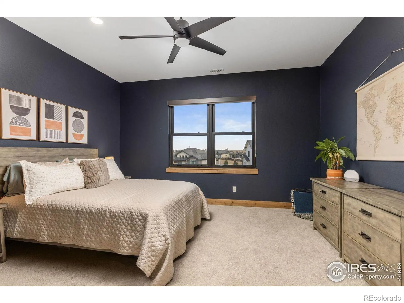 Custom-designed 6-bedroom, 5-bath estate in the gated Rookery at Heron Lakes at TPC Colorado, where breathtaking mountain, water, and open-space views set the backdrop for refined Colorado living. This striking 6,567 SF residence, sitting on a ~.32 acre lot, makes a statement upon arrival with manicured landscaping, a timeless water feature, and architectural presence that carries through the interior. Designed for effortless entertaining and elevated everyday living, the open floor plan flows into a dramatic great room with soaring ceilings and a floor-to-ceiling stone fireplace framed by custom built-ins. The chef’s kitchen is both beautiful and functional, featuring quartz countertops, custom knotty alder cabinetry, built-in appliances, and a substantial island that anchors the space. A sun-filled morning room and formal dining room with a butler’s bar and wine refrigerator extend seamlessly to two covered back decks, creating exceptional indoor-outdoor living. The main level offers a private guest suite, generous laundry room, thoughtfully designed storage and access to the heated oversized 3-car garage. Upstairs, the primary retreat is a true sanctuary with a coffee bar, see-through fireplace, spa-inspired bath with steam shower and soaking tub, custom walk-in closet, and a private covered balcony for taking in unforgettable sunsets. The walkout lower level expands the lifestyle with a spacious recreation room, wet bar, additional bedrooms, covered patio, and gas firepit. A heated, recreation-ready garage with epoxy floors, dog wash, and dog run completes the home. Rookery residents enjoy access to resort-style amenities including a pool, clubhouse, fitness center, nearly 9 miles of trails, over 130 acres of open space, 4.5 miles of shoreline, and deeded TPC Colorado membership with world-class golf privileges. An exceptional opportunity to secure luxury living, privacy, and lifestyle in one of Northern Colorado’s most sought-after gated golf communities.