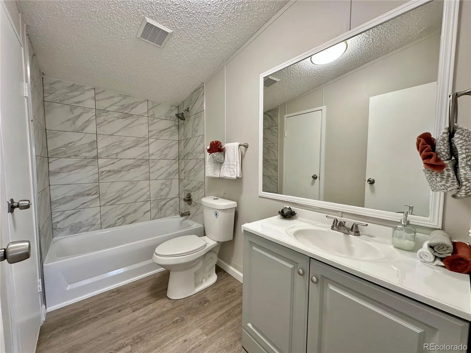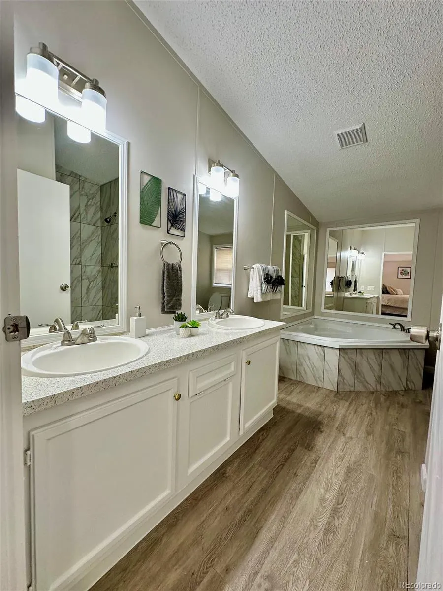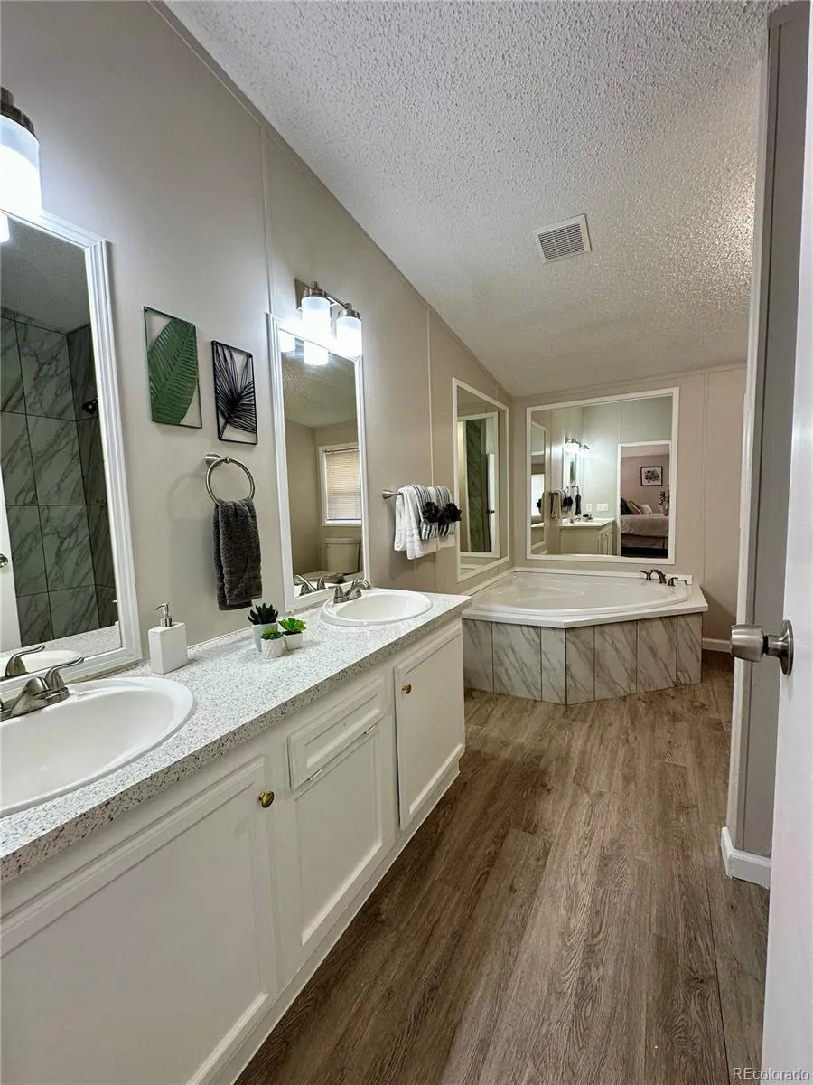 Great opportunity to own a remodeled and updated 3/2 with a 2 car garage for well under $400,000 in Denver! Interior highlights include brand new granite kitchen counters, custom tile bath surrounds, 5 piece master bath with soaking tub, new flooring throughout, new paint throughout, new light fixtures, vaulted ceilings creating an open spacious feel, and more! Exterior highlights include a brand new fully permitted roof, 2 car detached garage, and new exterior paint. Location can’t be beat just a short walk to Water World, easy access to downtown Denver and I-25. This is a manufactured home built in 1999 with purged title and no HOA fees. You will own the land the home and garage sit on with no lot fees, no hoa fees, no metro tax, etc. Plenty of financing options available contact listing agent for a preferred lender that can offer financing incentives!