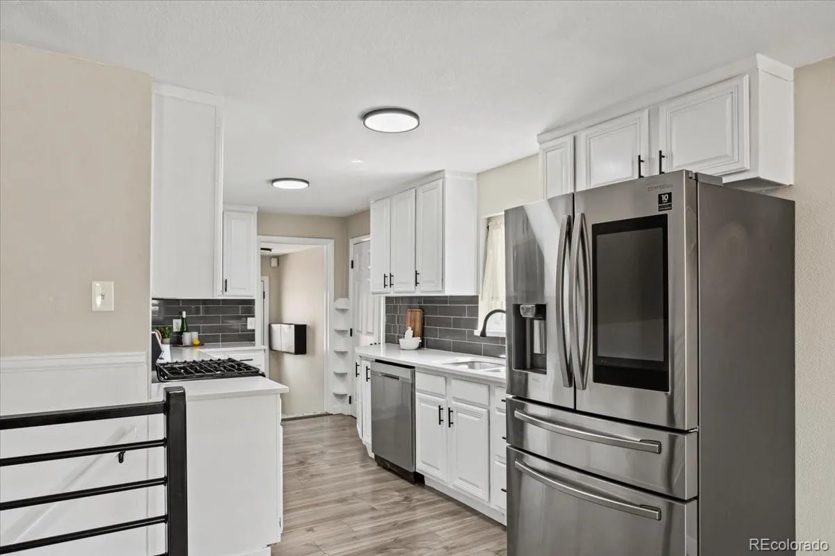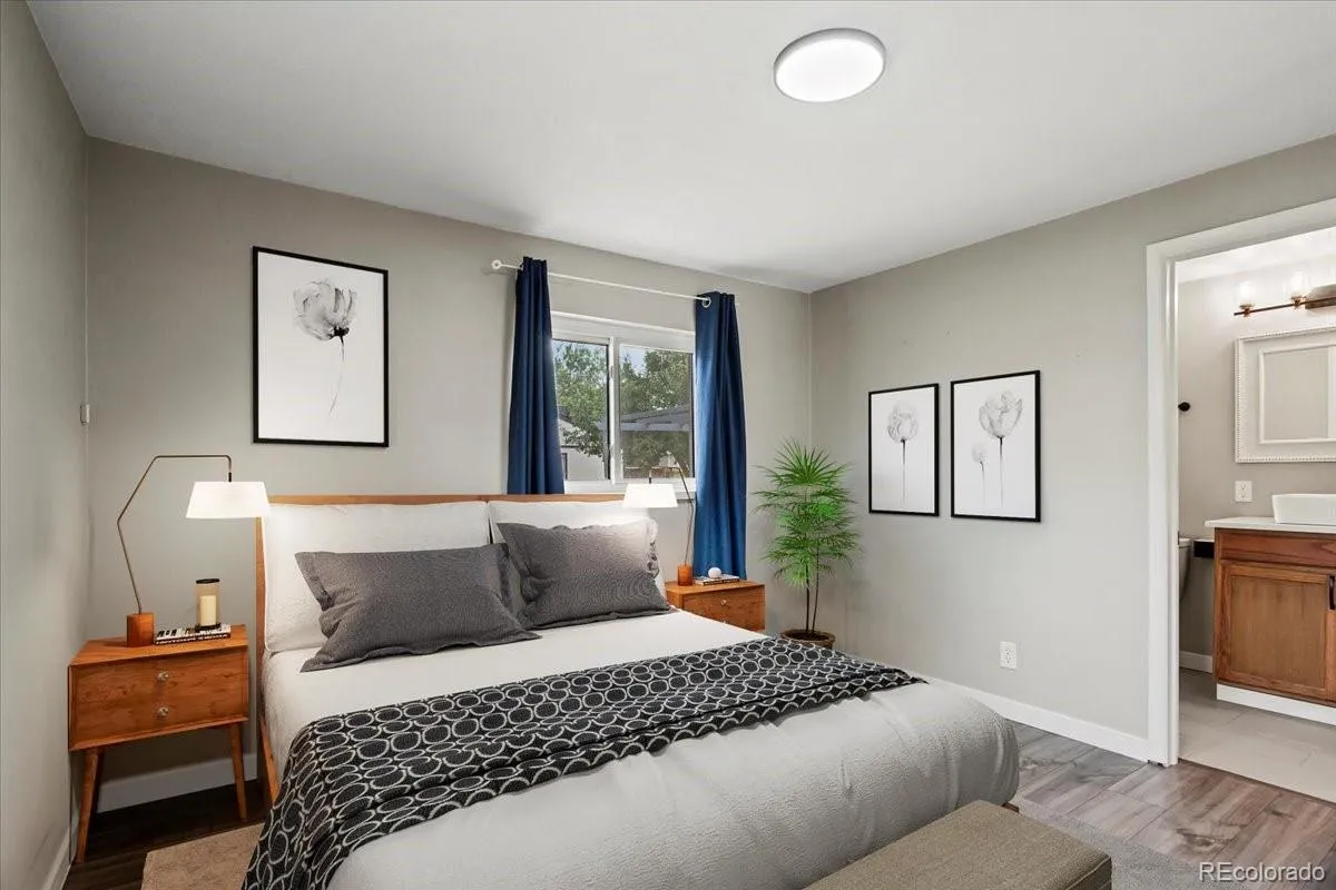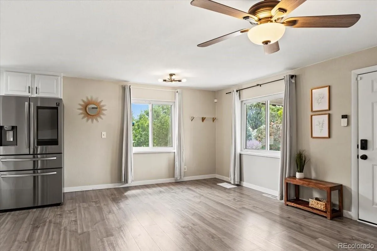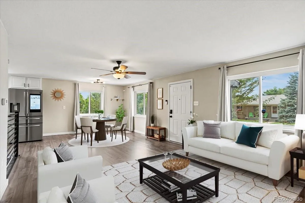 >>EXCEPTIONAL VALUE + MOVE-IN READY!<< Updated Englewood bungalow with newer roof, modern kitchen, updated baths, and flexible bonus space for bedroom, office, den, or additional living space. This home offers peace of mind with a new water heater and expansion tank (2025), new entry doors (2025), and a new roof (2023). The durable Hardie concrete siding provides long-lasting protection against rot, warping, and fire—built to last for decades. Inside, enjoy a bright and open-concept layout filled with natural light. The updated kitchen features quartz countertops, a modern tile backsplash, and stainless steel Samsung appliances, including a WiFi-enabled smart refrigerator - perfect for today’s lifestyle. All three bathrooms have been tastefully remodeled with new vanities and contemporary tile finishes. The converted garage offers a flexible, sun-filled space ideal for a home office, study, bedroom or bonus room. Situated on a spacious lot in the heart of Englewood, the property includes a detached two-car garage and charming mature apple trees. Located just minutes from light rail, Broadway/Belleview, South Platte Trails, and River Point shopping and dining, this home delivers both comfort and convenience. A rare opportunity to own a truly turn-key home at an exceptional value - schedule your showing today! DISCOUNTED RATE OPTIONS and NO LENDER FEE FUTURE REFINANCING may be available for qualified buyers. Ask the Listing Agent for details.