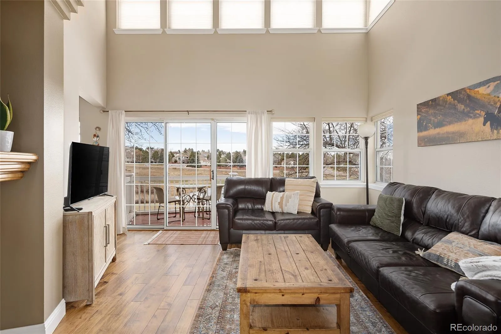 Welcome to 8666 Ainsdale Court, an exceptional 3 bed, 3 bath townhome nestled in the highly desirable Masters Park community of Lone Tree. This light-filled residence offers 2,281 square feet of well-designed living space and is an ideal blend of comfort, style, and low-maintenance living. Situated on a quiet street and backing directly to the Lone Tree Golf Club, this home provides scenic views of lush fairways and serene water features – perfect for enjoying Colorado’s four seasons right from your own deck or living room. Step inside to discover an inviting floor plan with vaulted ceilings and abundant natural light. The well-appointed kitchen features a central island, granite countertops, and ample cabinet space which is ideal for everyday meals and casual entertaining. The adjacent dining area flows seamlessly into the spacious family room with a cozy gas log fireplace, creating a warm and welcoming atmosphere. Upstairs, the generous primary suite is a true retreat with duel closet spaces, an en-suite bathroom providing privacy and convenience and an additional office/flex room. The lower level expands your living options with additional living space that can easily serve as a recreation room, game room, or home gym. Two additional bedrooms, laundry closet and full bath complete the space. Outside, enjoy peaceful views overlooking the golf course and pond from your private deck, a perfect setting for morning coffee or evening relaxation. The attached two-car garage provides convenience and storage, while the HOA includes exterior maintenance, snow removal, and grounds care, making this a truly maintenance-free lifestyle. Located in Douglas County and within easy reach of shopping, dining, parks, light rail transit, and major commuter routes, this home delivers a rare combination of golf-course living, comfort, and convenience. This is an exceptional opportunity to own a home with breathtaking views, versatile space, and a premier Lone Tree address!