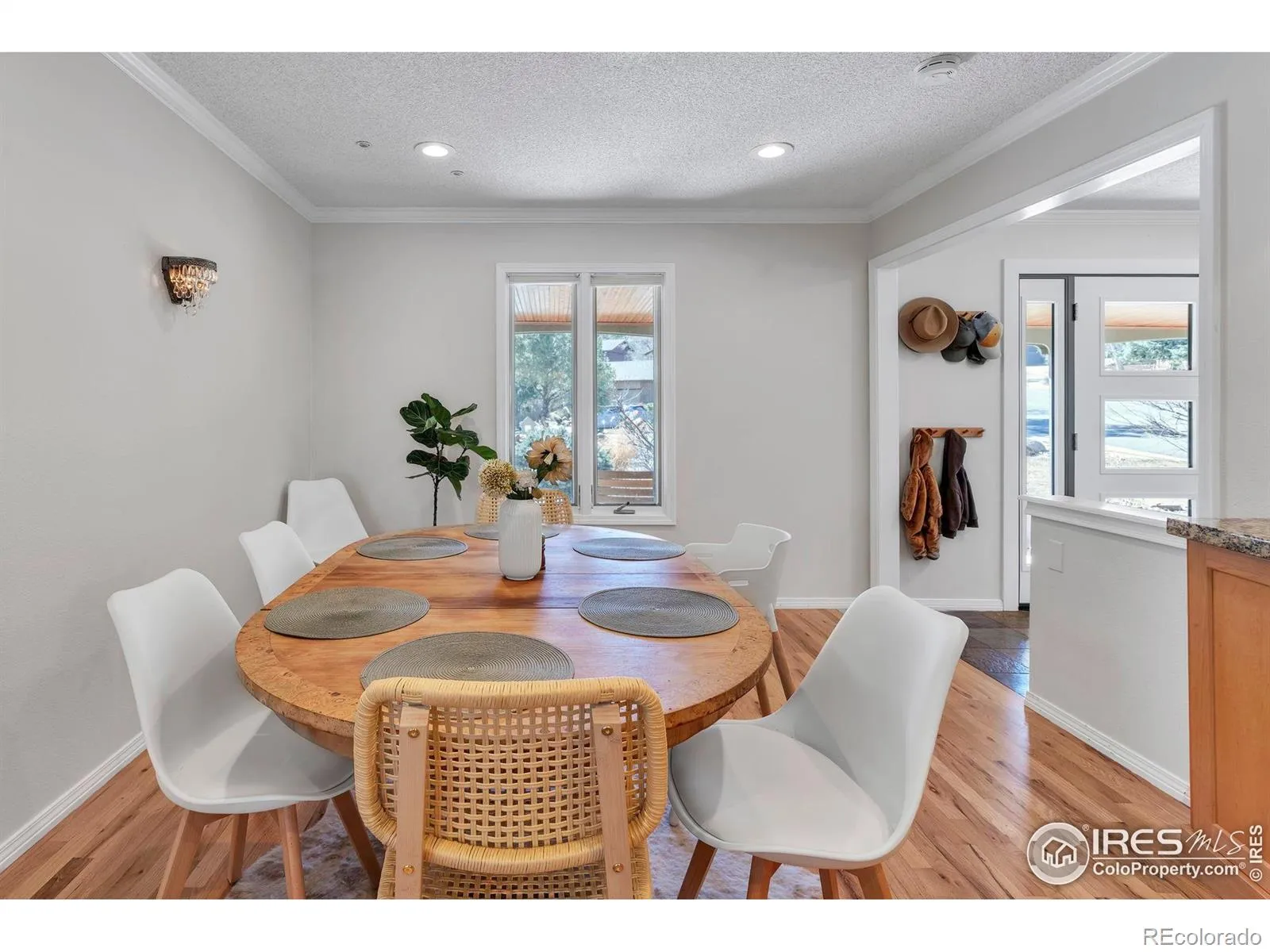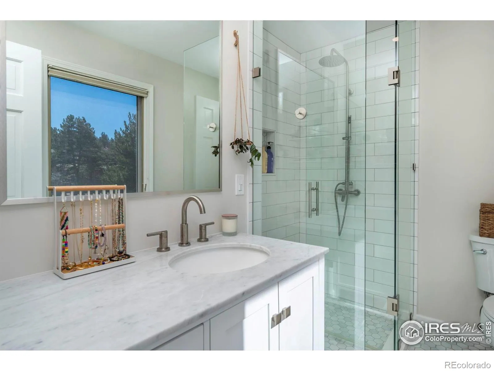Amazing location in Devil’s Thumb. This thoughtfully updated 5 bed/4 bath home is nestled in one of Boulder’s most sought-after neighborhoods and features a 10 kW owned solar system that nearly pays the entire electric bill. Refinished hardwood floors, vaulted ceilings, and an updated kitchen with quality finishes set the stage for inviting living spaces. The main level features a formal living room, eat-in dining area, and cozy family room with two newly added skylights that fill the space with natural light. Fresh interior and exterior paint, custom built-ins, and stylish lighting add warmth and character. There are four bedrooms on the upper level and it features a remodeled primary bathroom offering a spa-like retreat. The finished basement has a bedroom, a bathroom, and rec room – which makes the flexible floor plan perfect for hosting guests, working from home, or creating a space to play. The secluded backyard oasis has a flagstone patio and spacious deck, all surrounded by lush landscaping and stunning mountain views. Located just steps from miles of scenic trails, top-rated schools, and an exclusive HOA with a private pool and tennis courts, this exceptional home offers the perfect blend of nature, comfort, and community. All measurements to be verified by buyer.