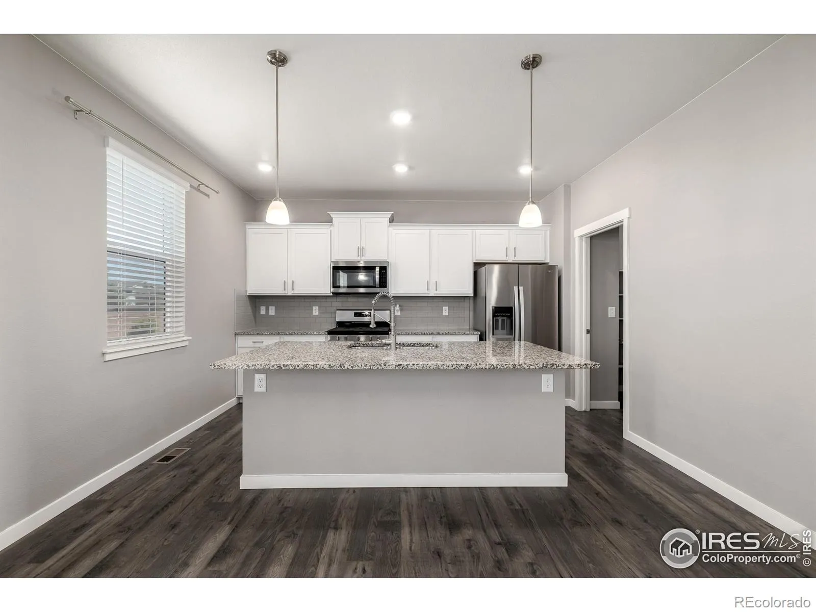 Less than ten minutes from downtown Windsor, this thoughtfully designed single-family residence balances modern livability with a welcoming sense of place. A classic exterior with stone accents, a neat front yard, and a covered porch sets an inviting tone that carries throughout the home. Inside, nine-foot ceilings and wide-plank flooring in warm modern tones create an open, intentional atmosphere. The expansive great room flows seamlessly into a contemporary kitchen where white cabinetry, granite counters, subway tile backsplash, and stainless steel appliances form an elegant yet functional space. A large island, pendant lighting, and an expansive walk-in pantry complete the kitchen’s design, blending practicality with style. Just off the entry, a den with French doors offers flexibility as an office or reading nook, while the upper level introduces a versatile loft for relaxation or play. The primary suite provides a private retreat, enhanced by abundant natural light, a spacious walk-in closet, and a well-appointed bath with dual sinks. The unfinished basement extends the opportunity for customization, whether for additional living, recreation, or storage. Outdoors, a level and carefully landscaped backyard provides room to gather, complemented by a quaint concrete patio that encourages time spent in the fresh air. Additional highlights include two 240-volt EV charging outlets in the garage. With a location that ensures quick access to Windsor’s vibrant downtown, community parks, and commuter routes, this home offers a turnkey opportunity to enjoy modern Colorado living.