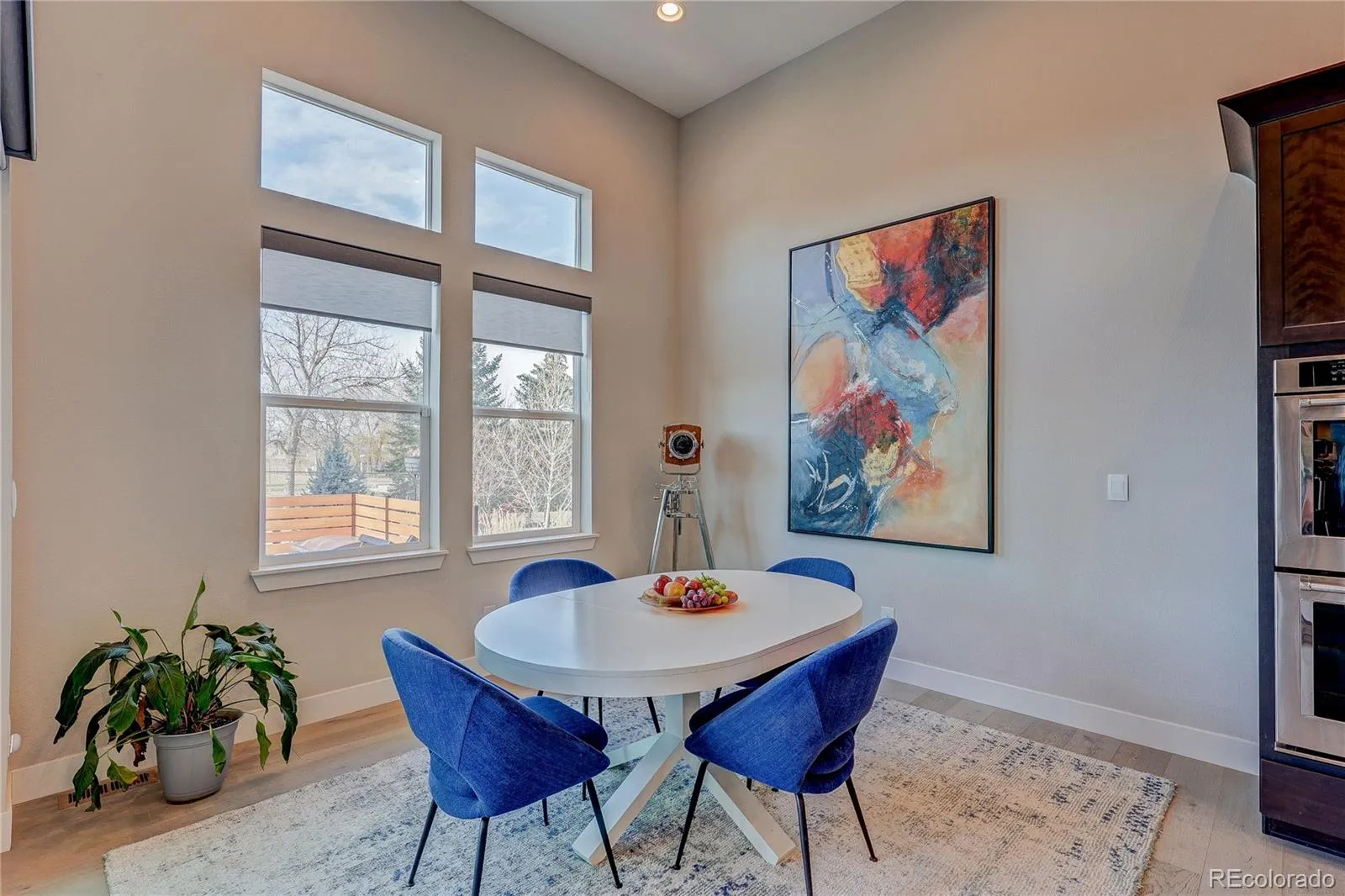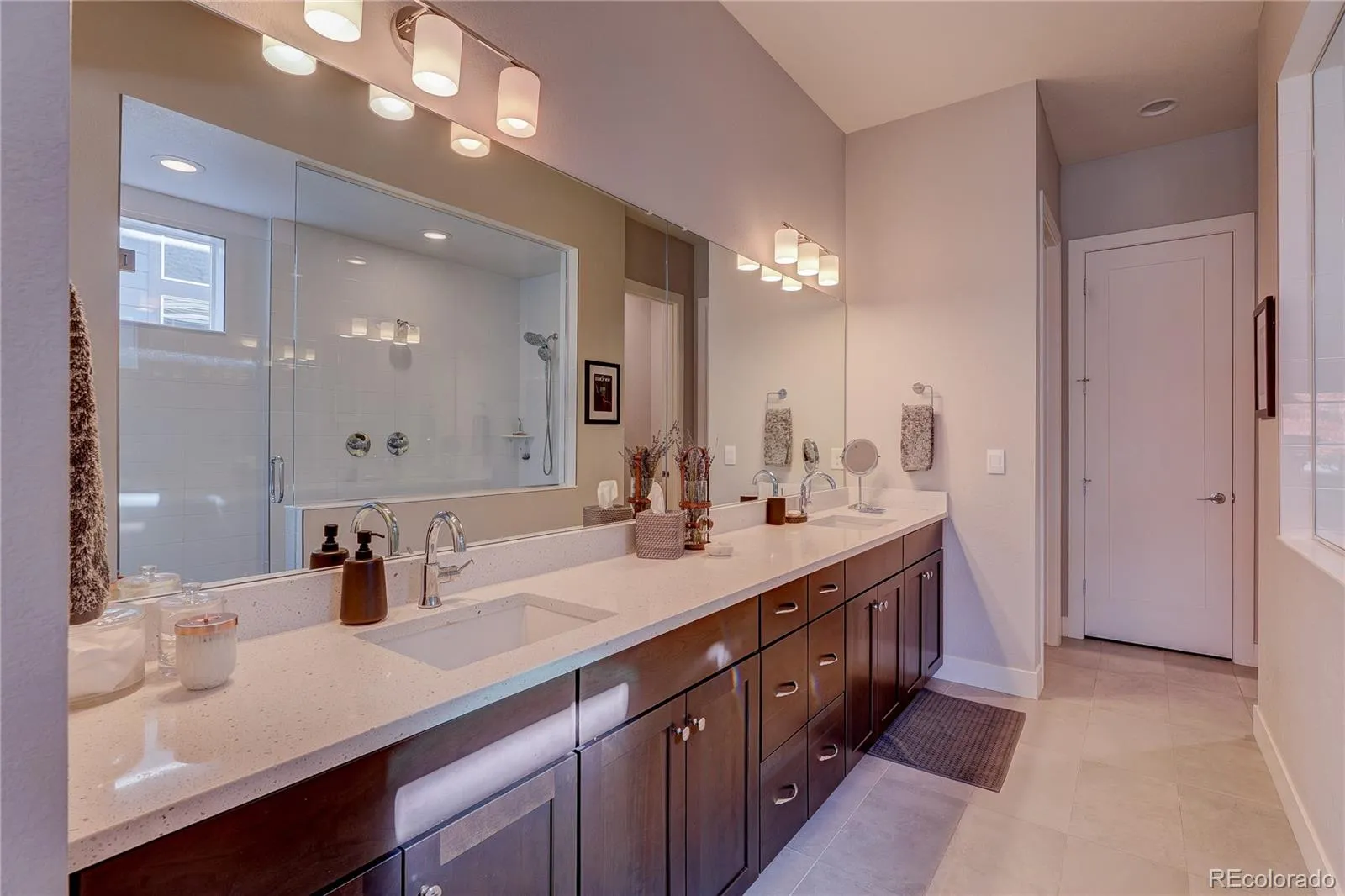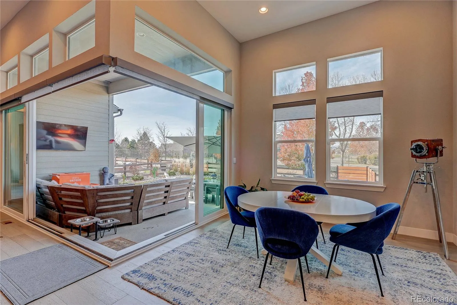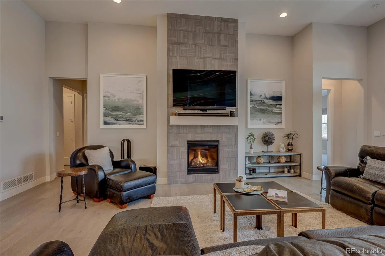 Ranch semi-custom home in the heart of Erie’s sought-after Rex Ranch community. With over 5,000 sq ft of refined living space, this 4-bed, 4-bath residence is designed for comfort, style & effortless main-floor living. Open floor plan featuring soaring vaulted 13 ft ceilings with a cozy fireplace in living room & a dedicated dining area perfect for hosting. The gourmet kitchen is a chef’s dream with a large island, 5-burner cooktop, eat in kitchen area & coffee butlers’ area. Inside living seamlessly flows to the outdoor entertainment space. Nano style sliding glass doors open to a covered patio with a built-in TV area, overlooking a professionally landscaped backyard, additional patio & grill area, ideal for relaxing or entertaining year-round. The main level offers true convenience with a spacious primary suite, full laundry room, and a second bedroom with en-suite bath – perfect for guests or multi-generational living. Hunter Douglas blinds with living room remote features. Upon entering you will be greeted with an abundance of natural light enhance the home’s airy feel throughout. Lush .19-acre lot with no homes to the West creates privacy & country feelings. Boulder Valley School District is a top ranked district & this home is minutes from Meadowlark K-8, Erie Rec Center, & the library. Only 1 block from THOMAS RESERVOIR & Trails, easy access to open space and only 15 minutes to Boulder, close to Erie Recreation & Library.