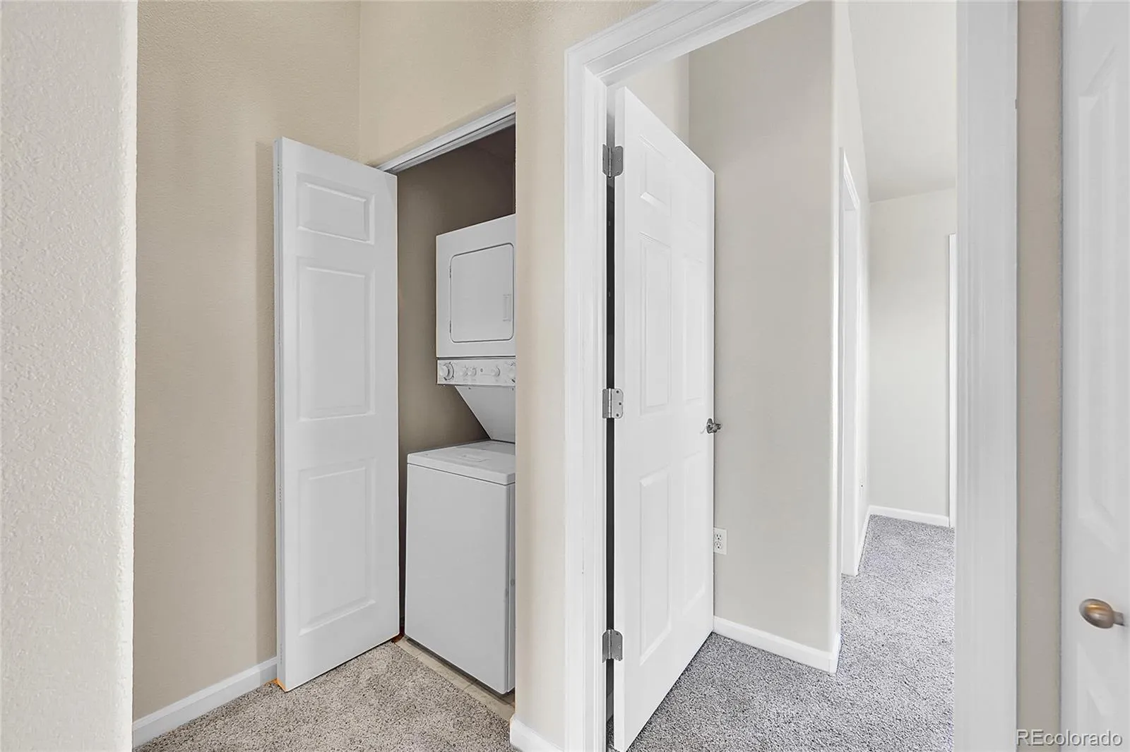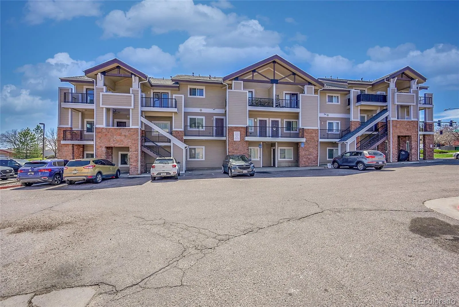 SEE VISUAL TOUR WITH VOICE. This unique two-story condo is a desirable end-unit penthouse offering exceptional privacy, abundant natural light, and no unit above. The main living area features 9-foot ceilings, while both bedrooms boast vaulted ceilings, creating an open and spacious feel throughout. A convenient half bathroom is located on the main level, and built-in cabinetry on the stair landing provides excellent additional storage or a perfect bar setup. Each bedroom includes its own full bathroom and a large private balcony, offering ideal separation and comfort. Recent updates include new carpet, fresh paint, matching LG kitchen appliances, a new water heater, many updated light fixtures, and a touch-activated kitchen faucet. Additional highlights include air conditioning and a location directly next to Bell Roth Park with its lake, with Water World just down the street.