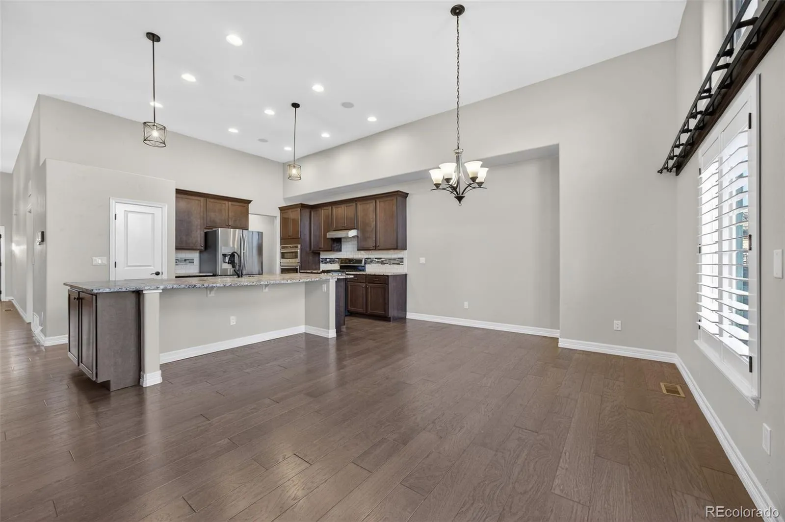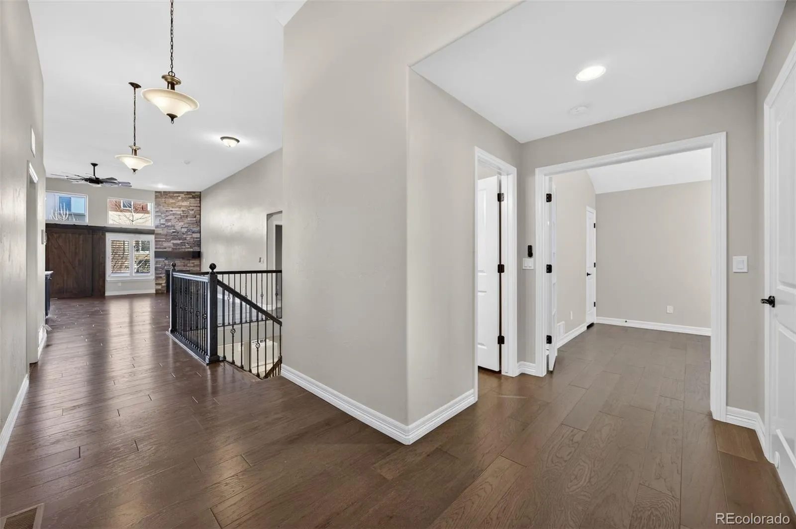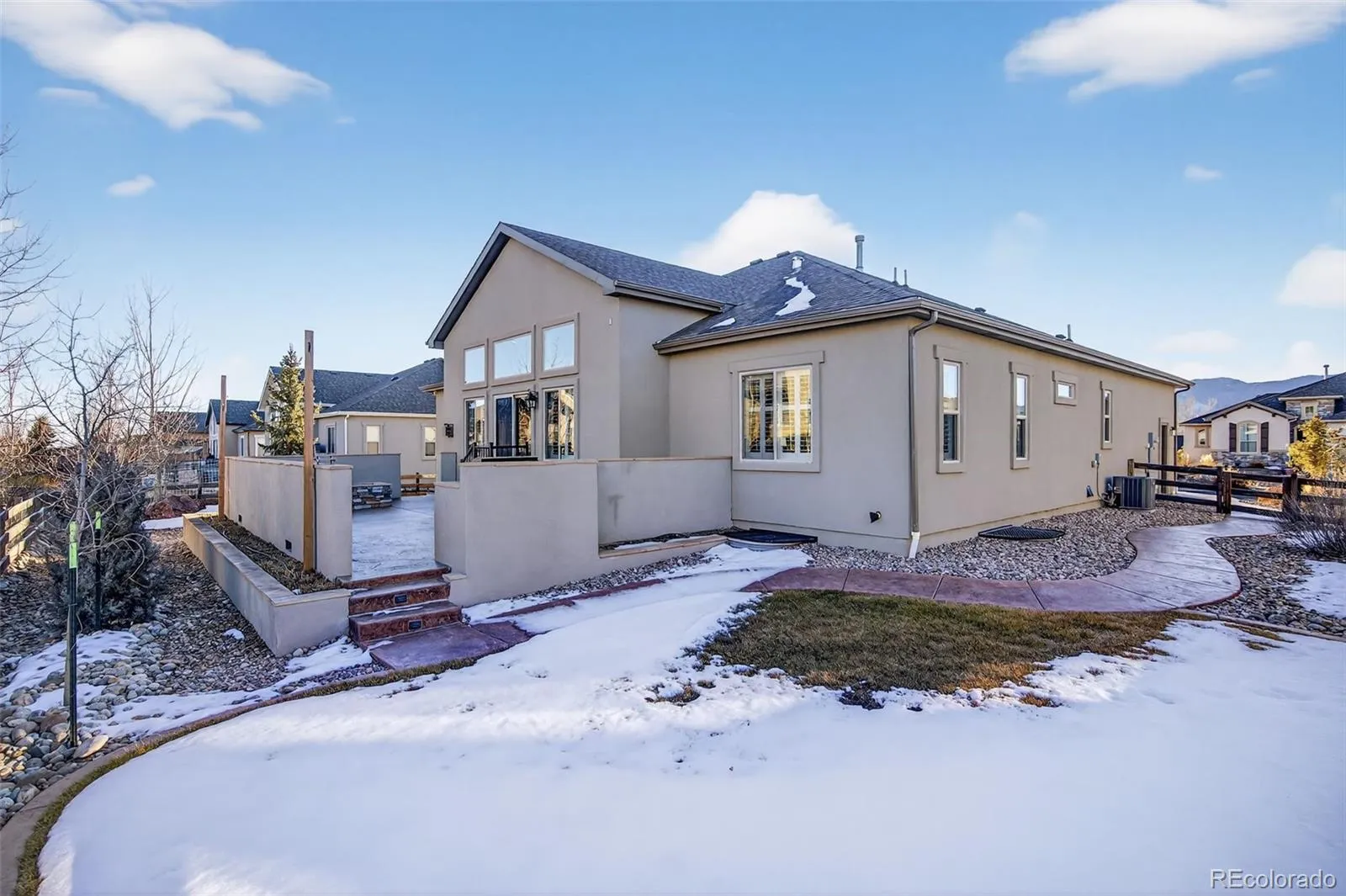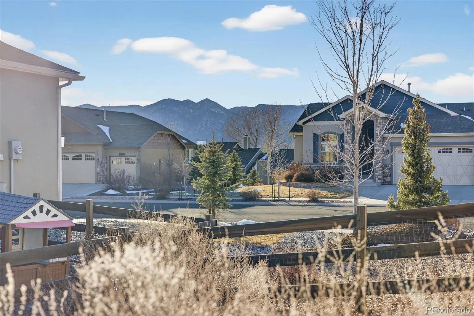 !!! ASK ABOUT THE LENDER INCENTIVES ON THIS HOUSE WORTH UP TO $17,260!!!! Welcome to this beautifully crafted ranch-style home in the highly sought-after Morningview at Gleneagle community. Offering partial mountain views and elegant design throughout, this home blends luxury, comfort, and functionality. Step inside to soaring 12-foot ceilings and an open-concept layout filled with natural light. The main level includes three bedrooms, a dedicated home office, and a formal dining room with barn doors that open to the backyard—ideal for indoor-outdoor entertaining. The gourmet kitchen features a large leathered granite island, soft-close cabinets, walk-in pantry, and premium stainless steel appliances, including double ovens, a gas range, and a French door refrigerator. The spacious living room centers around a gas fireplace with stone surround and wood mantel, creating a warm, inviting atmosphere. The primary suite is a true retreat, featuring a spa-inspired en-suite with dual vanities, a walk-in shower with dual heads, and a large walk-in closet. The finished basement offers 9-foot ceilings, a large rec room, wet bar, and two additional bedrooms with walk-in closets. One is a junior suite with a private full bath and double sinks—perfect for guests or multigenerational living. Additional highlights include a 3-car garage, laundry/mudroom with built-in cabinetry and utility sink, plantation shutters, an On-Q home audio system, whole-house humidifier, radon mitigation system, and a spacious storage room. Enjoy Colorado’s beautiful weather in the professionally landscaped, low-maintenance backyard featuring a stamped concrete patio, walled seating area, built-in gas BBQ, and custom gas fire pit. Located just minutes from I-25, shopping, dining, and top-rated District 20 schools, this home offers the ideal blend of luxury, convenience, and lifestyle.