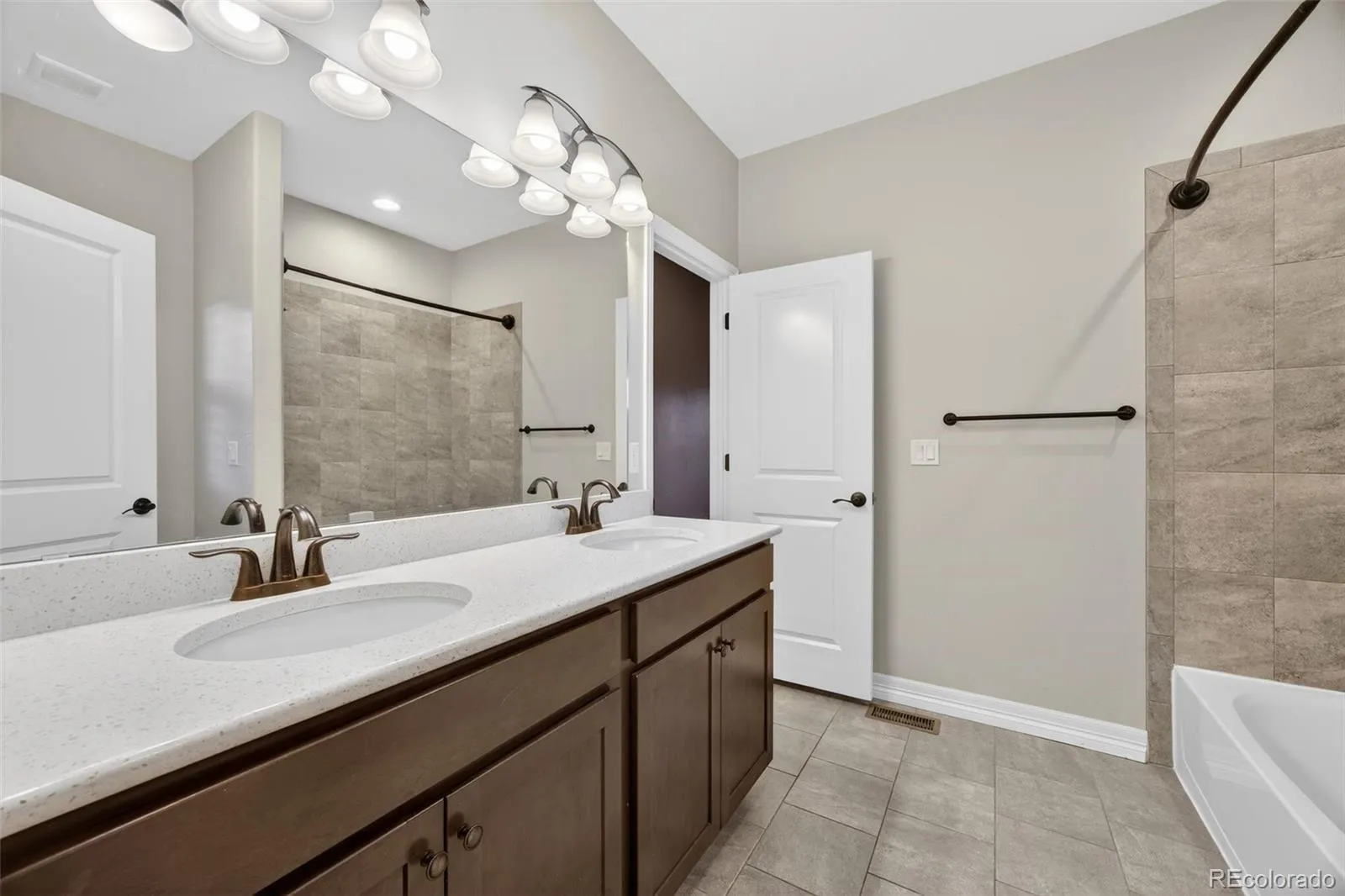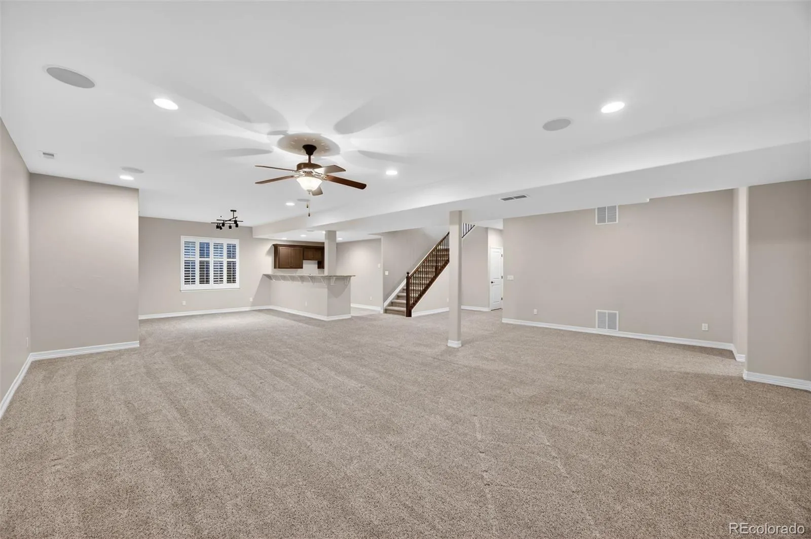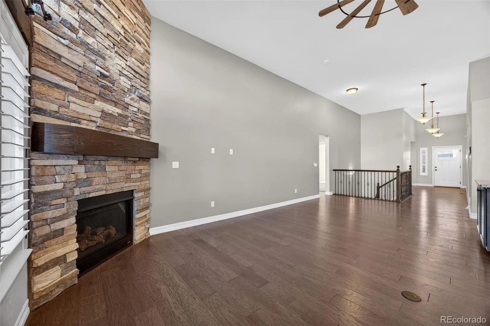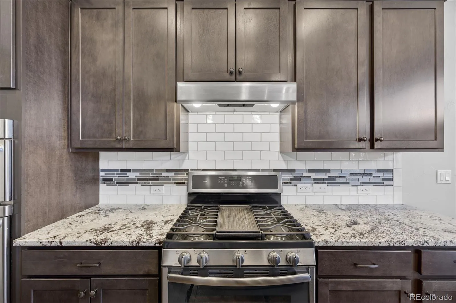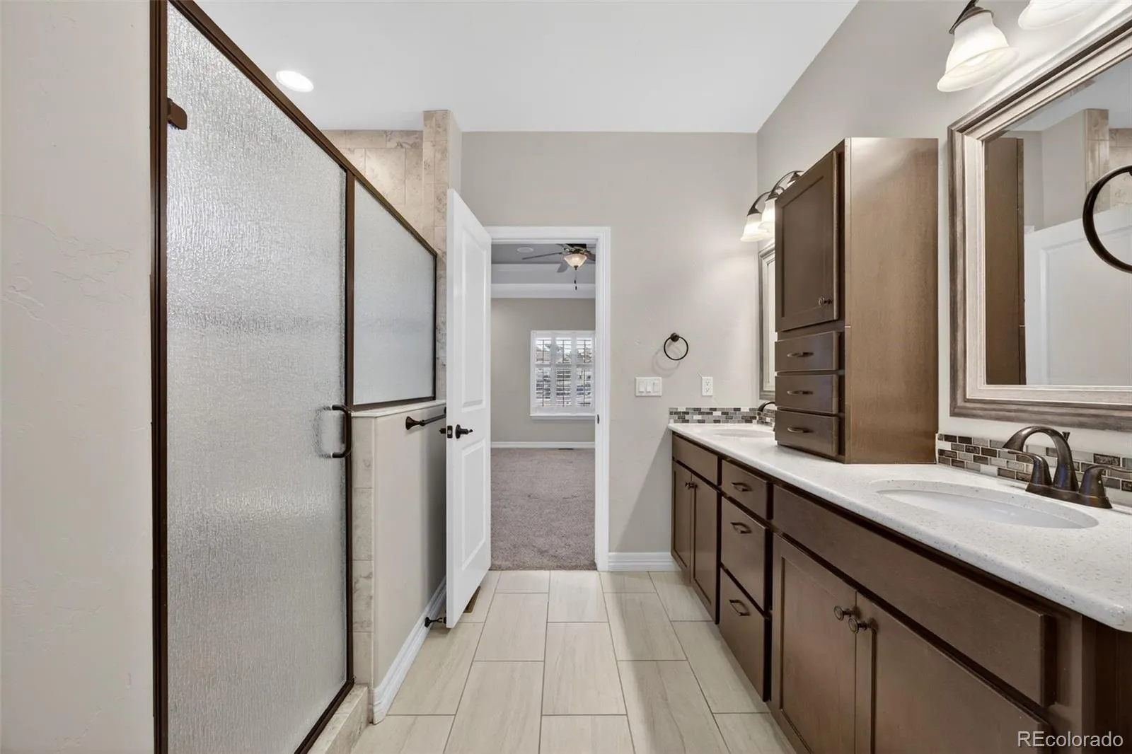 !!! ASK ABOUT THE LENDER INCENTIVES ON THIS HOUSE WORTH UP TO $17,260!!!! Welcome to this beautifully crafted ranch-style home in the highly sought-after Morningview at Gleneagle community. Offering partial mountain views and elegant design throughout, this home blends luxury, comfort, and functionality. Step inside to soaring 12-foot ceilings and an open-concept layout filled with natural light. The main level includes three bedrooms, a dedicated home office, and a formal dining room with barn doors that open to the backyard—ideal for indoor-outdoor entertaining. The gourmet kitchen features a large leathered granite island, soft-close cabinets, walk-in pantry, and premium stainless steel appliances, including double ovens, a gas range, and a French door refrigerator. The spacious living room centers around a gas fireplace with stone surround and wood mantel, creating a warm, inviting atmosphere. The primary suite is a true retreat, featuring a spa-inspired en-suite with dual vanities, a walk-in shower with dual heads, and a large walk-in closet. The finished basement offers 9-foot ceilings, a large rec room, wet bar, and two additional bedrooms with walk-in closets. One is a junior suite with a private full bath and double sinks—perfect for guests or multigenerational living. Additional highlights include a 3-car garage, laundry/mudroom with built-in cabinetry and utility sink, plantation shutters, an On-Q home audio system, whole-house humidifier, radon mitigation system, and a spacious storage room. Enjoy Colorado’s beautiful weather in the professionally landscaped, low-maintenance backyard featuring a stamped concrete patio, walled seating area, built-in gas BBQ, and custom gas fire pit. Located just minutes from I-25, shopping, dining, and top-rated District 20 schools, this home offers the ideal blend of luxury, convenience, and lifestyle.