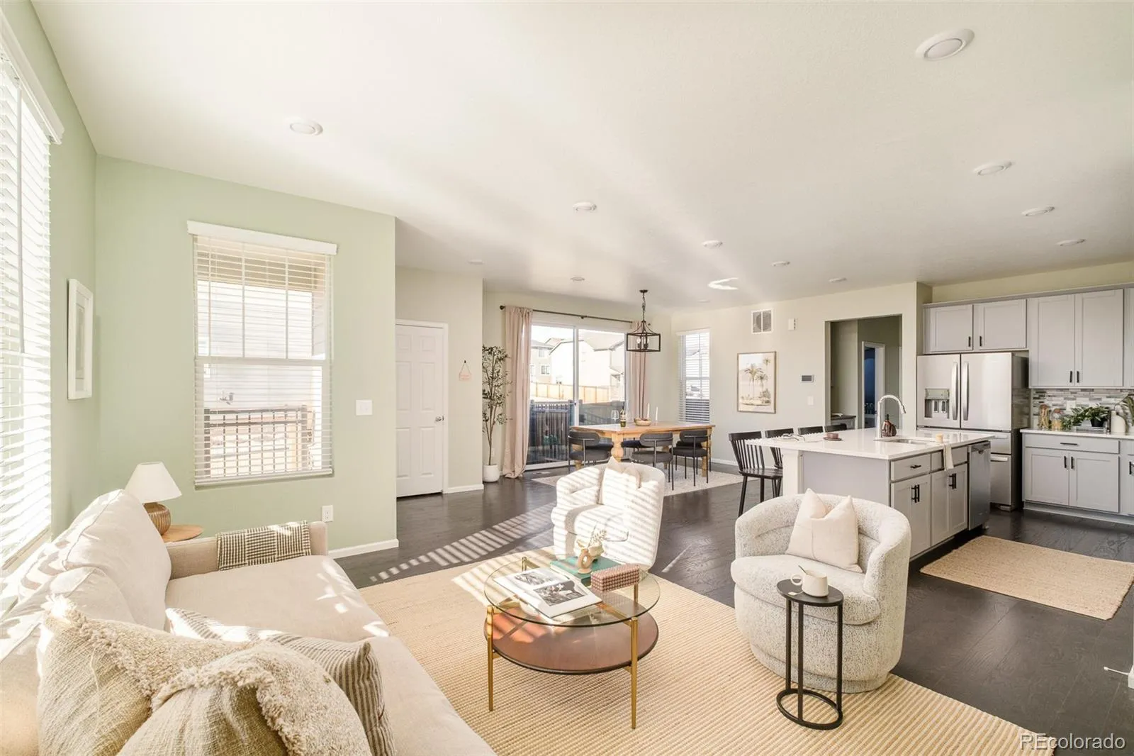 Welcome to 17466 Bluetrail Avenue — a light-filled and stylish paired home in the heart of Parker. With nearly 2,000 square feet of above ground living space, this home offers thoughtful updates, playful finishes, and a layout that lives effortlessly. The main floor features LVP flooring, an open-concept kitchen with quartz countertops, stainless steel appliances, coffee/organization station, plus a spacious living and dining area perfect for entertaining. Upstairs, enjoy freshly cleaned carpet, a spacious loft/flex space (perfect as a sitting area or work area), and a full-size convenient laundry room with open shelving. The expansive primary suite is a serene retreat, with a spa-like bath featuring a double vanity and large shower, and a sunny walk-in closet. The 2 spacious secondary bedrooms and the shared full bathroom are perfect for guests or kids alike. There’s a large unfinished basement that is ready for the next homeowner’s personal touch. A welcoming side yard and covered front porch offers the perfect spots to enjoy your morning coffee or evening wind-down. Ideally located across from open space and trails and just minutes from the community pool, playground and downtown Parker — this home blends modern comfort with tasteful finishes in one of Parker’s most desirable communities.