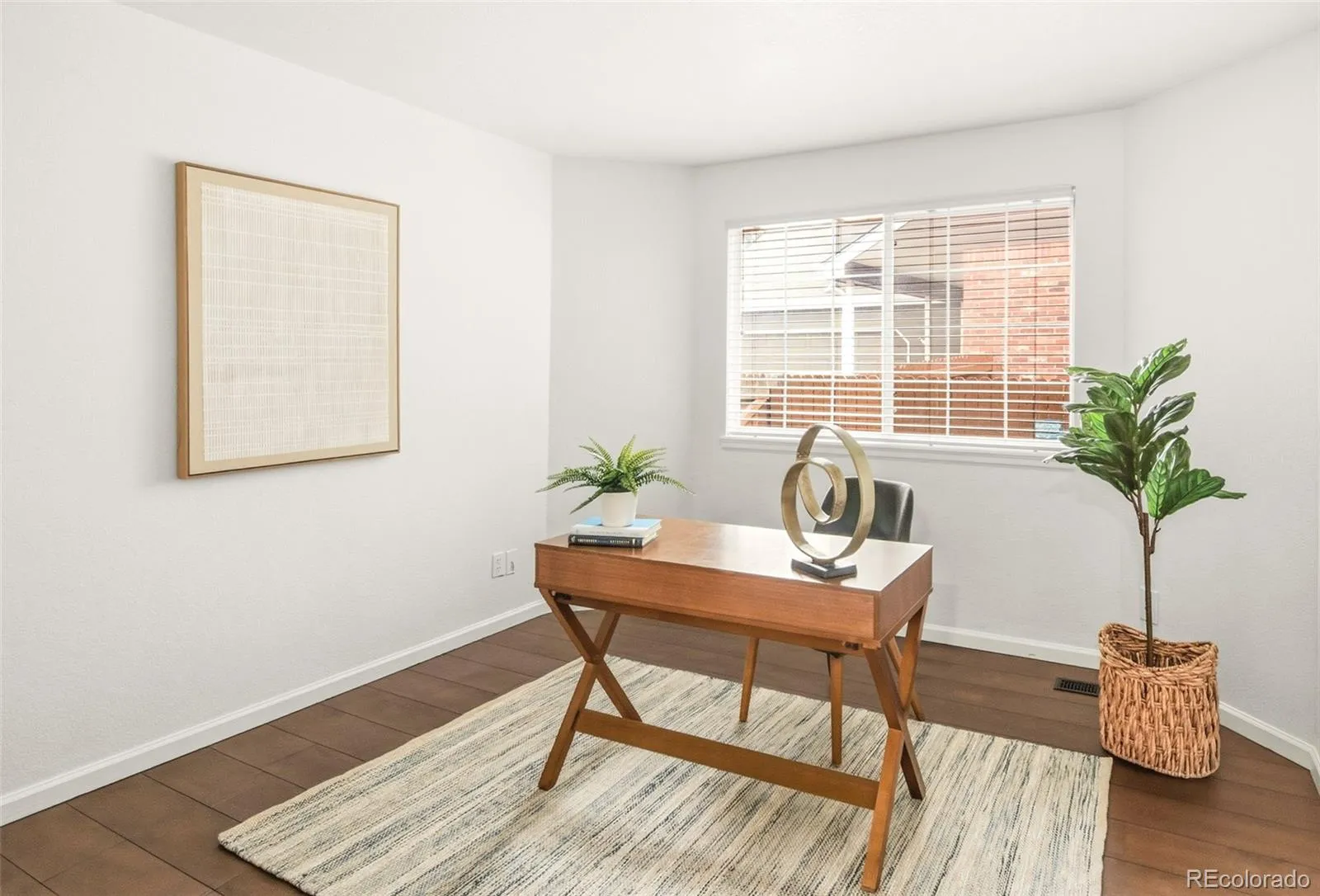 The main level includes a non-conforming bedroom (add a closet) or office, a nearby full bathroom, and a convenient laundry room.