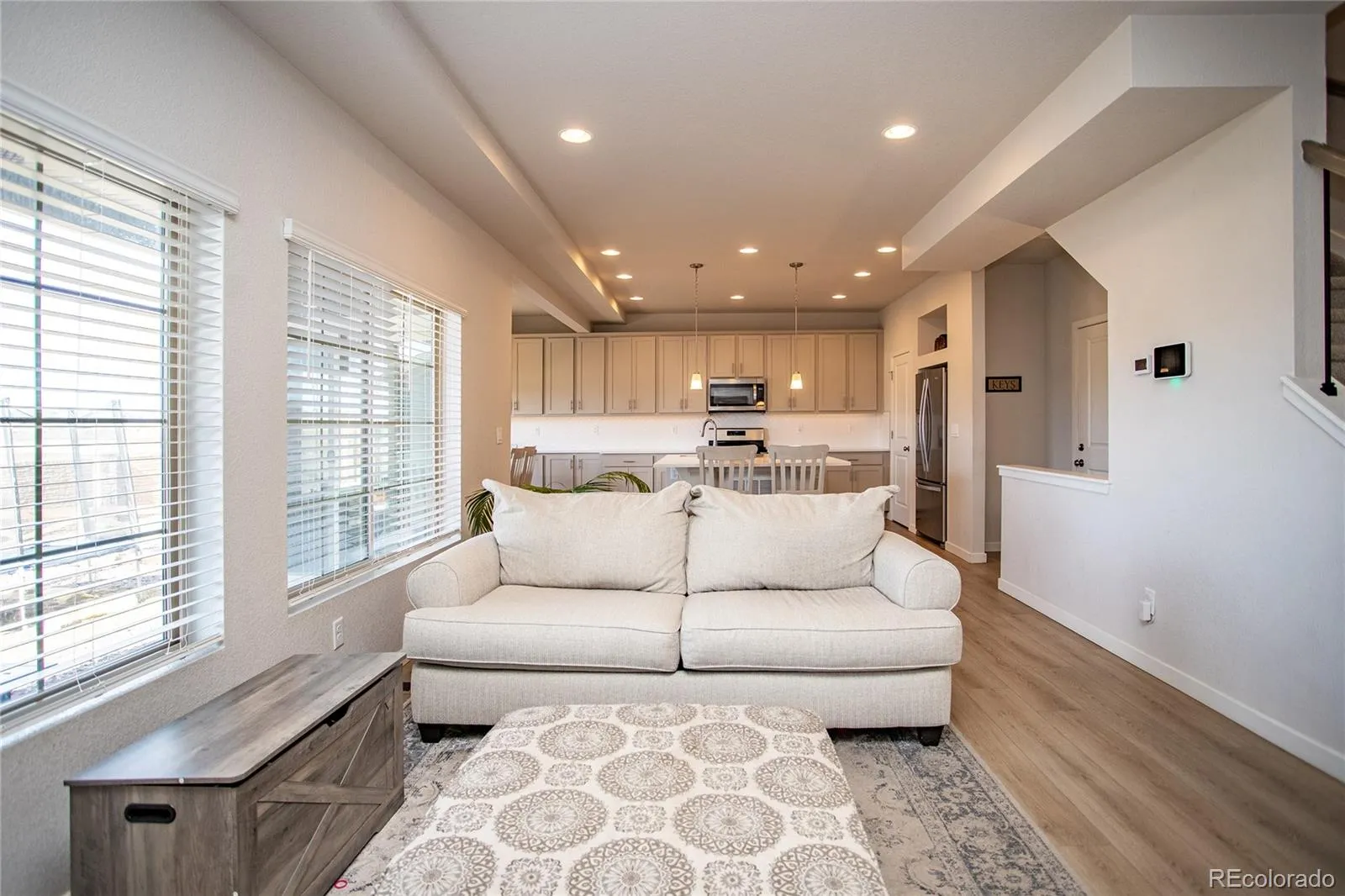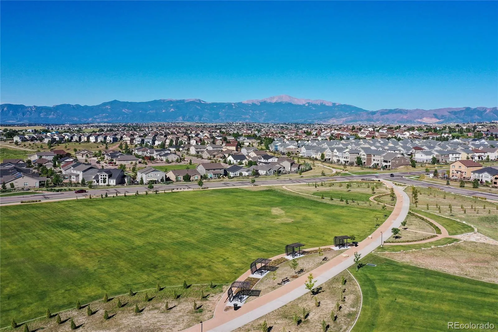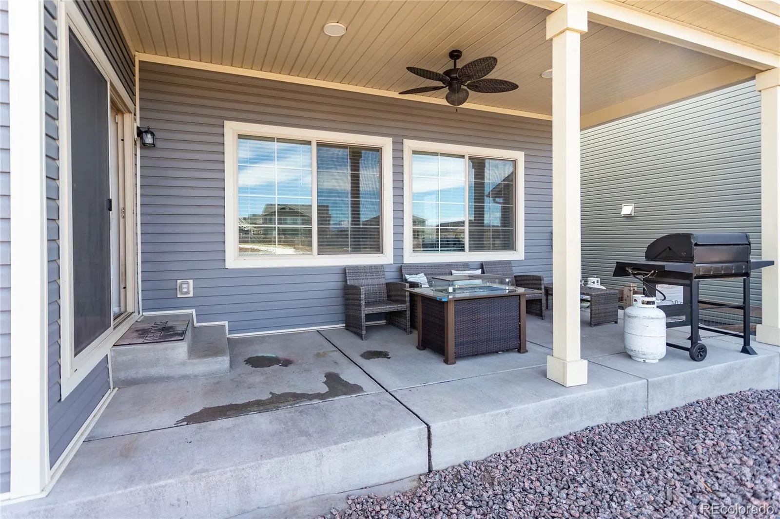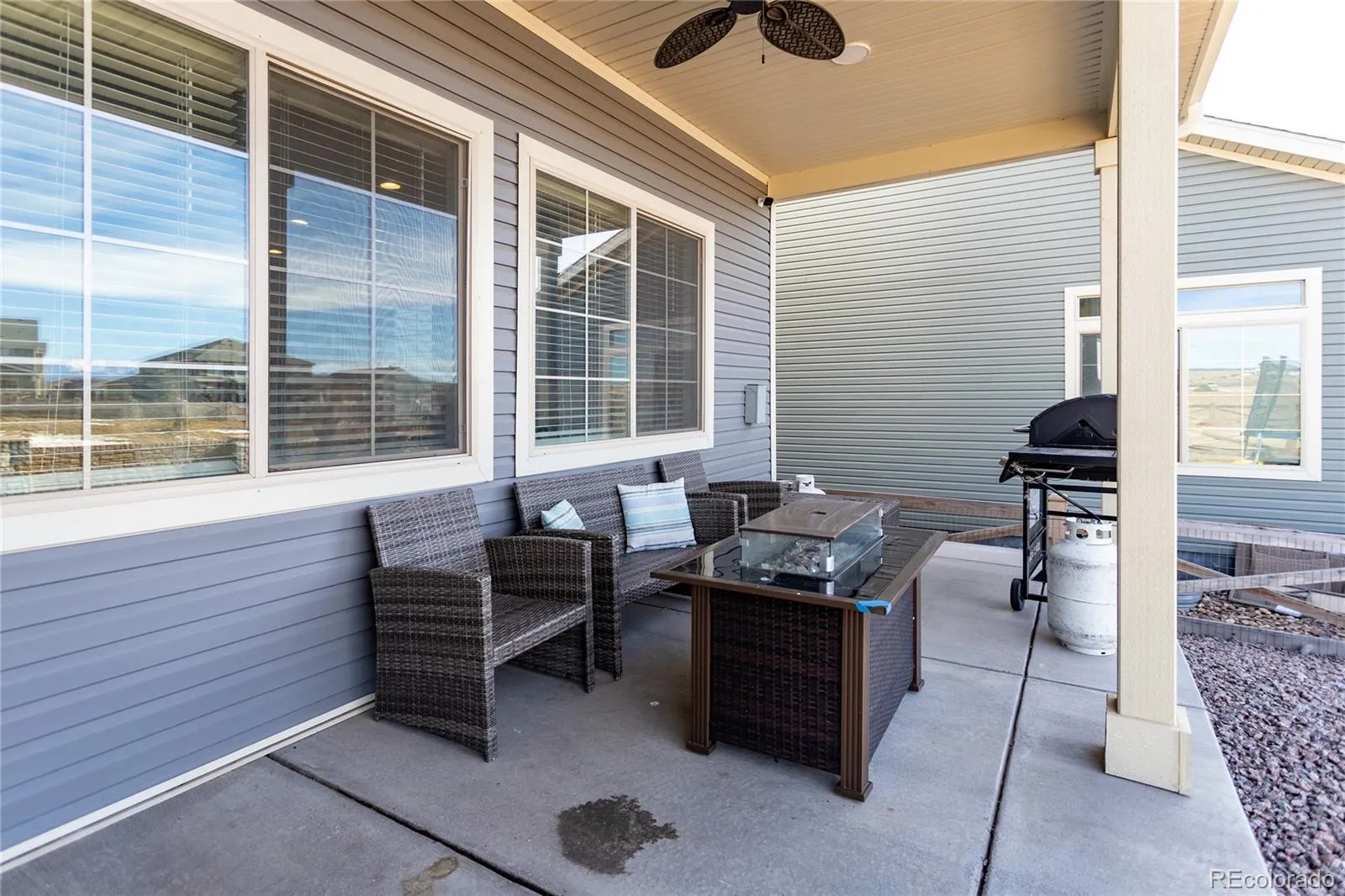 Welcome to this beautifully designed Zenith plan built in 2023 by Oakwood Homes located in the highly desirable Banning Lewis Ranch community. With over 2700 total square feet, 4 bedrooms and 4 bathrooms, this thoughtfully designed home blends modern style in an open concept floor plan while offering everyday functionality. The large covered front porch creates an inviting first impression and the low maintenance exterior and fully landscaped and fenced yard makes this home better and more affordable than waiting for a new build. Inside, the spacious main level is filled with natural light and features a welcoming living area ideal for both everyday living and entertaining, flowing seamlessly into a stylish, well-appointed kitchen with large island, Whirlpool stainless steel appliances, a gas range, quartz countertops, abundant cabinetry, and a generous dining area with exceptional storage and workspace. Luxury vinyl plank flooring runs through the main living spaces, providing both beauty and durability. Upstairs features a large primary bedroom with ensuite and walk in closet along with two additional bedrooms, full hall bath and large laundry room. The fully finished basement adds a second living area, dedicated office area, bedroom and bathroom. Additional highlights include a security system, upgraded carpet pad, bathroom tile surrounds and quartz countertops, sprinkler system, 220V outlet on the spacious back porch for a hot tub, all contributing to the home’s comfort and efficiency. With its smart layout, quality finishes, generous living spaces, and true move-in ready condition, this home delivers the perfect blend of style, functionality, and modern living. Residents enjoy resort-style recreation center with fitness center, dog park, playground and pool. This is your opportunity to own a nearly new home in a vibrant, amenity-rich community offering a beautiful blend of comfort, style and lifestyle. Come see it today!
