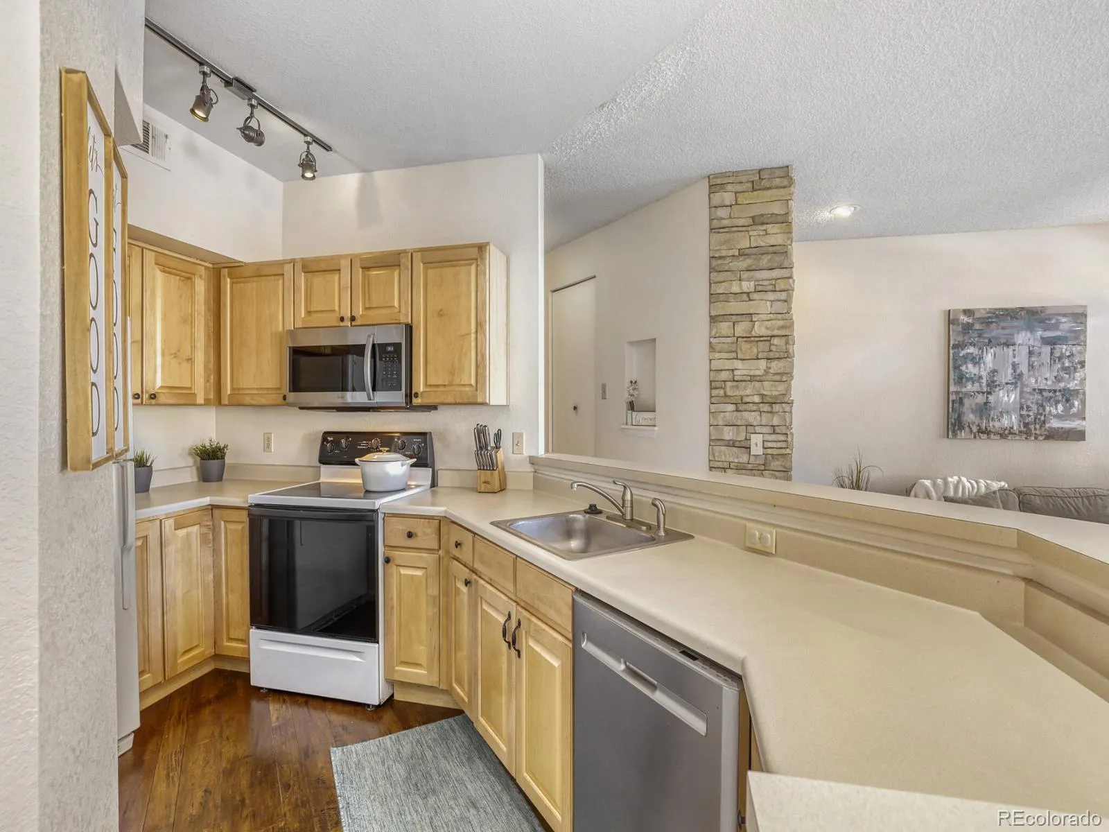 Ideally situated in the heart of the Greenwood Village DTC Business District at I-25 and Orchard Road, this light and bright second-level condo features an open, airy layout with vaulted ceilings. Abundant windows fill the space with natural light, creating a cheerful and welcoming atmosphere. A rare and highly desirable feature is the private, direct interior access to the attached one-car garage via a dedicated staircase. Additional highlights include a gas fireplace for cozy winter evenings, central air conditioning for summer comfort, and a spacious balcony for outdoor enjoyment year round. The primary bedroom offers a large walk-in closet and an expansive en-suite bathroom with a separate shower, oval soaking tub and vanity. The home also includes in-unit laundry with a full-size washer and dryer, an updated kitchen with all appliances included, ample interior storage, and an additional storage room in the garage. Enjoy walking distance to everything the DTC has to offer, including restaurants, office buildings, parks, trails, and the Greenwood Village Athletic Club. Enjoy live shows at Fiddler’s Green or Comedy Works, and outdoor adventure at Cherry Creek State Park with trails, paddleboarding, and more. The Arapahoe light rail and bus station are just two blocks away. Community amenities include a clubhouse with a pool, hot tub, fitness room, and rentable event space. Located in the highly regarded Cherry Creek School District. A truly special home for comfortable living—don’t miss this rare opportunity.