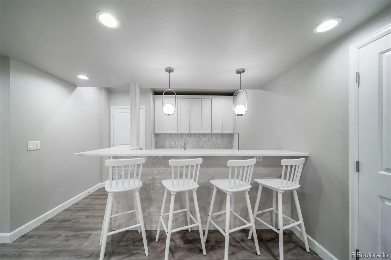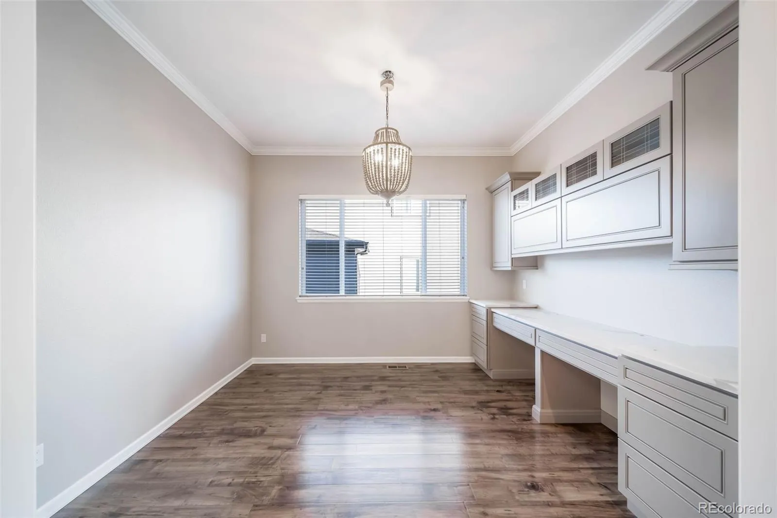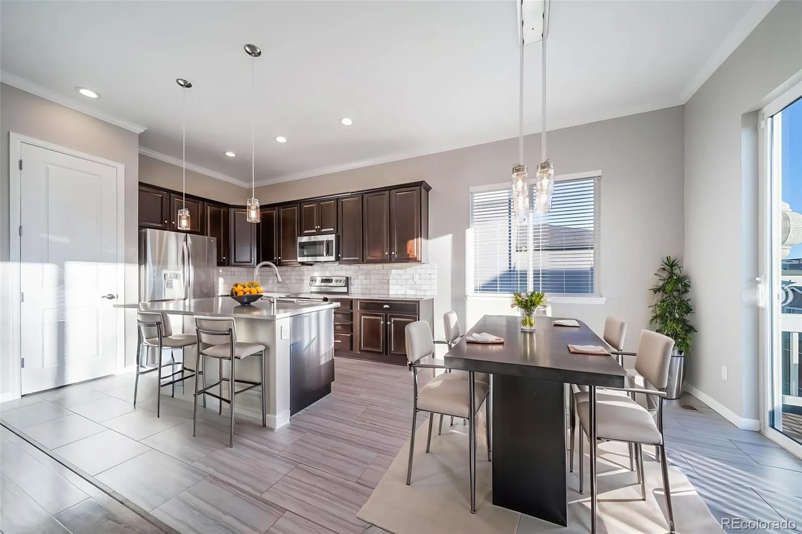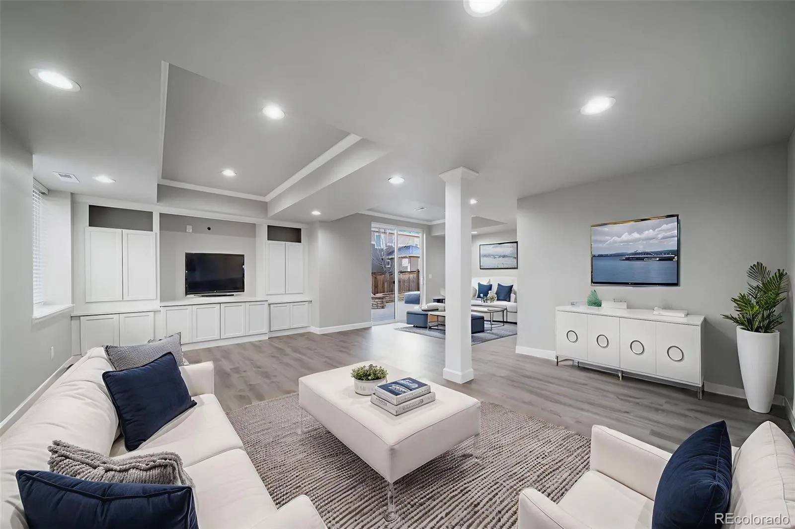 Exceptionally maintained, move-in-ready 4-bedroom, 3-bath ranch home perfectly situated in Salisbury Heights neighborhood, in the heart of Parker, CO, offering the ideal blend of convenience, comfort, and modern living. Enjoy main-level living with a spacious, open-concept layout, a finished walk-out basement designed for entertaining, and a seamless flow to a private backyard retreat. Just minutes from trails, parks, shopping, dining, and top-rated schools, this home combines everyday practicality with the relaxed, small-town charm Parker is known for, making it the perfect place to live, work, and entertain. The open-concept main level features a seamless flow between the kitchen, dining area, and great room, highlighted by laminate floors, fresh interior paint, tall ceilings, and 8-foot doors—creating a bright, modern, and inviting space ideal for everyday living. A custom built-in home office adds functional flexibility for today’s lifestyle. The finished walk-out basement was thoughtfully designed, featuring a custom wet bar with cabinetry that carries seamlessly into the media room. The layout flows effortlessly to the outdoors, where the professionally landscaped backyard features a built-in stone gas fire pit with seating, perfect for Colorado evenings with family and friends, all surrounded by a private, tree-lined setting. The primary suite offers a peaceful retreat with an updated spa-like bathroom and custom walk-in closet with Closet-by-Design built-ins, blending luxury & organization. Outdoor living continues to impress with elevated landscaping and over 25-foot Maple trees providing privacy. Enjoy evenings by the fire pit or take advantage of the 220V hot tub hookup to create your own backyard oasis. Recent upgrades include a new Class 4 impact-resistant roof (2024), new insulated garage door, and smart home features including a Nest thermostat, Rachio sprinkler system, and Ring video doorbell—making this home truly turn-key.