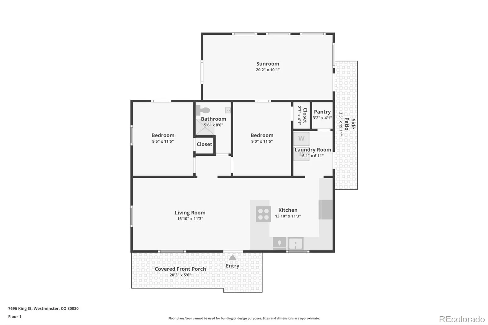 Welcome home to this turnkey updated bungalow, perfectly blending charm, curated finishes, and modern updates in Westminster’s Harris Park. The charming covered porch and smart paint colors greet you from the street with instant curb appeal. Inside, stunning hardwood floors, high ceilings, and abundant natural light complement the open floor plan. The heart of this home is the renovated kitchen featuring granite countertops, a stainless steel appliance package with a gas range and hood, white cabinetry, and a cozy breakfast bar. With two generously sized bedrooms, a fully renovated bathroom, laundry, and a bonus sun room – perfect for a home office or flex room, this home offers ample functional living space. Outside, a huge fenced-in lot with a large yard is ready for your personal touch with ample room for a future patio or outdoor entertaining space. The bonus shed is the ideal spot for all your tools and toys. Additional features of this turnkey ranch include a tankless water heater, all appliances included, and multiple off-street parking spots. Ideally located near shopping, dining, trails, and neighborhood parks, along with easy access to major roadways, 7696 King Street delivers comfort, style, and an ideal location. This move-in-ready home is ready for you—welcome home.