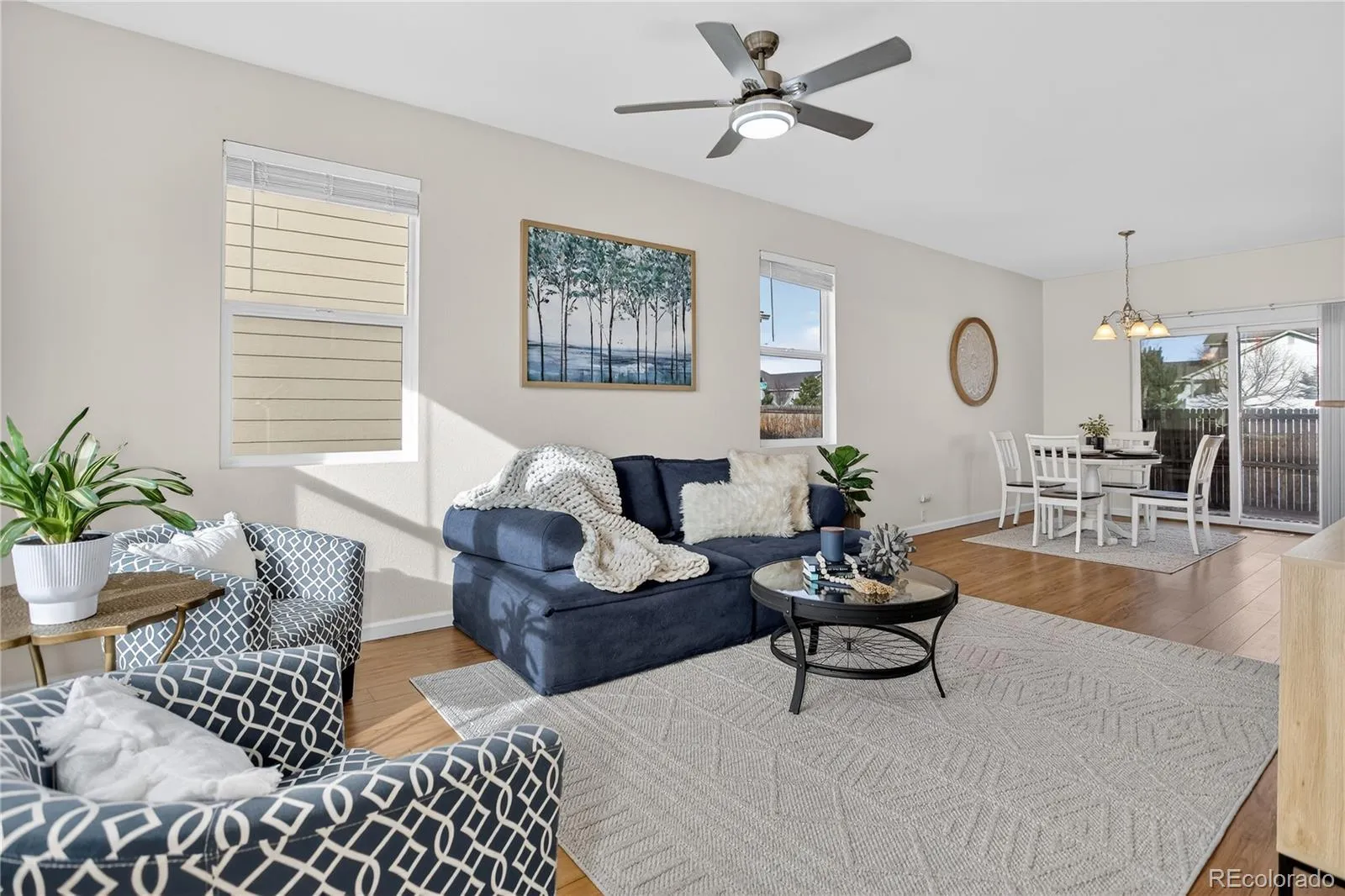 New carpet installed throughout the home in Sept. 25. Enjoy quiet, comfortable living with this beautifully maintained and move-in-ready home. Offering the perfect blend of privacy and convenience. Tucked in a well-kept, family-friendly neighborhood, this home features an entirely xeriscaped yard with established landscaping—ideal for low-maintenance living. Inside, the layout is both spacious & manageable, finished with scratch-resistant LVP flooring on the main level, a new ceiling fan, and fresh blinds throughout. The main level is perfectly designed for entertainment with a large living room that flows through the dining area, past the kitchen, and into the backyard. The living areas are wired with CAT 5e ethernet in every room—perfect for streaming or working from home. The kitchen includes abundant cabinetry, a brand-new garbage disposal, and modern appliances. The primary suite offers a walk-in closet and natural light, along with new blinds for added comfort. Two additional bedrooms are available on the upper level to accommodate guests. A brand-new washing machine add value and functionality. Extra storage is thoughtfully integrated throughout—with shelves under the stairs, in the crawl space, and added racks in the partially painted garage. The private backyard, with no rear neighbors, includes a doggy door and ramp for easy pet access. Located just minutes from parks, shopping, eateries, and local fitness centers with seasonal pool access. Easy routes to Woodmen Rd and Hwy 24 make commuting or weekend adventures a breeze. A perfect retreat for those seeking cozy, low-maintenance living just outside the city.
