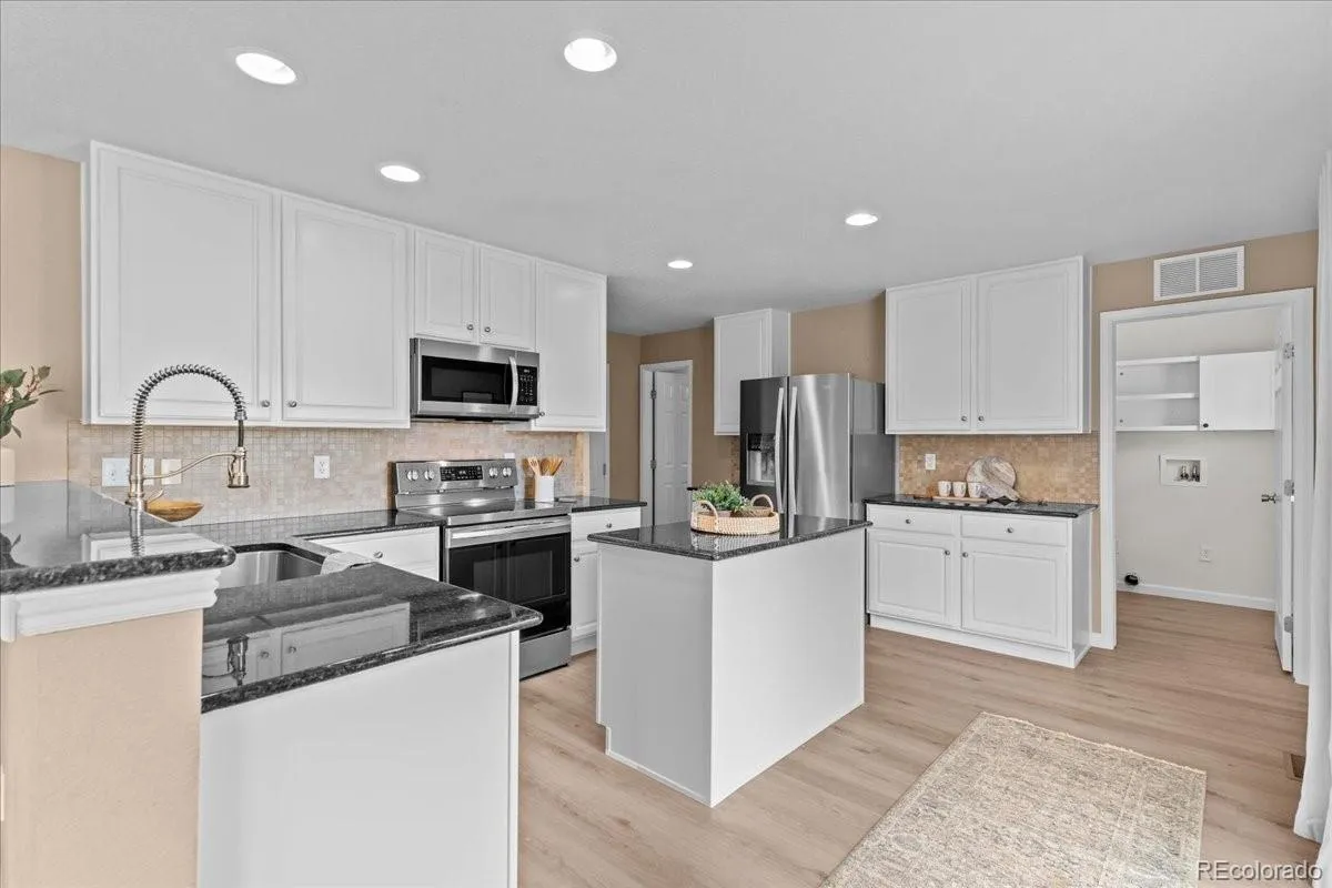 STUNNING in The Meadows-1798 Hogan is the updated, move-in ready home you’ve been awaiting—with the added bonus of a coveted cul-de-sac location. Offering over 3,000 sq ft of smartly designed space, 1798 Hogan showcases quality improvements throughout, including new luxury vinyl plank flooring, freshly painted kitchen and bathroom cabinetry, and modern lighting that creates a clean, modern feel from room to room. The brightly-designed kitchen features stainless steel appliances, granite countertops, a walk-in pantry, new microwave, and direct access to a large deck—perfect for outdoor dining and entertaining. Upstairs, a generous loft offers versatility for a home office, study area, hobby space and more. The primary suite provides a peaceful escape with a spa-inspired bath and large walk-in closet. Two additional bedrooms and a full bath complete the upper level. Its sought-after finished basement adds substantial living space ideal for movie nights, gatherings, or guests, along with abundant storage. The backyard features a new fence and Trex deck with lighting– an inviting space to relax or host. Conveniently located near neighborhood schools, parks, pools, trails, shopping, dining, downtown Castle Rock, and Philip S. Miller Park, 1798 Hogan offers the best of comfort, convenience and lifestyle in The Meadows.