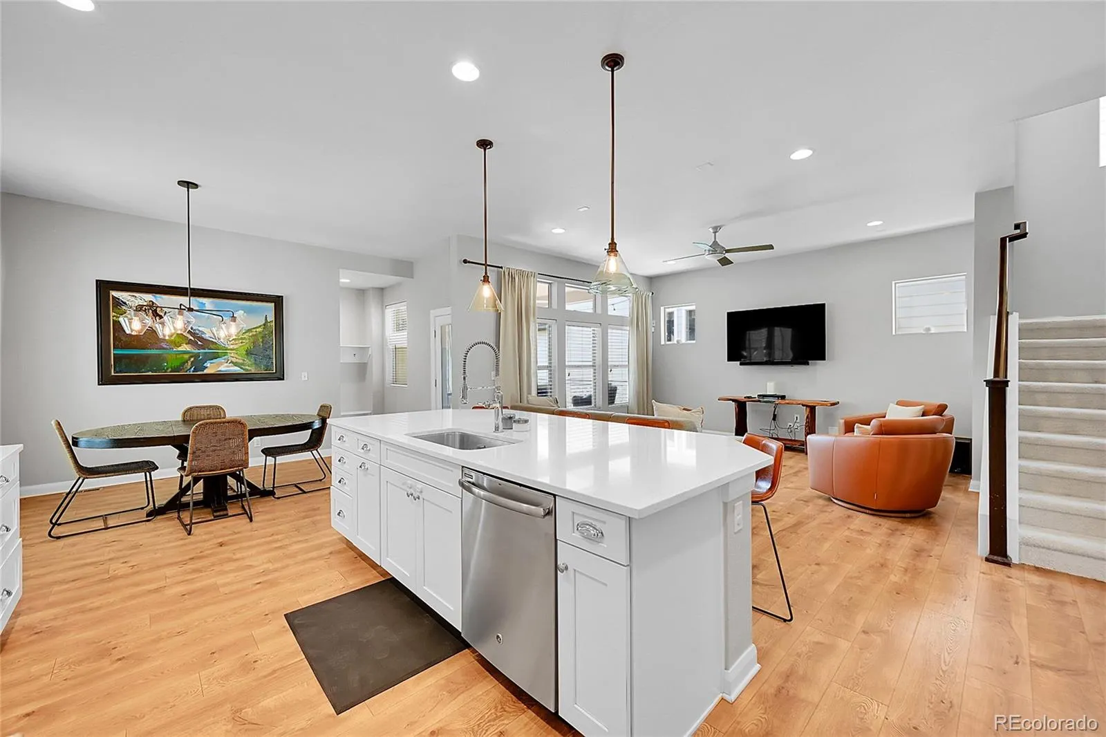 Welcome to this beautifully designed single-family home in Midtown. This spacious residence boasts 3 bedrooms, a main floor office, 2 full bathroom, and 1 half bathroom, all within a generous 2,029 square feet above grade. The full basement is roughed in for finishing and ready for your touch. A two-car garage and perfect private outdoor space enhance the property’s appeal, making it perfect for families or anyone seeking a comfortable and stylish home in a vibrant community. Upon entering, you will be greeted by a bright living room featuring light wood-style flooring, recessed lighting, and a ceiling fan, creating an inviting atmosphere. The well-appointed kitchen showcases stainless steel appliances, a kitchen island, and stone countertops, making it a chef’s dream. The open floor plan seamlessly connects the dining area, adorned with a chandelier. This property is ideally located, offering easy access to local amenities and outdoor activities. Enjoy the convenience of nearby parks, shopping, and dining options within the vibrant Denver area.