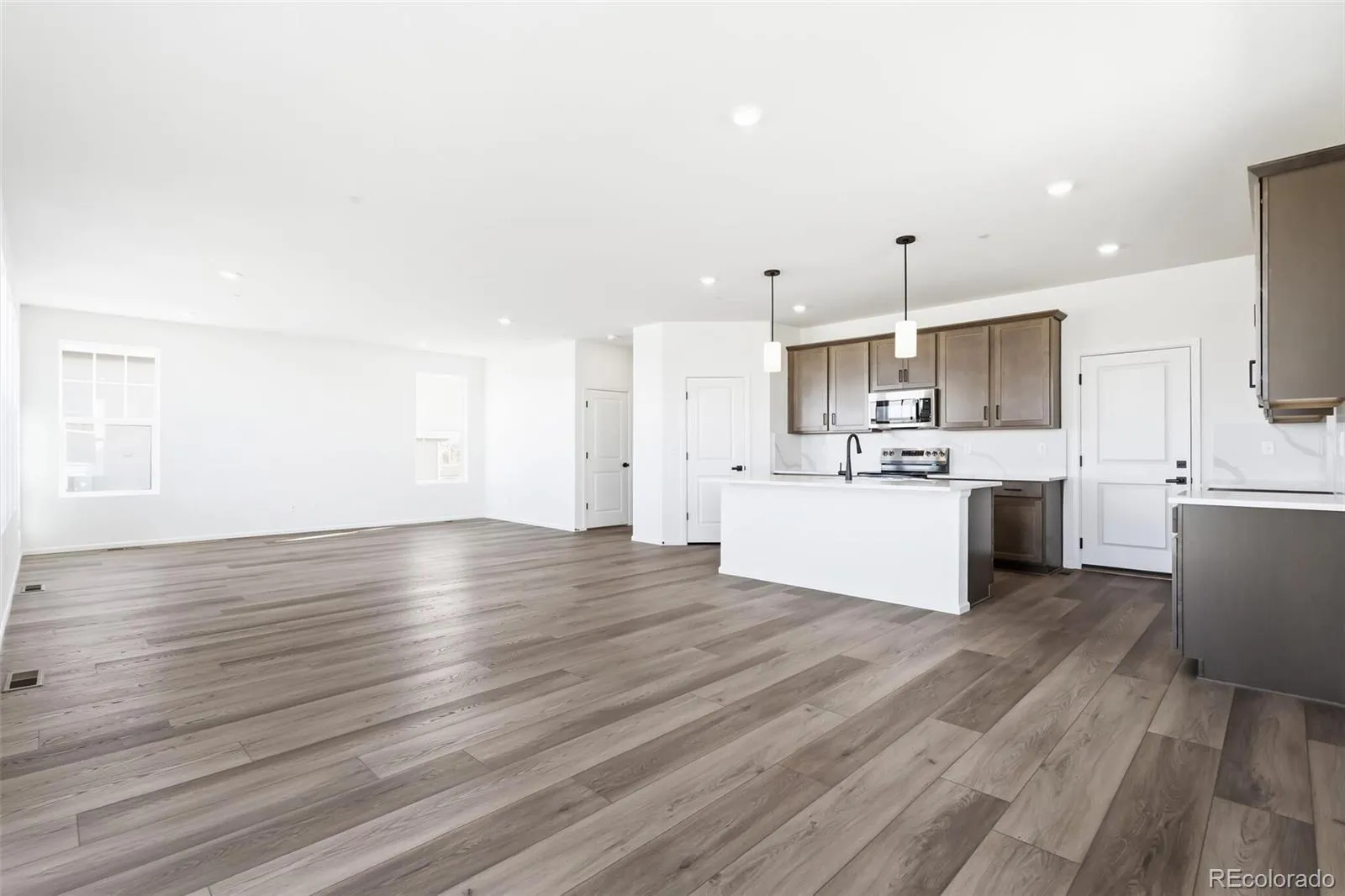 Welcome to the popular 2193 plan in the Nest community of Erie, thoughtfully designed for both everyday living and effortless entertaining. This inviting home offers three spacious bedrooms, a versatile loft, and an open-concept main level filled with abundant natural light from expansive windows throughout. The main floor features a seamless flow between the kitchen, dining, and living areas, creating a bright and welcoming space. Designer upgrades include a timeless, neutral palette with Latte-stained cabinetry, Calacatta quartz counter tops, and wide-plank luxury vinyl plank flooring throughout the first floor. Upstairs, the private primary suite is a true retreat, complete with two walk-in closets and ample space to unwind. The additional bedrooms and loft provide flexibility for a home office, media room, or play space. Team Lassen represents the seller/builder as a Transaction Broker.