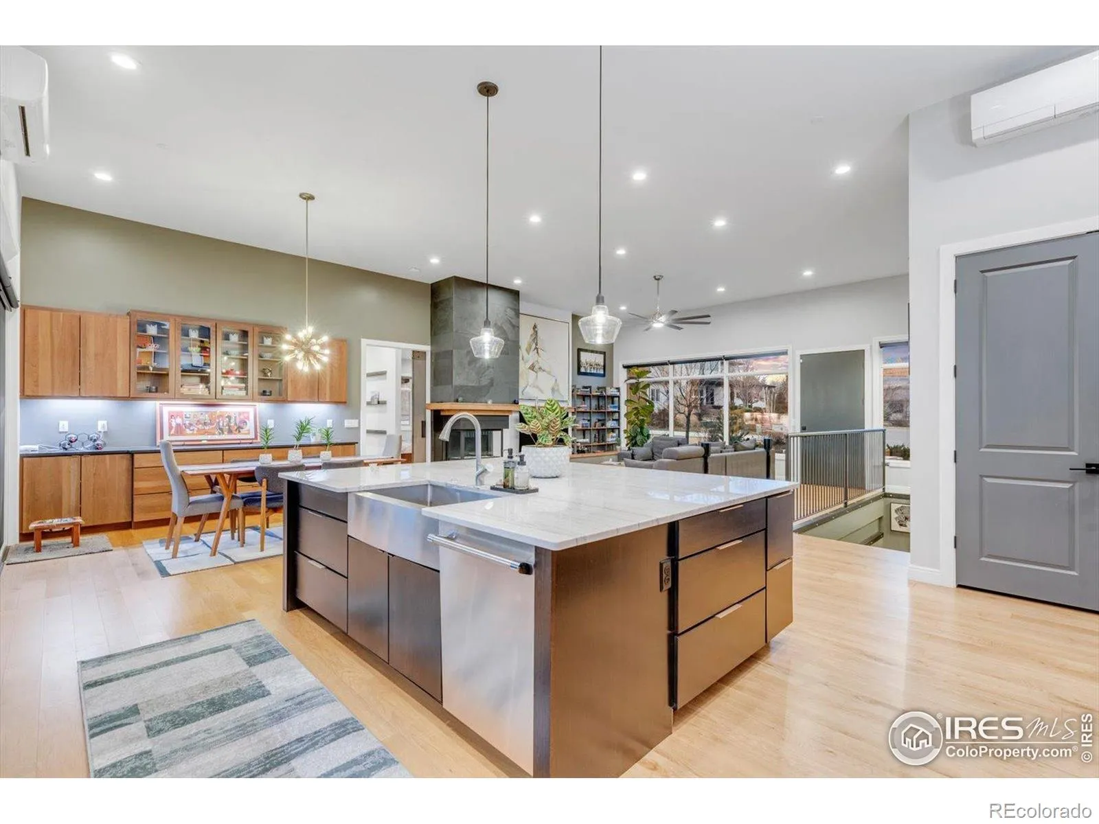 At the end of a quiet Niwot cul-de-sac, 8568 Foxhaven Drive showcases contemporary design with modern finishes, natural surroundings, and exceptional energy efficiency. This 2017 custom-built ranch offers 5,467 square feet on a 0.40-acre lot, creating a “right-sized” layout for everyday comfort and effortless entertaining.The main level features twelve-foot ceilings, natural wood and stone, industrial steel accents, and four indoor-outdoor living areas. An open, light-filled floor plan is enhanced by multi-zoned radiant floor heat, energy-efficient heating and cooling splits, automatic solar roller blinds, and UV-tinted Pella energy-rated windows.The gourmet kitchen includes Thermador and SubZero appliances, a striking single-slab Brazilian quartz island, walk-in pantry, custom steel range vent, walnut-finished cabinetry, and glass-front built-ins.The primary suite offers a spa-like ensuite with dual-head shower, oversized tub, walk-in closet, and private deck with a saline hot tub. Also on the main level are two additional bedrooms, two full baths, and a built-in work or studio space. A single step leads to the oversized, finished three-car garage with dual EV chargers and new doors.The lower level features a spacious recreation room with eight-foot sliding doors opening to a fenced, professionally landscaped yard bordering open meadow. With a kitchenette, theater room, office or play area, climate-controlled storage, and a private guest suite with dual-head steam shower, hosting is seamless.A west-facing driveway benefits from afternoon sun for easier winter maintenance. Just moments from downtown Niwot, the market, restaurants, and trails, 8568 Foxhaven is move-in ready.