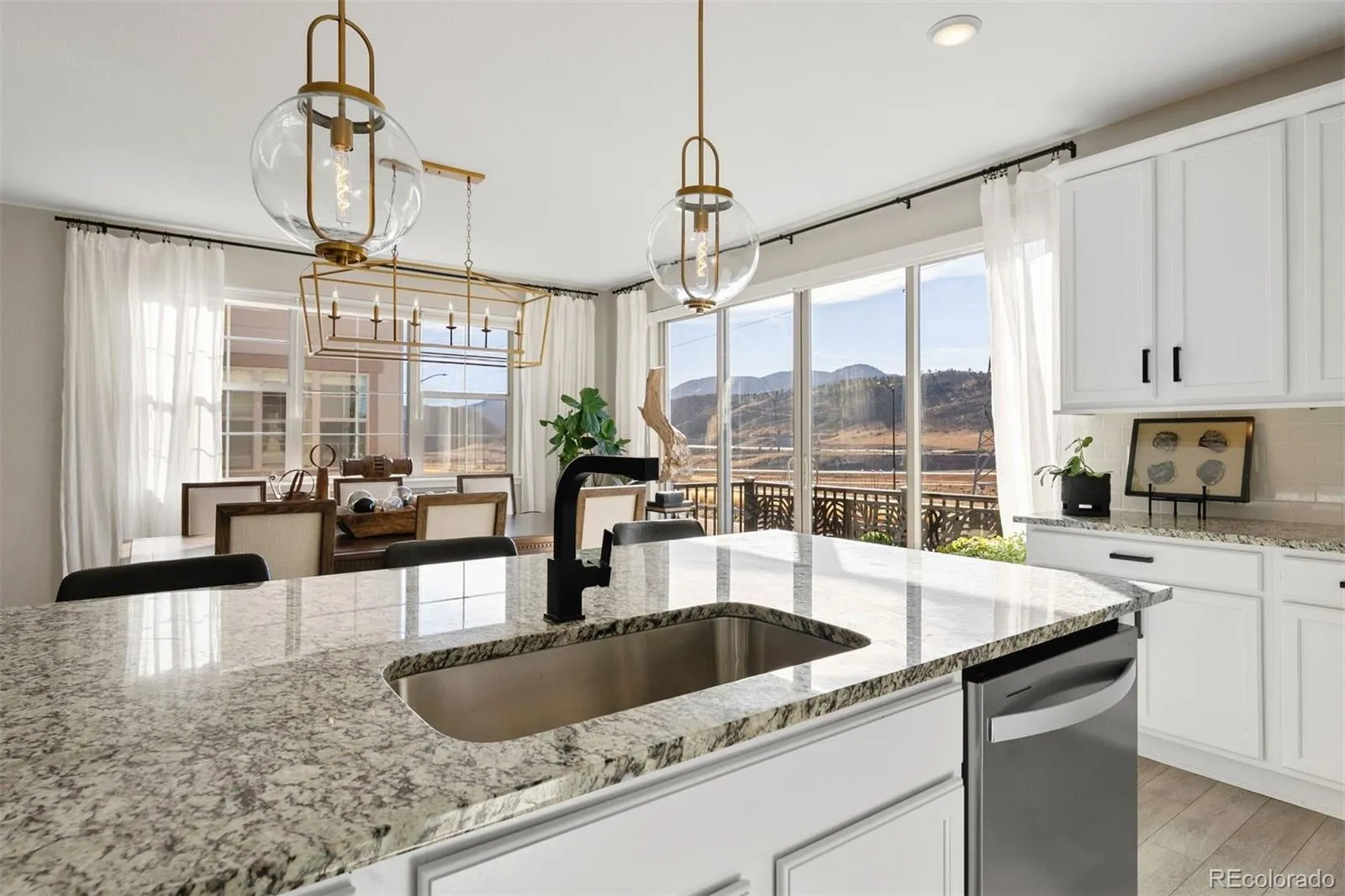 Set against the dramatic Colorado foothills, 2179 South Poppy Street is a refined 4-bedroom, 4-bath residence in the coveted Solterra community that elevates everyday living. Thoughtfully curated finishes and a neutral, organic palette create a calm, gallery-like atmosphere while expansive glass frames the mountain peaks as living artwork. Step inside to a voluminous living area where soaring ceilings and clean architectural lines foster effortless sophistication. The chef-inspired kitchen anchors the main level with a generous island, custom cabinetry, and a walk-in pantry, flowing seamlessly into the dining and great room. From the kitchen, step out to the deck for sunset gatherings with unobstructed views of the Denver foothills and Front Range. The upper level is a private sanctuary. The primary suite is positioned to capture panoramic westward vistas and features a spa-like ensuite bath and a large walk-in closet. Three additional well-appointed bedrooms provide flexible space for family, guests, or a home office. The walk-out lower level offers a bright, adaptable canvas for recreation or media spaces and provides direct access to the manicured grounds. A three-car tandem garage accommodates vehicles and all the gear needed for Colorado adventures. Moments from Red Rocks and an extensive network of private trails, yet within easy reach of Denver’s urban core, this home is a meticulously crafted environment for buyers who value quality finishes, thoughtful design, and spectacular, unobstructed mountain views.