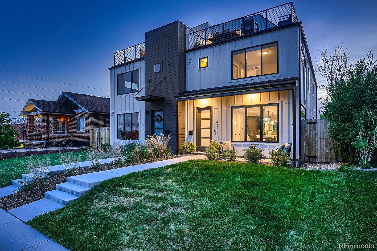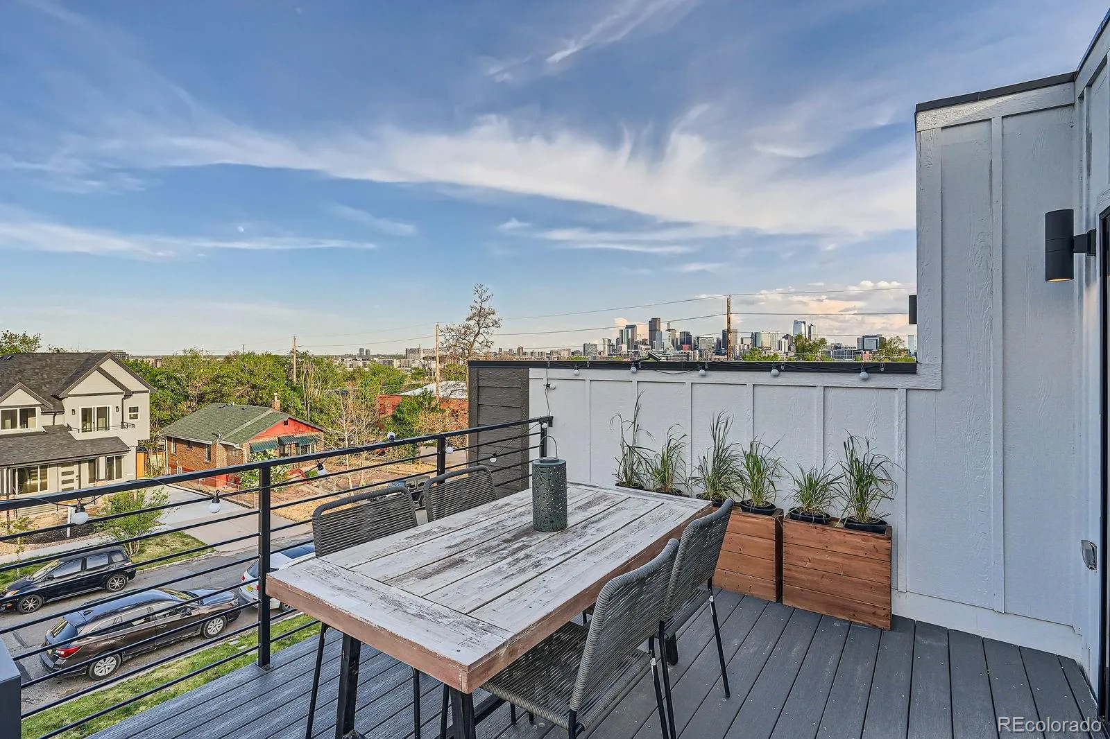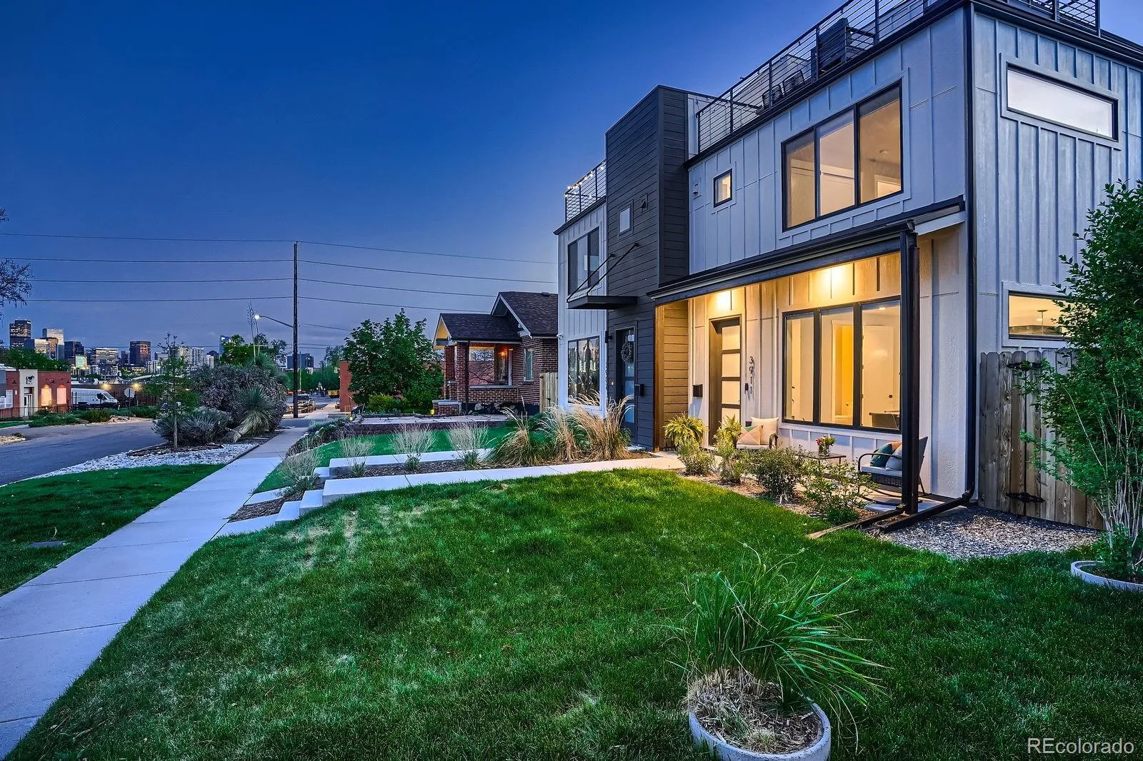 MODERN 3-STORY WITH MAGNIFICENT DENVER CITY VIEWS! Reach out and touch the City from your 3rd Floor Rooftop Deck in Sunnyside. Brand new, Open Concept Duplex is thoughtfully designed – Rooftop Deck, Gourmet Kitchen, Large Master Suite, & Hardwood Floors throughout. This home includes many High-end Finishes – Quartz Countertops, Designer Tiles, Stainless Appliances & Gorgeous Light Fixtures. Impress guests w/ the 13’ Kitchen Island & Gas Fireplace. Nearly Wall-to-Wall Sliding Doors open to a private backyard perfect for entertaining. This home was designed with both beauty and functionality in mind. Retreat to the Master Suite which includes Massive Walk-in Closet, Double Vanity & Oversized Shower. Two additional Bedrooms, Guest Bath & Laundry Room are just down the hall on the 2nd Floor. The natural light throughout this home is brilliant. Generous amount of storage throughout the entire home and Oversized Two Car Garage w/storage loft. Situated in Sunnyside, the home benefits from a community known for its blend of historic charm and modern development, with easy access to local eateries, parks, and downtown Denver.