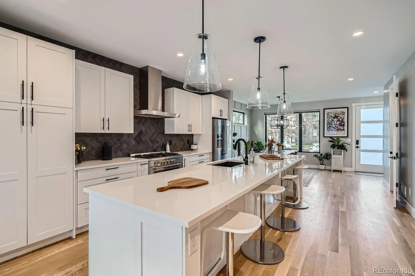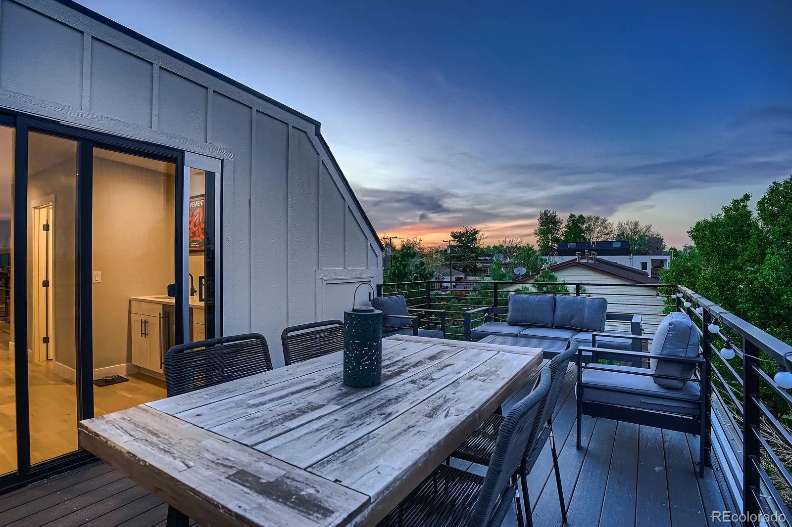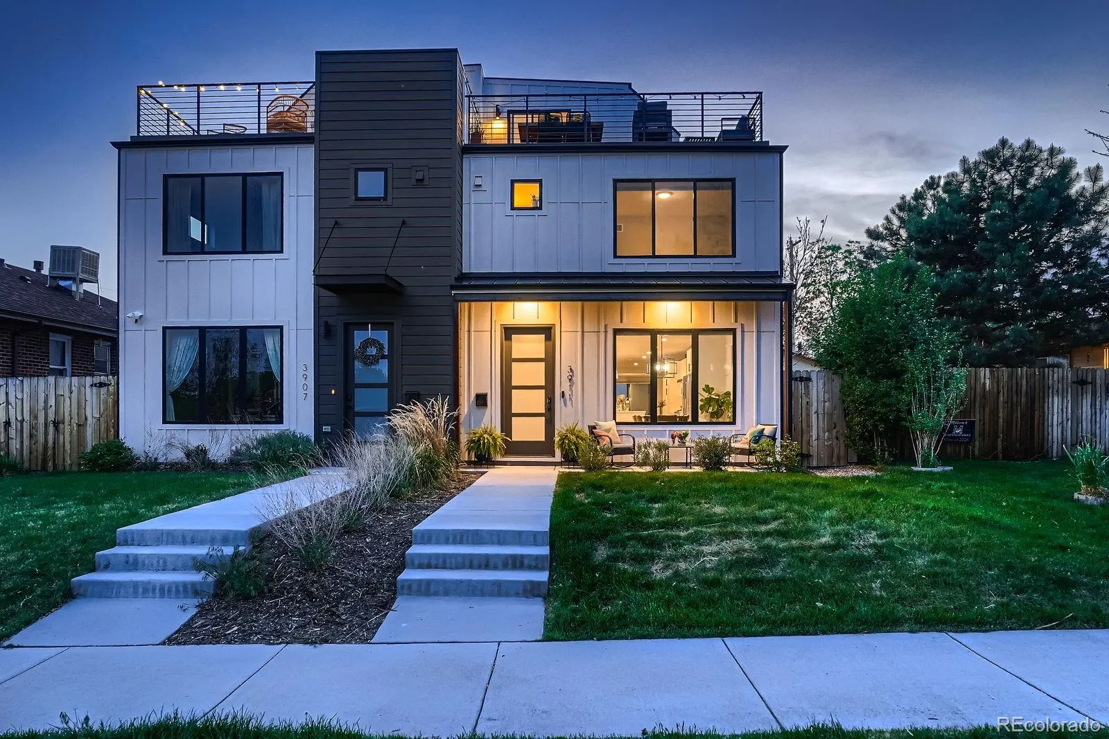 MODERN 3-STORY WITH MAGNIFICENT DENVER CITY VIEWS! Reach out and touch the City from your 3rd Floor Rooftop Deck in Sunnyside. Brand new, Open Concept Duplex is thoughtfully designed – Rooftop Deck, Gourmet Kitchen, Large Master Suite, & Hardwood Floors throughout. This home includes many High-end Finishes – Quartz Countertops, Designer Tiles, Stainless Appliances & Gorgeous Light Fixtures. Impress guests w/ the 13’ Kitchen Island & Gas Fireplace. Nearly Wall-to-Wall Sliding Doors open to a private backyard perfect for entertaining. This home was designed with both beauty and functionality in mind. Retreat to the Master Suite which includes Massive Walk-in Closet, Double Vanity & Oversized Shower. Two additional Bedrooms, Guest Bath & Laundry Room are just down the hall on the 2nd Floor. The natural light throughout this home is brilliant. Generous amount of storage throughout the entire home and Oversized Two Car Garage w/storage loft. Situated in Sunnyside, the home benefits from a community known for its blend of historic charm and modern development, with easy access to local eateries, parks, and downtown Denver.