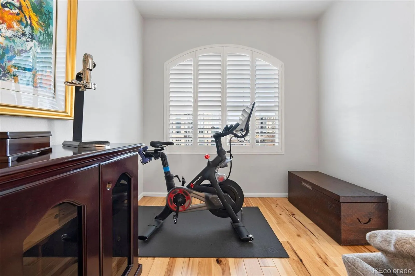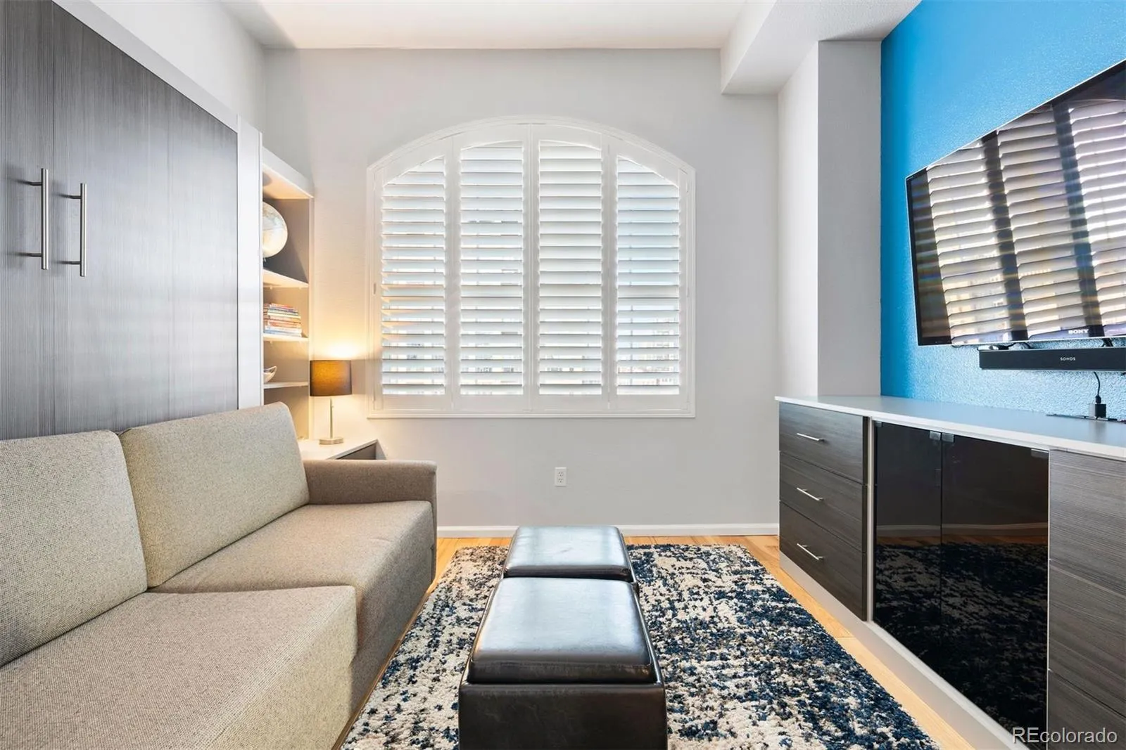Flooded with natural light, this beautifully appointed penthouse residence offers an exceptional blend of comfort, function, and timeless style. The open-concept living area is anchored by a stately gas fireplace, while oversized windows with classic shutters frame sweeping city and mountain views to the East, South and West. Hardwood flooring throughout adds warmth, continuity, and an understated elegance.
