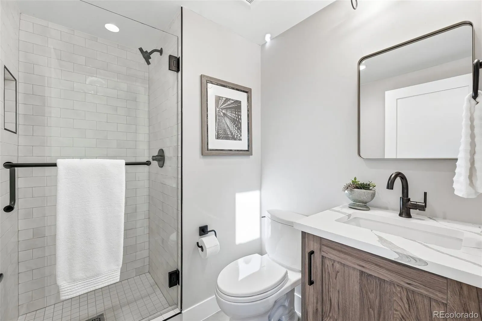 Modern Duplex with Stunning Mountain Views in vibrant Platt Park/Rosedale neighborhood. Meticulously crafted modern duplex, designed with both style and sustainability in mind. Just steps away from the heart of South Broadway and Pearl Street, known for its eclectic mix of boutiques, restaurants, and parks. A perfect blend of cutting-edge design and eco-conscious features that prioritize energy efficiency and sustainability. Main floor features a bright and airy open concept, highlighted by soaring 9-foot ceilings and sliding glass doors that flood the space with natural light. Gourmet kitchen, with a large island, is a chef’s dream, equipped with quartz counters, high-end tile, pendant lighting, and stainless steel appliances. Living room boasts an open concept floorplan with seamless transition to the private back patio extending your living space outdoors. Dining room is spacious and offers the ideal entertaining floor plan. Every inch of this home is thoughtfully designed, with custom stained hardwood floors, sophisticated tile selections, and modern lighting that add character and warmth. Primary suite is a luxurious retreat, featuring an oversized walk-in closet, double vanity, and a spacious shower and freestanding soaker tub. Two additional bedrooms and a full bath, along with a conveniently located walk-in laundry room, complete the second floor. Third floor is the perfect space to unwind, featuring a sitting room, wet bar, 4th Bedroom or office, a full bath, and an incredible rooftop deck with views of the mountains. The versatile bonus room can be tailored to your needs—whether you want a home office, gym, or private place to watch TV or read a book. There is no shortage of space for all your belongings with a two-car garage with 8′ doors for easy access for you snowboards/skis or Thule racks. Prime location with a mountain view.