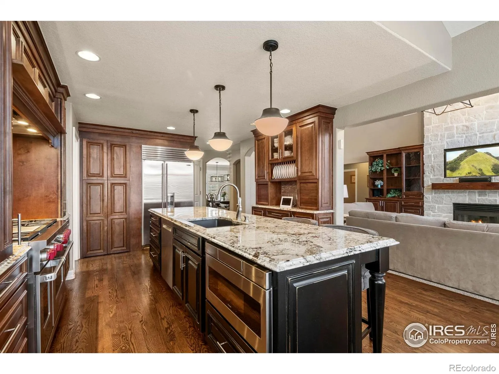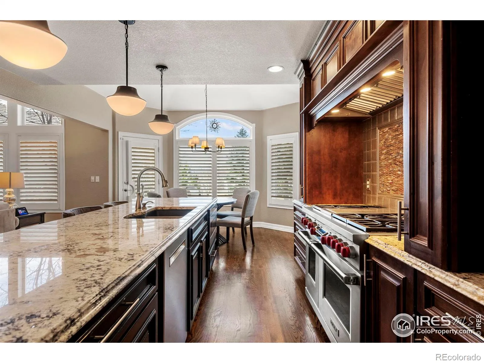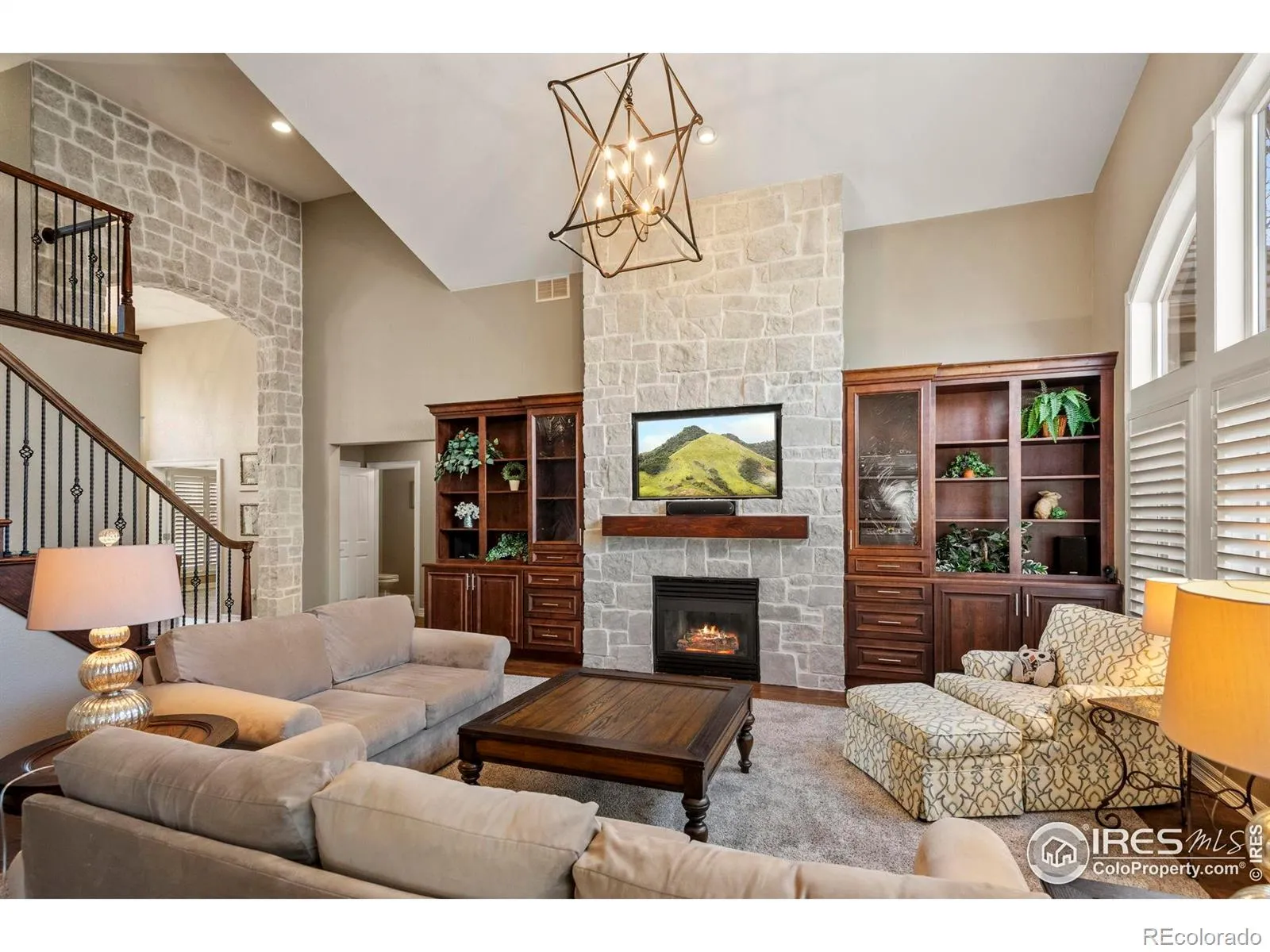Discover luxury living in this stunning two-story home with main floor primary bedroom, nestled in the desirable Ranch Reserve neighborhood. This spacious residence offers 5 bedrooms and 4 baths on a quiet cul-de-sac. Upon arrival, you are greeted by great curb appeal with new exterior paint & fence stain. A vaulted entry welcomes you into a beautifully designed layout with an abundance of natural light through the cased windows with shutters. The chef’s kitchen boasts high-end appliances, a large island, and a sunlit breakfast nook that opens to the great room with stone accents, a gas fireplace, and custom built-ins. You’ll also find a dedicated home office and an elegant formal dining room. The main floor primary suite is a true oasis with a private ensuite 5-piece bathroom and two walk-in closets. Upstairs offers a loft with private balcony, two bedrooms, and a full bath-perfect for kids or guests. The finished basement expands the living space with two additional bedrooms, a full bath, a wet bar, and multiple entertaining areas for movie nights or gatherings. The 3-car garage includes built-in storage and a newer level 2 EV charger. Enjoy outdoor living in the fenced backyard with a built-in gas grill, stamped concrete patio, hot tub, and easy access to walking trails and open green space. Additional features included beautifully updated stone-washing, updated light fixtures, Simplisafe security system, and walk-in closets with custom shelving. Opportunity to join The Ranch Country Club with dining, swimming, tennis, and golf. Located in the Adams 12 Five Star School District and close to parks, shopping, and commuter routes-this home offers the perfect blend of comfort, style, and convenience.