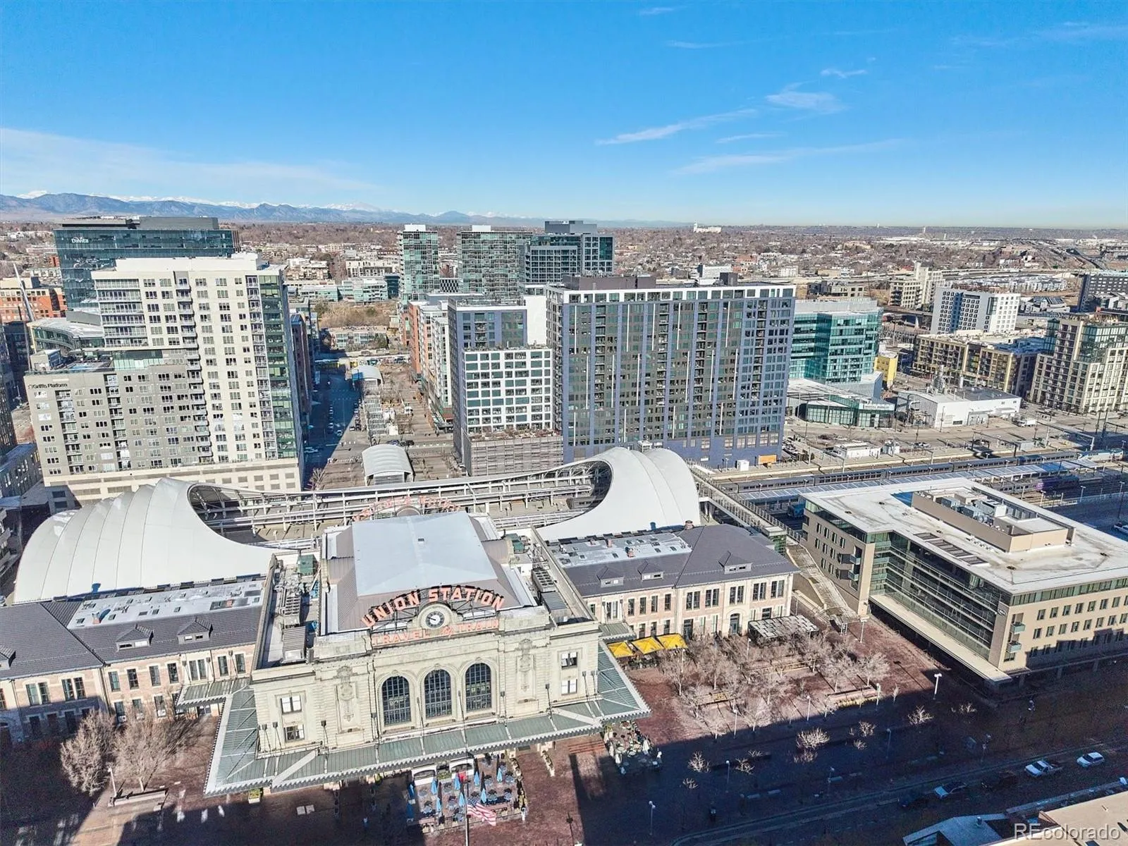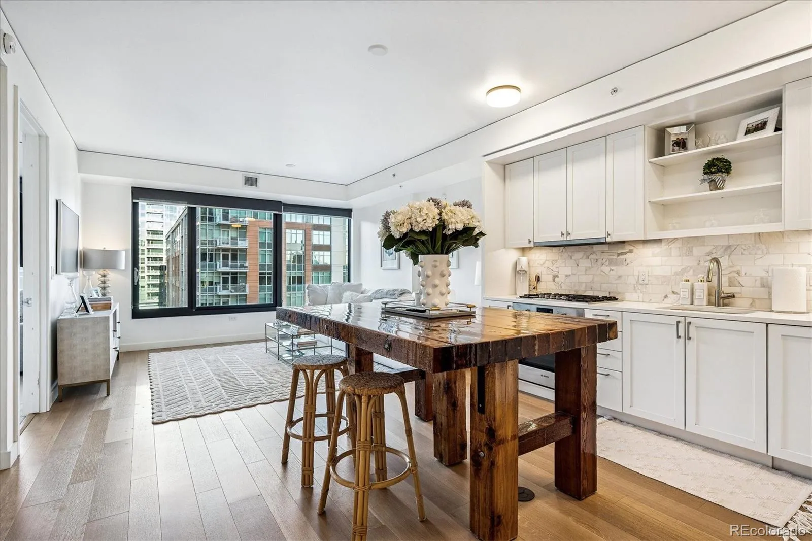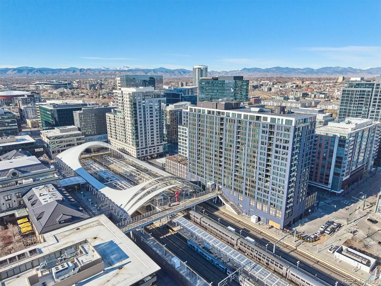 Beautiful light and bright pied a terre at The Coloradan providing a unique lifestyle similar to that of a boutique hotel. This spacious one bedroom unit has a large open floor plan with modern yet timeless and warm design. Bosch stainless appliances, a gas cooktop, white cabinetry, quartz countertops, a custom island, and a marble backsplash are all present in a chef style kitchen allowing for an elevated lifestyle perfect for entertaining in an incredible city location. Large windows allow loads of natural light and wonderful city and mountain views. The primary suite is a luxurious retreat with a Carrara marble five-piece bath, spa-style wet room, deep soaking tub, and spacious walk through closet. A pocket door for a sink and toilet doubles as an entertaining bath off the front entry and mudroom area. In addition, a dedicated laundry and mechanical room allows for additional storage. The Coloradan location has easy access to Union Station Plaza , Riverfront Park, Whole Foods, restaurants, cafes and shopping. Enjoy a lovely garden area, rooftop pool and hot tub with sweeping views, outdoor fire pits, a state-of-the-art fitness center, owner’s lounge, a quiet library, community events and building security. A wonderful for a primary or secondary residence. A pleasure to show.