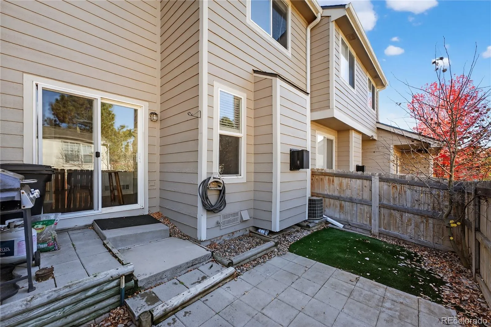 Charming, turn-key, 2-story, 2-bedroom townhome in the quiet Quail Run community. Enjoy a private fenced patio and yard that backs to open space and a peaceful greenbelt, with Highland Hollows Park just a block away. An inviting front porch welcomes you into a bright, open layout featuring new durable laminate wood floors. The cozy living room with a fireplace flows seamlessly into the dining area and spacious kitchen, perfect for entertaining or relaxing. The dining area opens to the private backyard with a new patio and artificial grass—ideal for outdoor dining or unwinding. A convenient gate off the patio provides direct access to greenbelt trails throughout the community. The kitchen offers ample countertop space, a pantry, and double ovens. The main level also includes laundry, a half bath, and plenty of storage. Upstairs, two generous bedrooms with new carpeting await, including a primary suite with a walk-in closet. A designated parking spot adds everyday convenience. Fantastic amenities including a pool and tennis courts, and the HOA covers water, trash, exterior maintenance (roof, siding, and gutters), and lawn care. Conveniently located near major highways, Buckley AFB, DIA, and a variety of shops and restaurants, this move-in-ready gem is waiting for you to call it home.