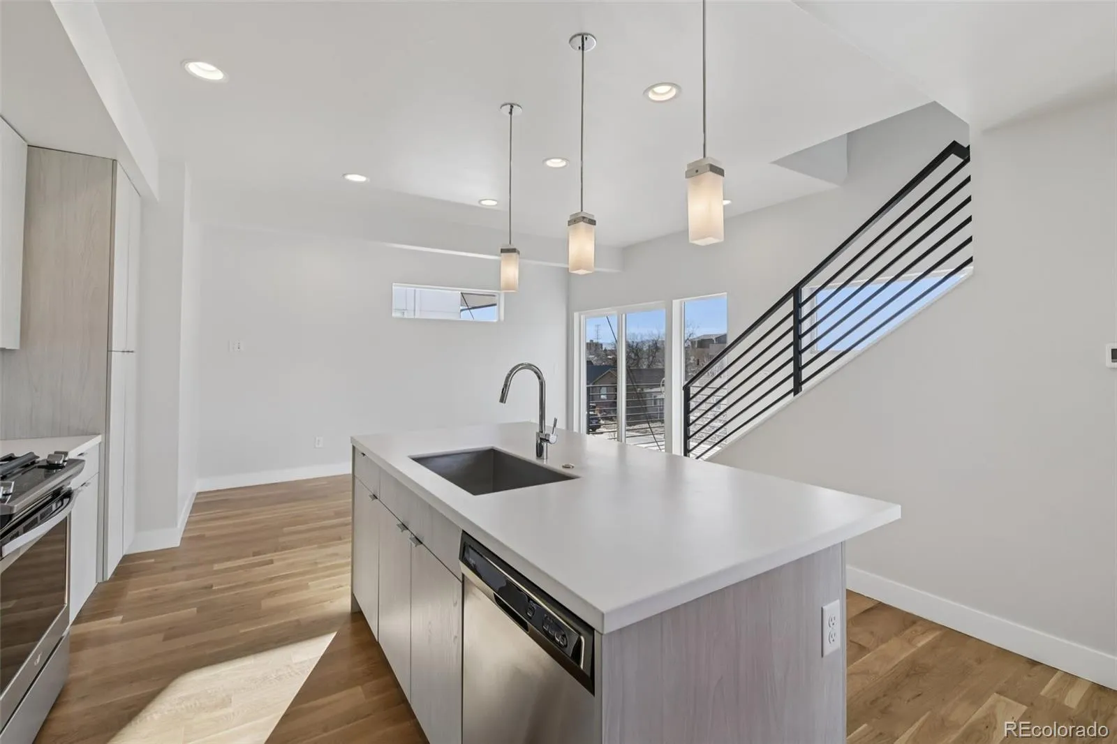 Live in the heart of the vibrant Sloan’s Lake area with stunning mountain views in this contemporary walkup townhome featuring a sought-after rooftop patio and low-maintenance living. This turnkey residence features over 1,300+ sqft of functional living and entertaining space with all-new interior paint (Nov 2025), refinished hardwood floors (Nov 2025), modern finishes, 10’ grand ceilings, and an open floor plan drenched in natural light. The heart of this home is the spacious kitchen equipped with a stainless steel appliance package, sleek flat-front wood cabinetry, quartz countertops, a built-in pantry with custom pull-out drawers, and an oversized center island with barstool seating. Enjoy sipping your morning cup of coffee on the balcony, just steps from the inviting main living space. Upstairs, the private living quarters feature a generously sized secondary bedroom with an ensuite bath, as well as the primary suite. This serene retreat includes a private balcony, a sizable closet, and a 4-piece ensuite bath with a glass walk-in shower. Take in stunning sunset and mountain views from the upgraded deck, which features built-in gas and water lines. Summer BBQs, dining al fresco, and relaxing under the stars are waiting for you here! Additional features of this turnkey townhome include laundry and powder bath, wrought-iron custom handrails, and an oversized attached 1-car garage with Wi-Fi-enabled garage door. 1274 Quitman Street is a block from the W Line’s Perry light rail station and walking distance to Sloan’s Lake, Lakewood Gulch Trail, Alamo Draft House, Odell Brewing, Starbucks, and endless shopping, dining, and entertainment at Edgewater Public Market. Prime location with immediate access to I-25 and US 6/I-70, streamlining your commute to downtown Denver and simplifying your trek to the mountains. This property is ready for its next chapter; all it needs is you!!
