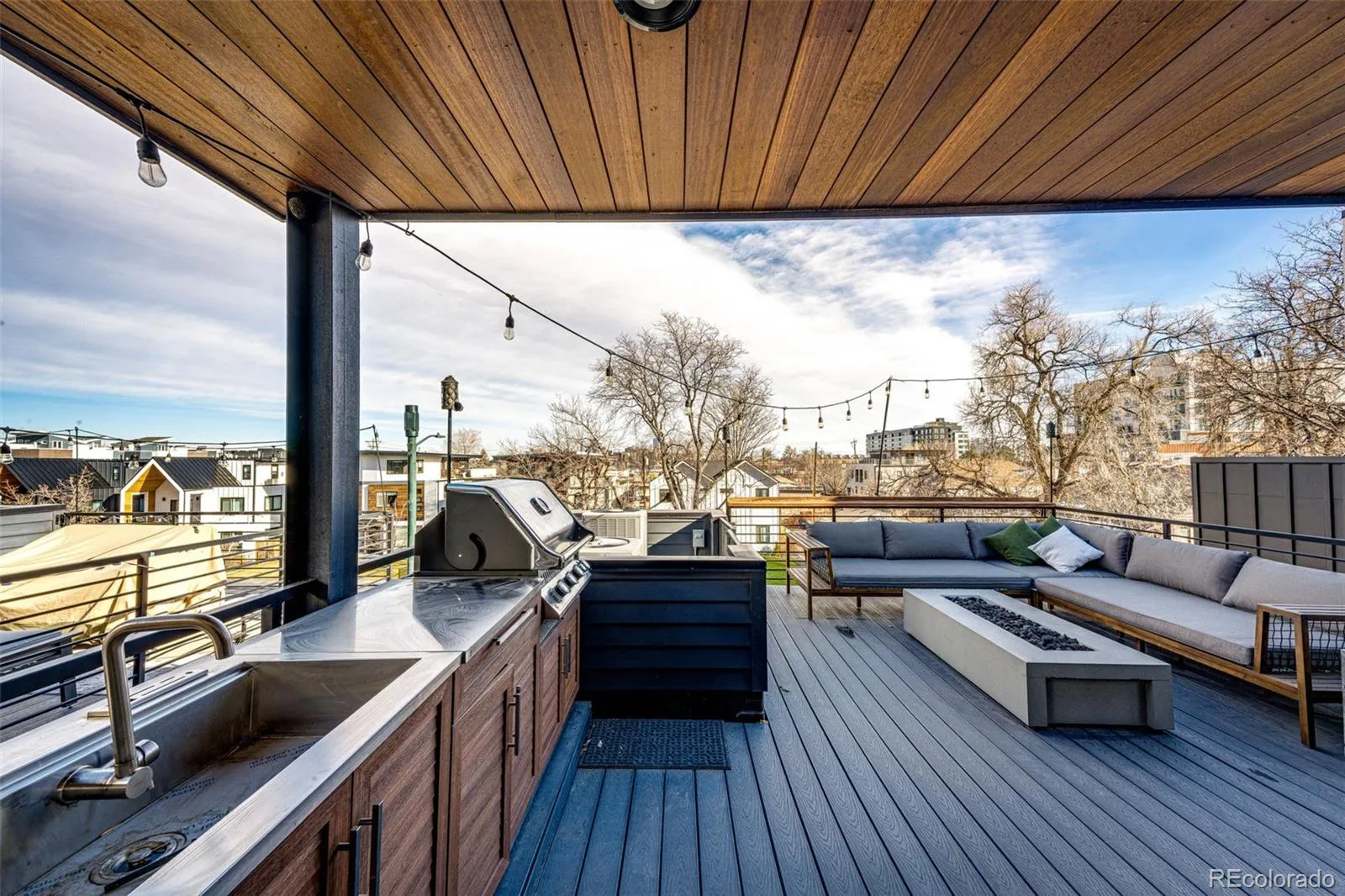 Just steps from Sloan’s Lake and Empower Field, 1575 King Street offers exceptional value as a stand-alone single-family home in the heart of Denver’s most vibrant neighborhood. Luxury is immediately apparent upon entry, with soaring ceilings, a 42” fireplace, and custom built-in cabinetry anchoring the expansive living area. Designed for entertaining, the open floor plan centers around a dramatic 17-foot quartz island, complemented by sleek custom cabinetry, a Bertazzoni range, and generous counter space to satisfy any chef. A butler’s pantry and discreet powder room sit just off the kitchen, providing added storage and convenience. Toward the rear of the home, an open staircase enhances the spacious dining area, while accordion-style doors create a seamless indoor-outdoor living experience leading to the backyard—perfect for hosting year-round. The home is fully equipped with modern smart-home features, including a security system, fiber internet, WiFi throughout, motorized blinds, and smart lighting. The second level offers three ensuite bedrooms, including a luxurious primary suite with a spa-like five-piece bath, walk-in closet, and private balcony. A fourth bedroom and full bathroom are located on the third level. Designed for both relaxation and entertainment, the third level features an expansive indoor living space with a motorized projector, wet bar, and flexible layout. This space opens directly to the rooftop deck with a roll-up glass garage door and motorized sun screen. Complete with a built-in Napoleon grill, cabinetry, and bar— the space is perfect for enjoying the sweeping mountain and city views. A two-car garage includes built-in storage and WiFi, adding even more functionality. Enjoy unbeatable access to Denver’s best—start your morning run around Sloan’s Lake from your front door, or walk to Odell Brewing, Tap & Burger, Empower Field, and more.