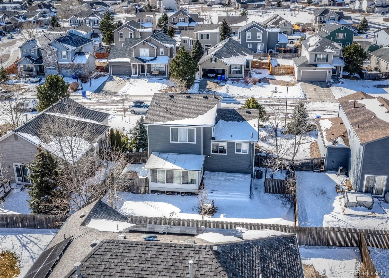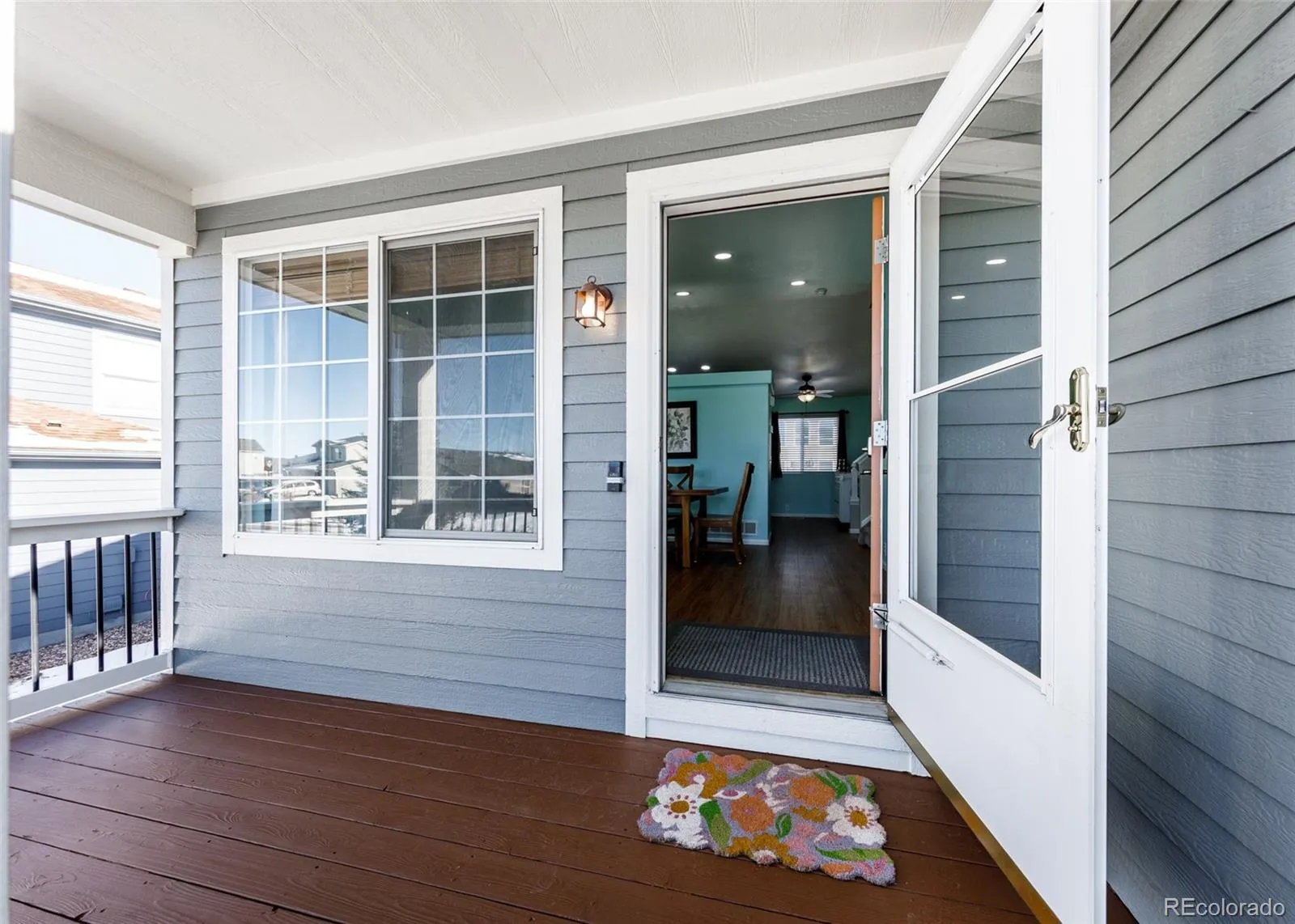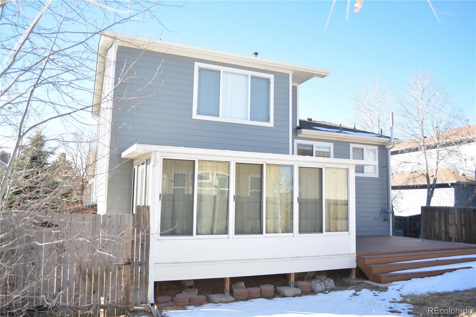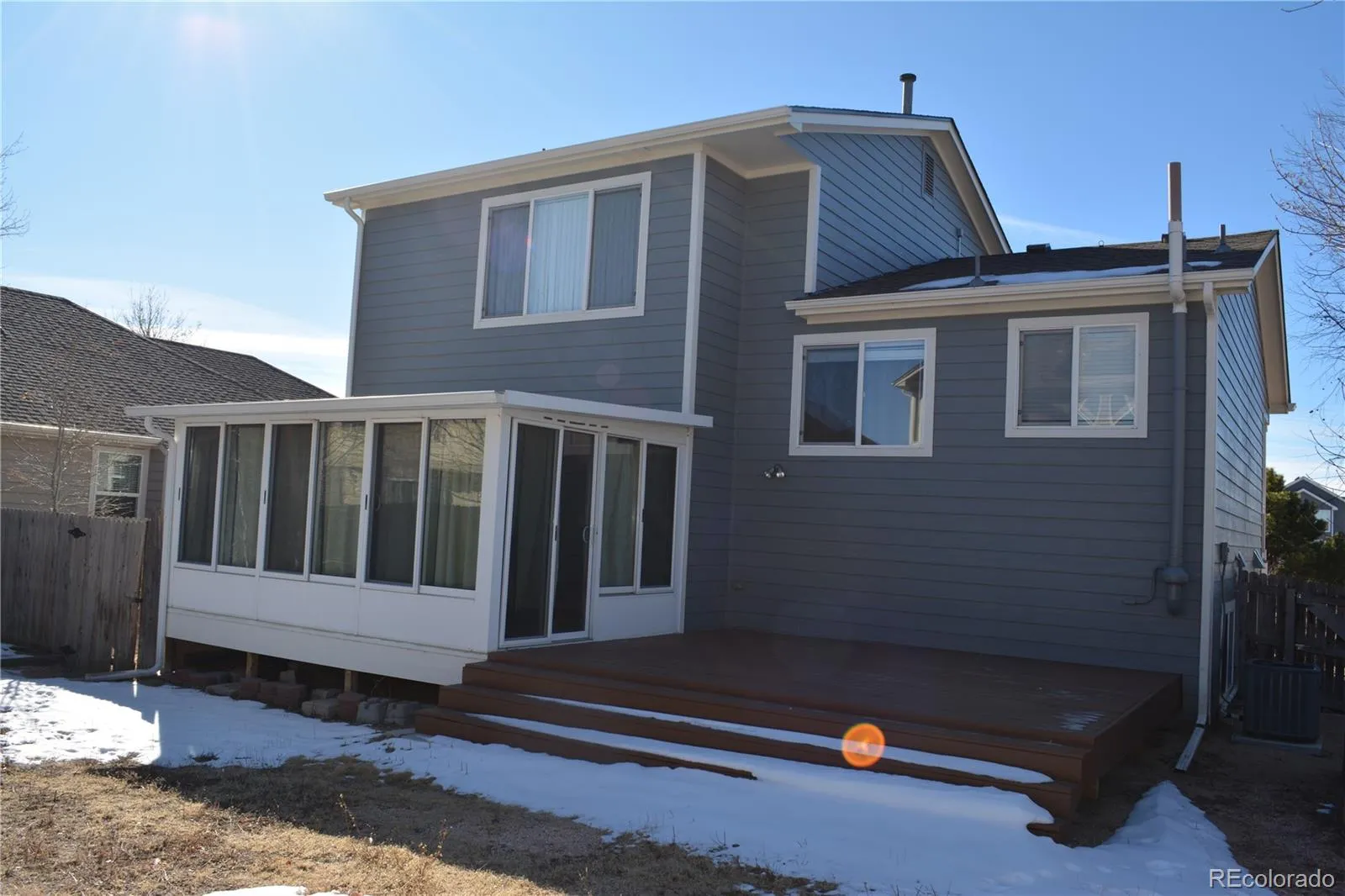 Welcome to your new home located in Woodmen Hills. Well maintained and updated throughout. Covered front porch and entry. Living room features vaulted ceilings, Laminate wood flooring and adjoins dining room and kitchen. Kitchen features vaulted ceilings, wood laminate flooring and upgraded appliances. Lower level family room with wood laminate floors and walk out to fully finished sun room (not included in square footage), access to large wood deck and fenced backyard. Professionally finished basement features an office, additional bedroom and laundry room. Upper level features a private master suite with adjoining full bath and walk in closet. Two additional bedrooms and a full bath. Close to Community Center, Pool, Fitness Center, shopping and restaurants. Easy access to Parks and Trails. Pride of ownership shows throughout. Ready to move in to. Quick close.